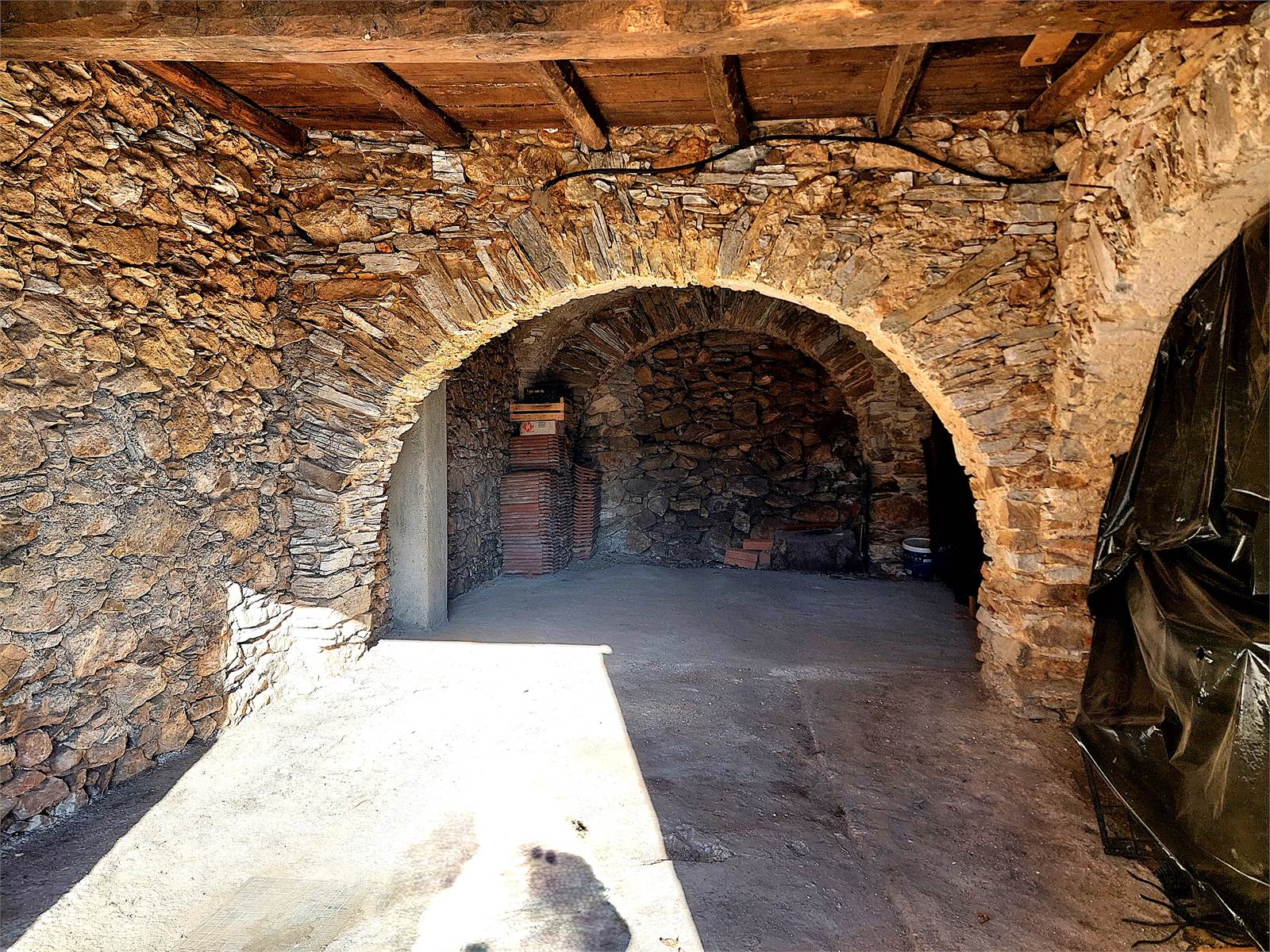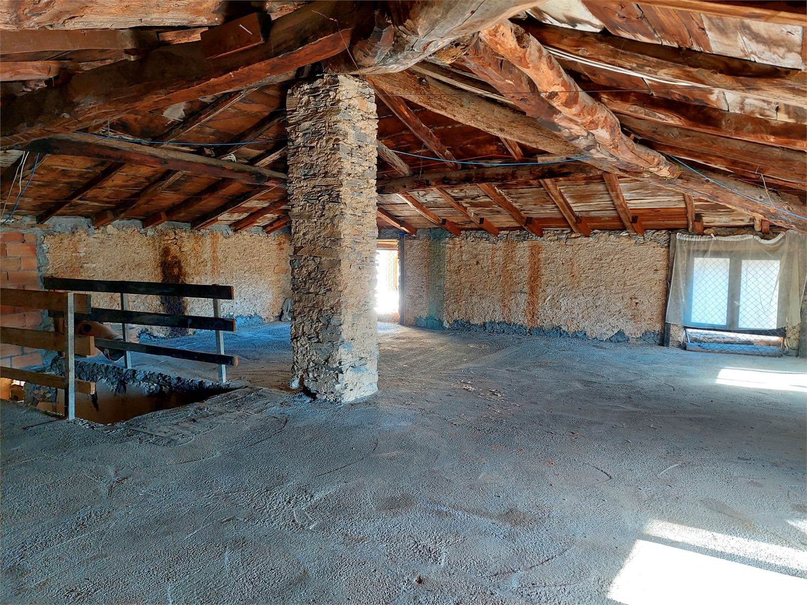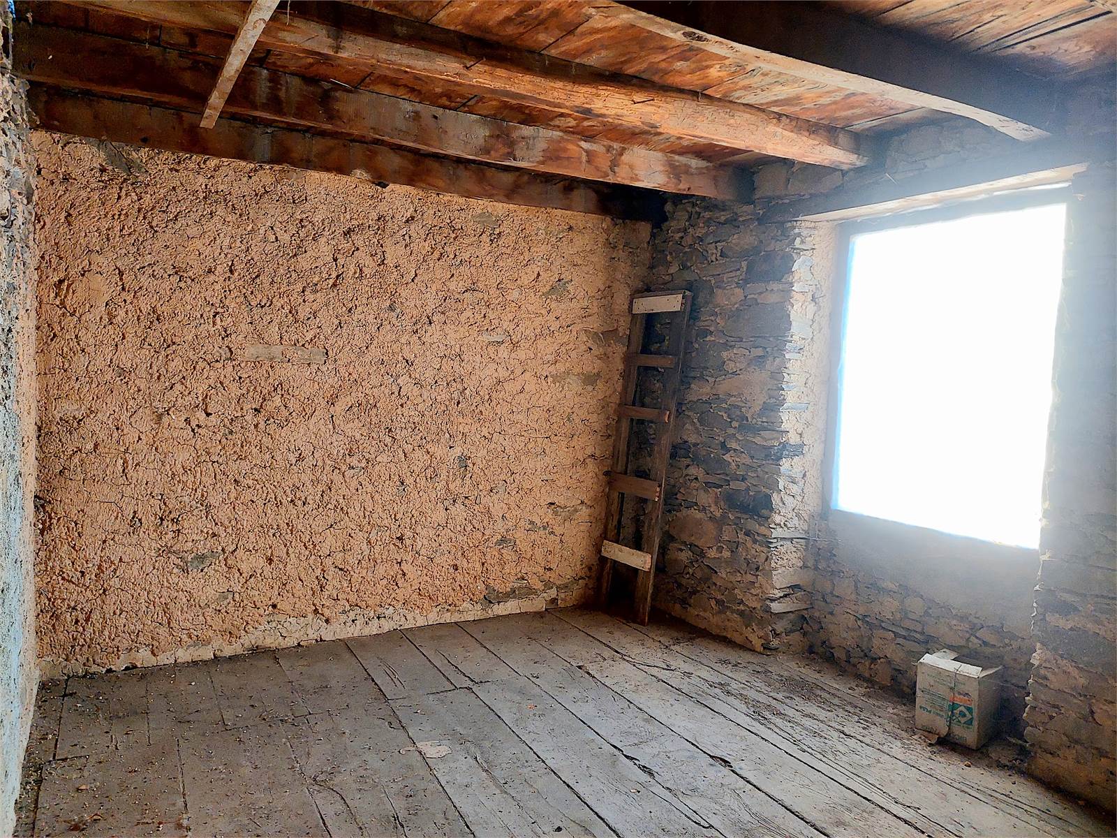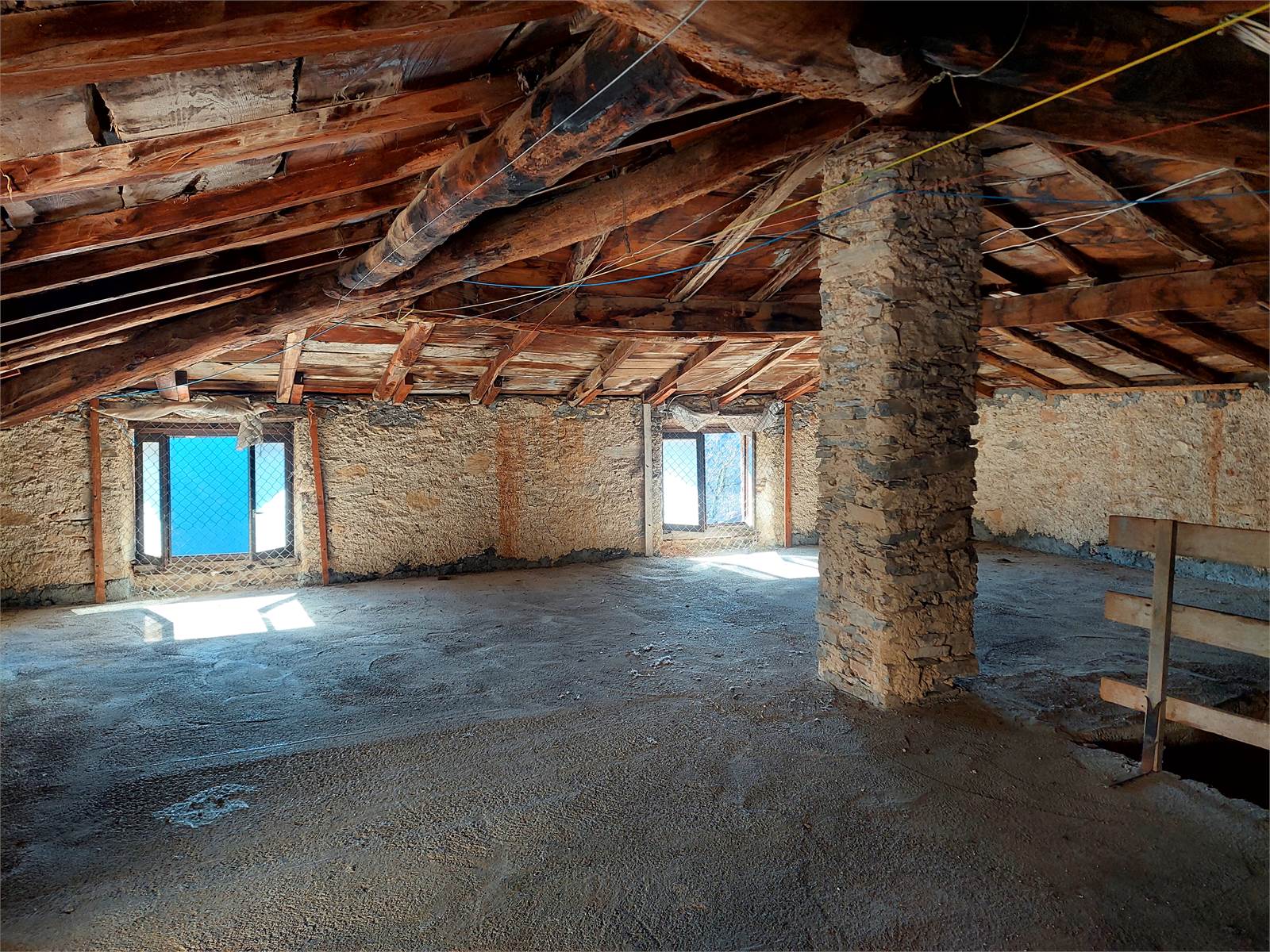 There are two bedrooms, both large enough to be furnished with a double bed and wardrobe. The bedroom windows face south, offering views from the valley to the castle and the surrounding mountains. There is a third bedroom in each of the two units, but it needs to be finished as there is currently no plaster, flooring, or electrical system.