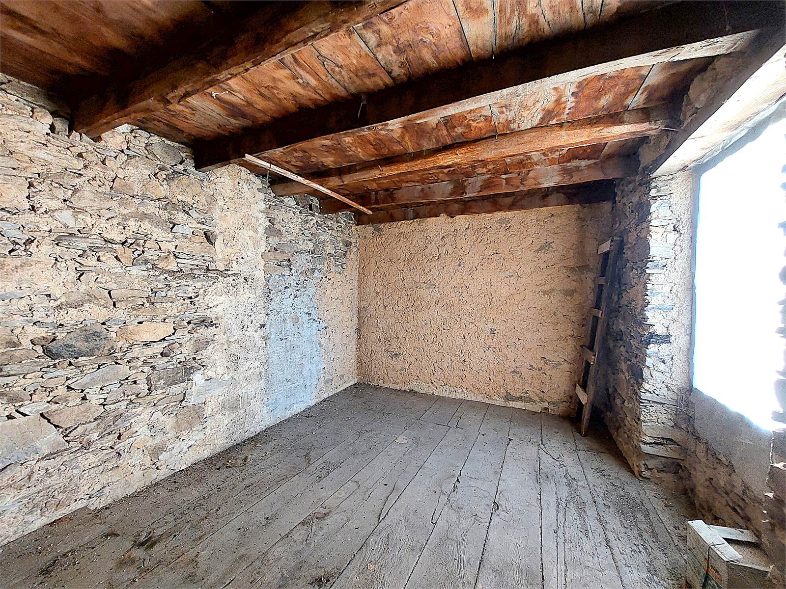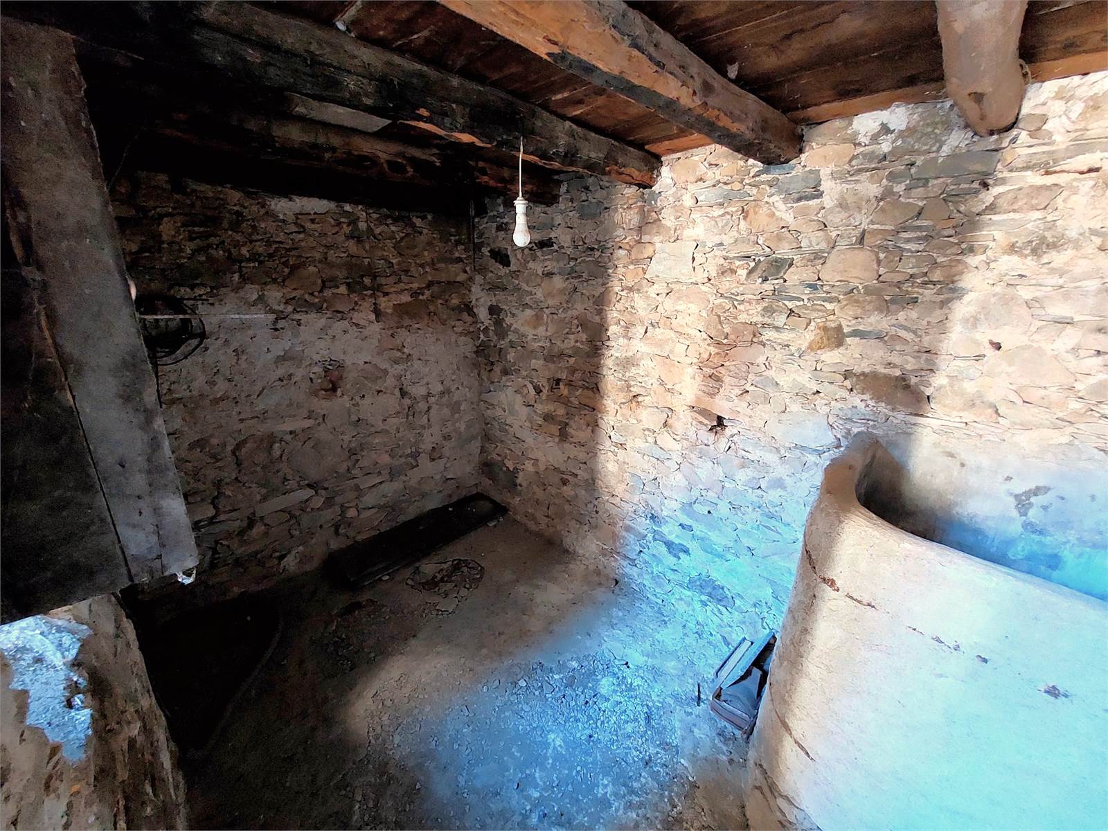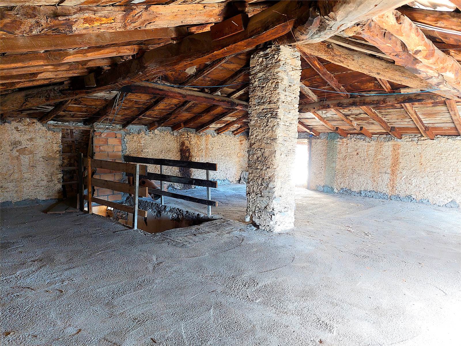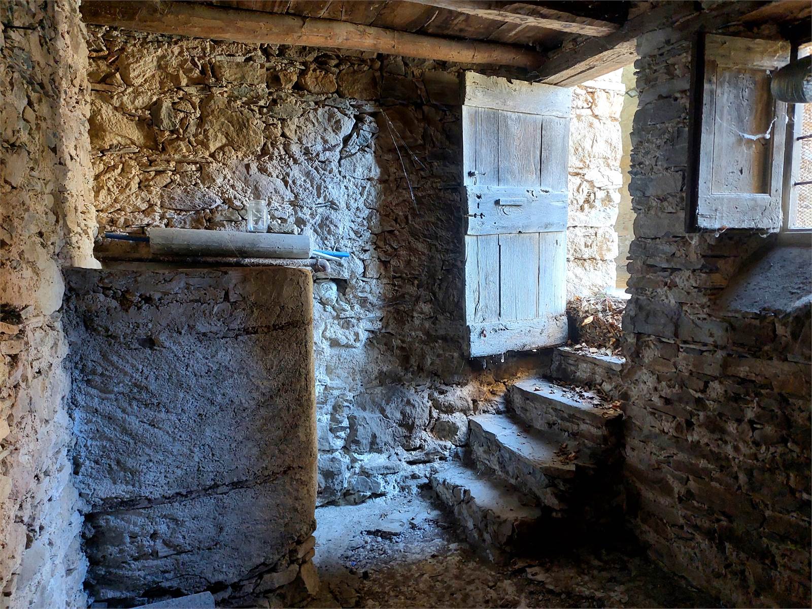 There are two bedrooms, both large enough to be furnished with a double bed and wardrobe. The bedroom windows face south, offering views from the valley to the castle and the surrounding mountains. There is a third bedroom in each of the two units, but it needs to be finished as there is currently no plaster, flooring, or electrical system.