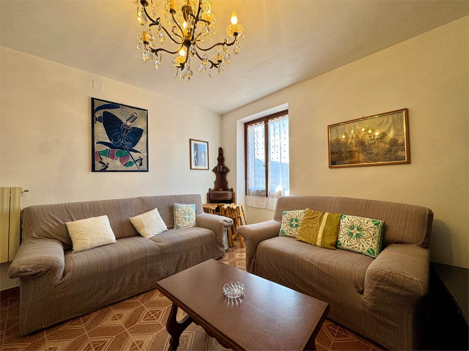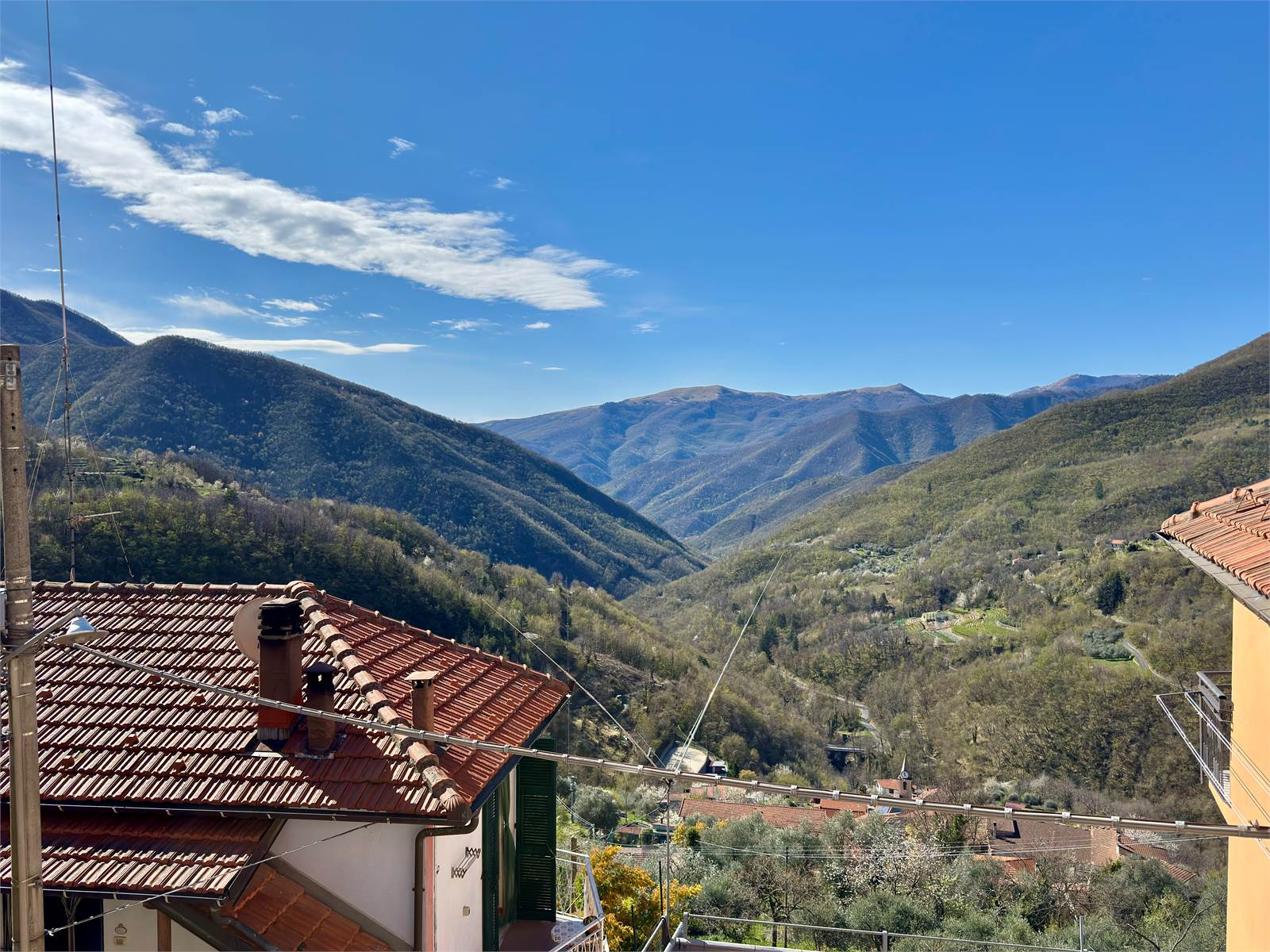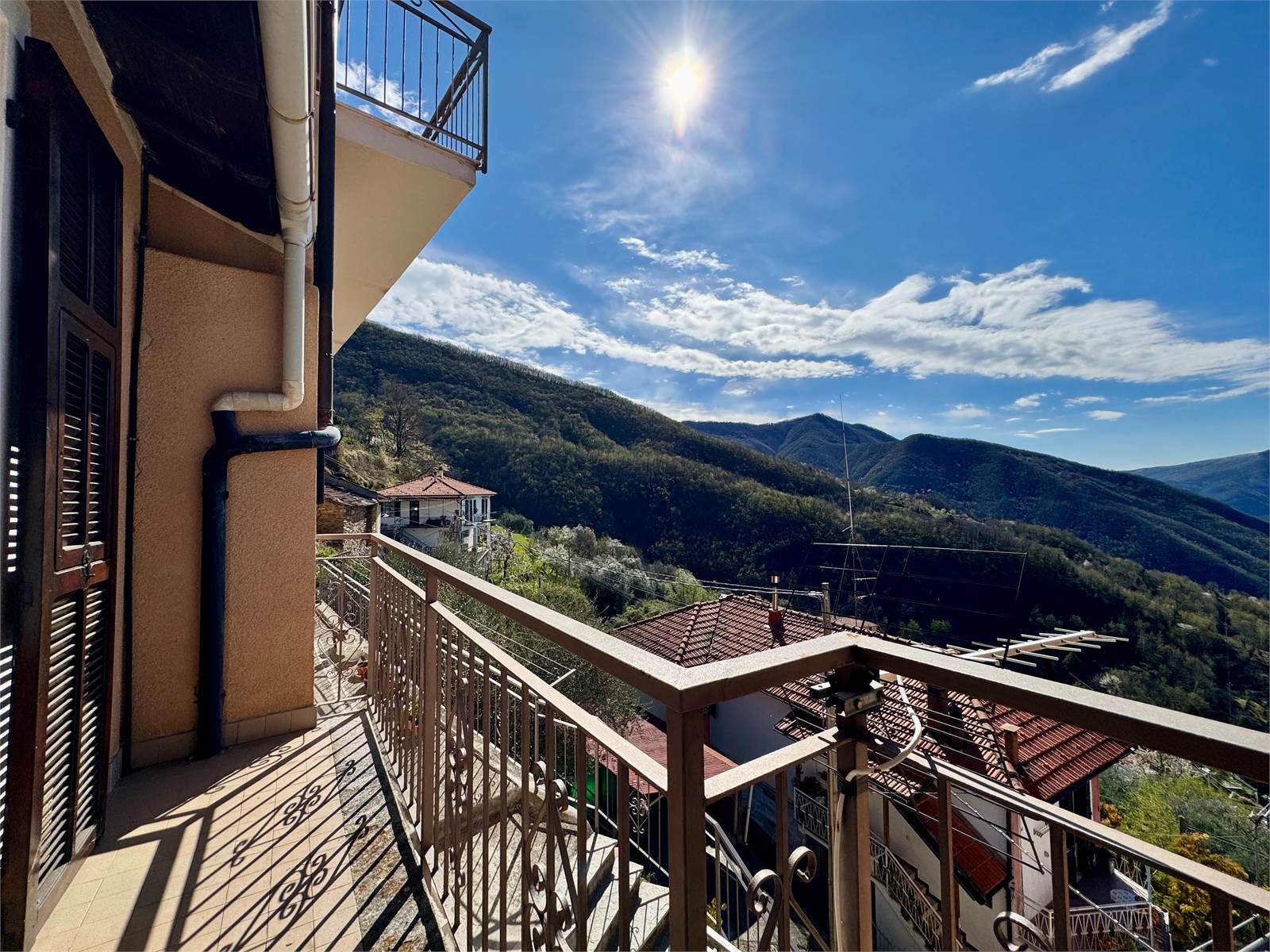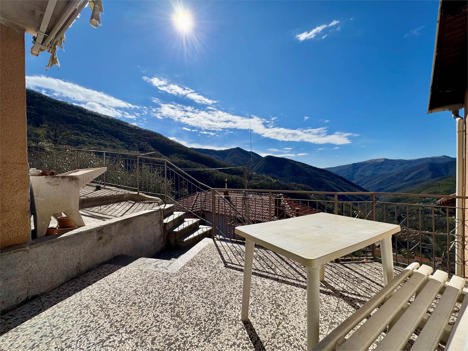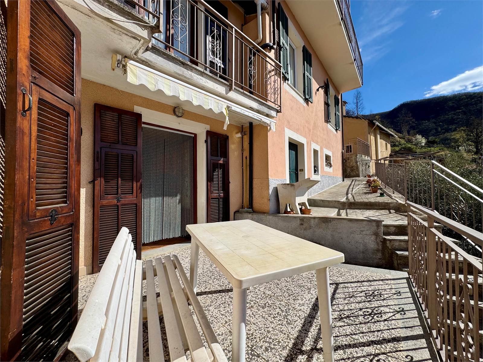 In the hamlet of Grenzolini, in the municipality of Armo, we offer a town house arranged over four living levels, with a cellar and two panoramic terraces overlooking the valley. The setting is quiet and surrounded by greenery, with open views over the surrounding hills.