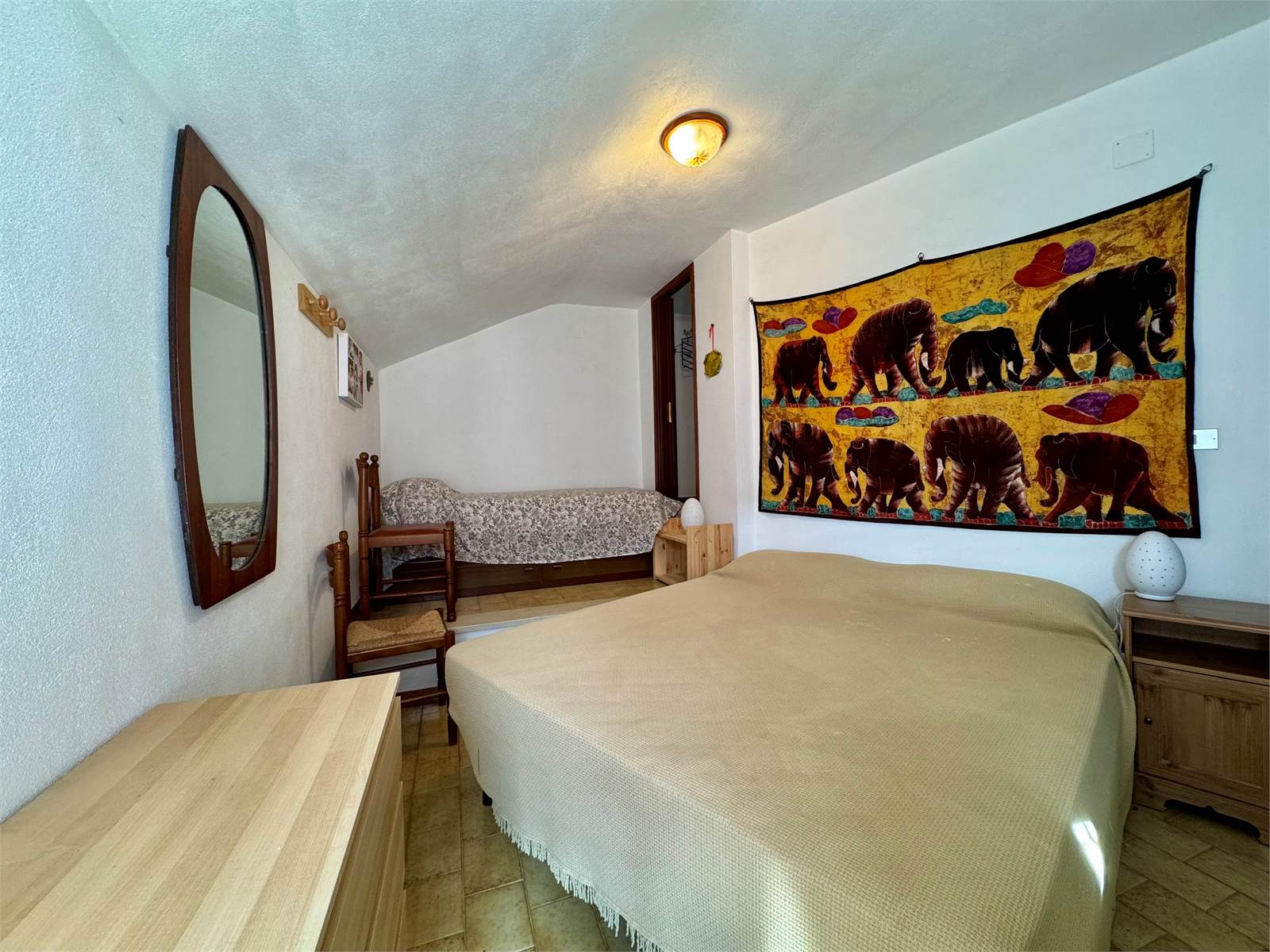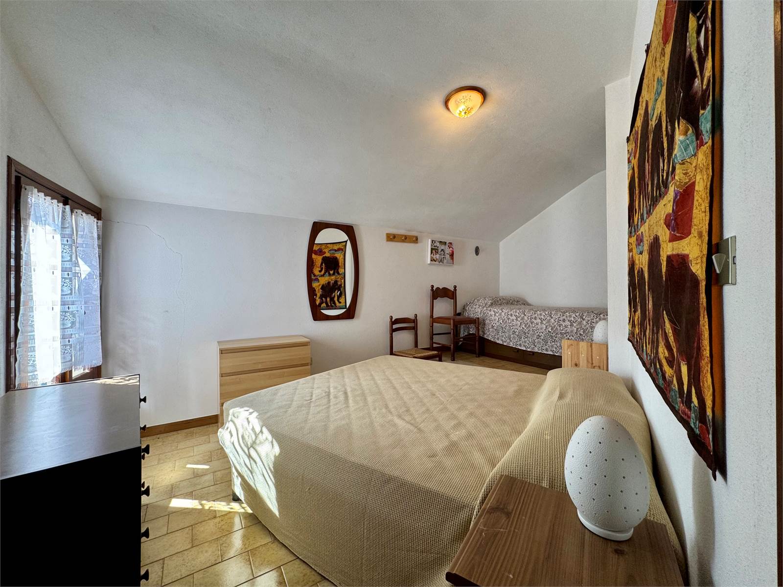 On the third floor the main sleeping area, comprising a twin bedroom and a large double bedroom, with access to the second terrace.