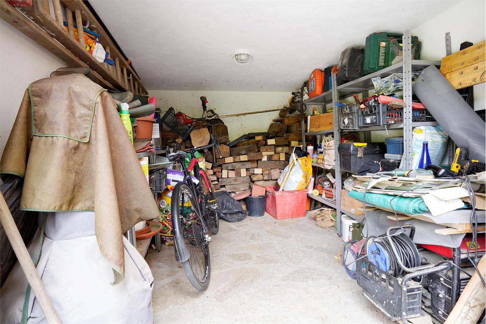 Completing the farmhouse are the boiler room with storage, a garden of about 250 square meters behind the house, and a garage where, if desired, a motorcycle can be parked.