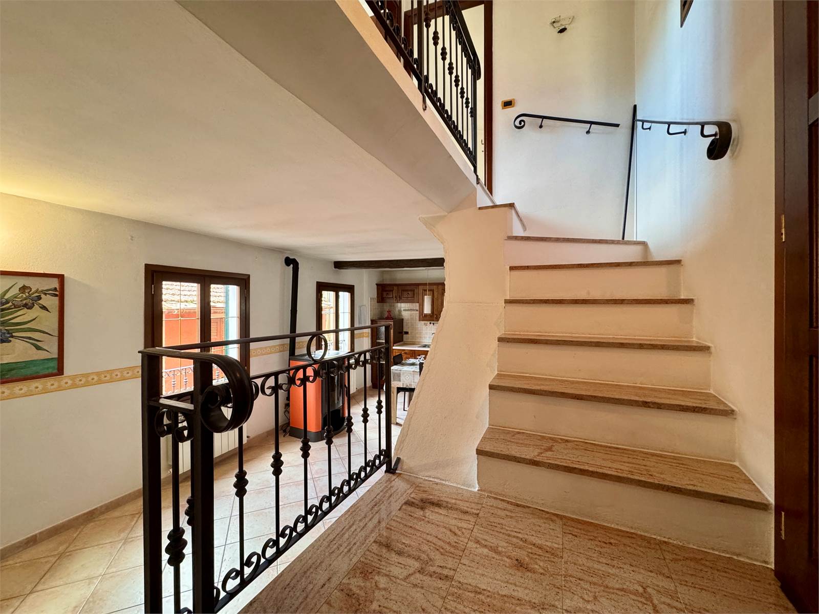 The entrance opens onto the staircase that connects the ground floor with the upper level.