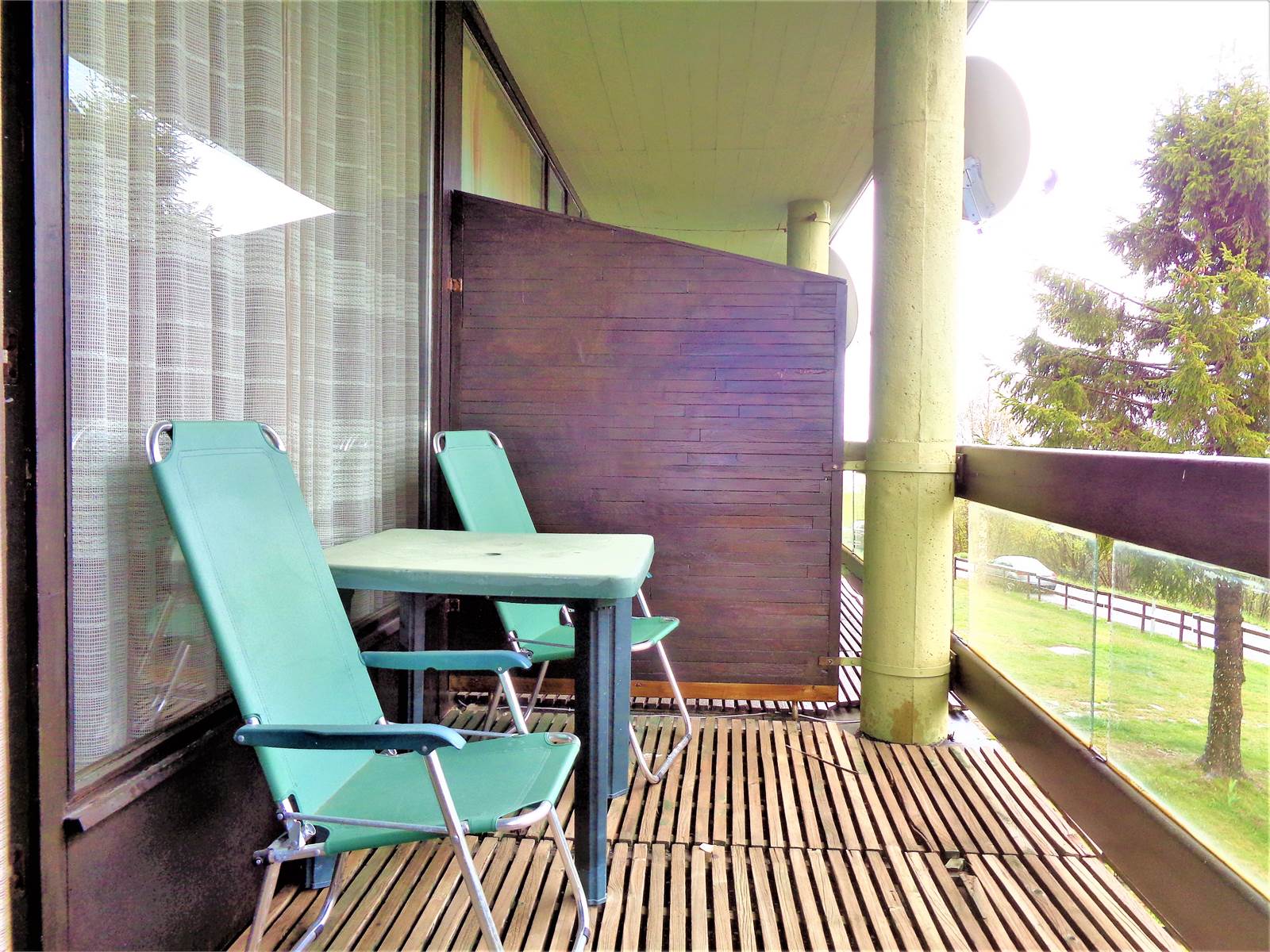 The French doors in the room lead out to the approximately 10 square meter terrace, which offers unobstructed views of the ski slopes.