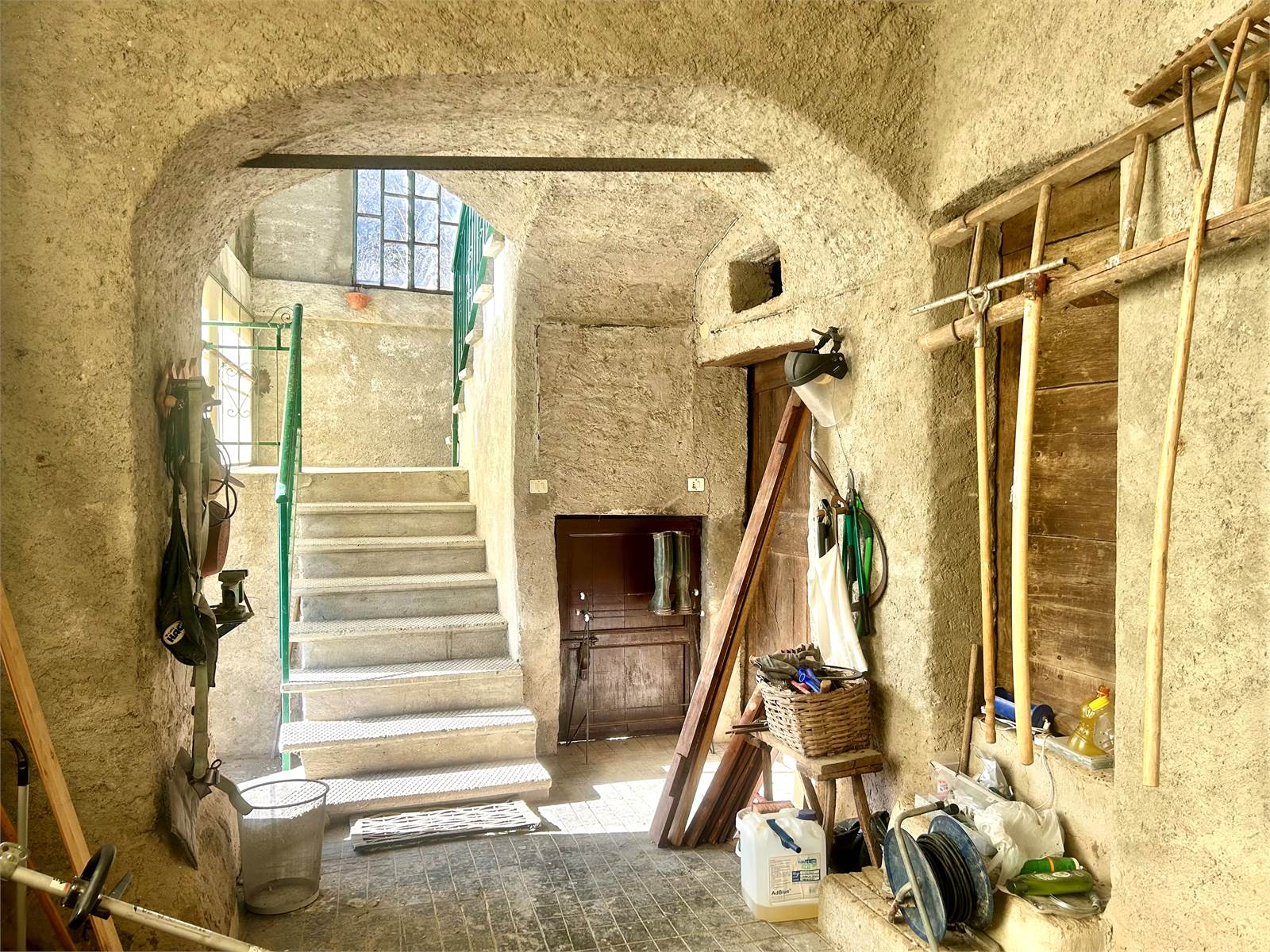 The entrance hall on the ground floor divides the rooms, the stable is spacious and the three warehouses have vaulted brick ceilings.
