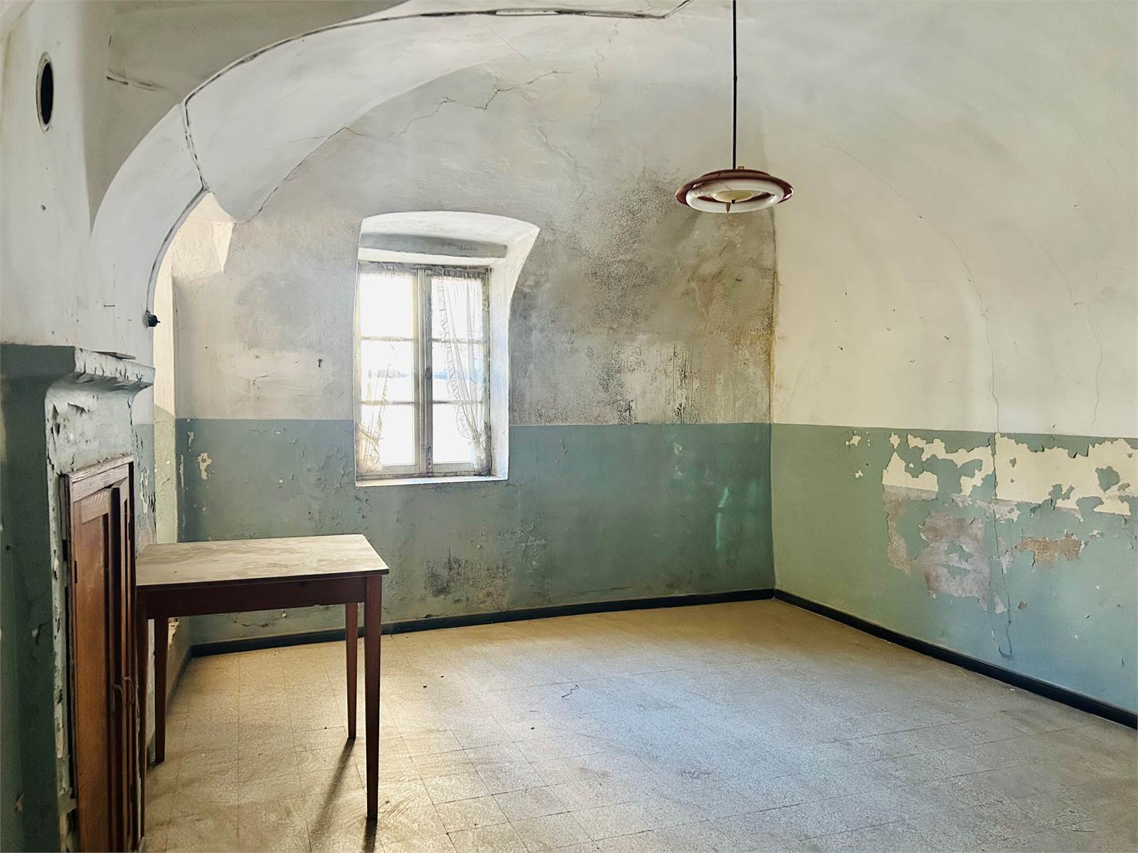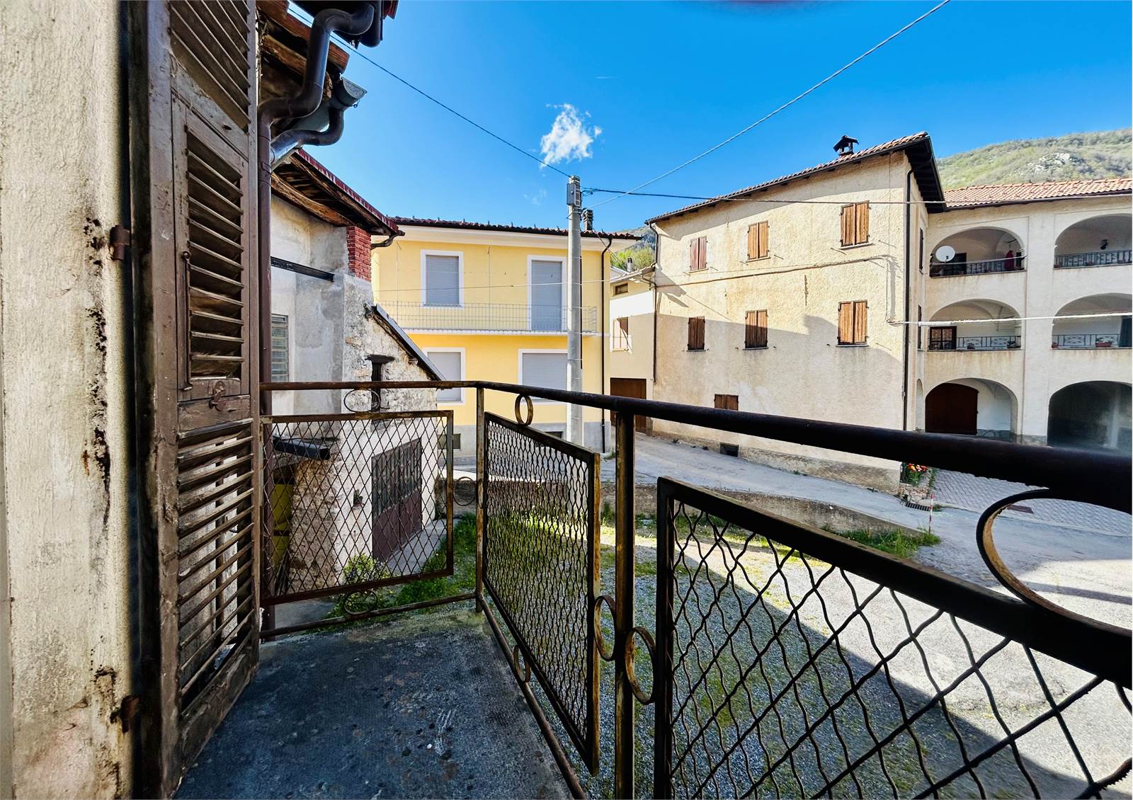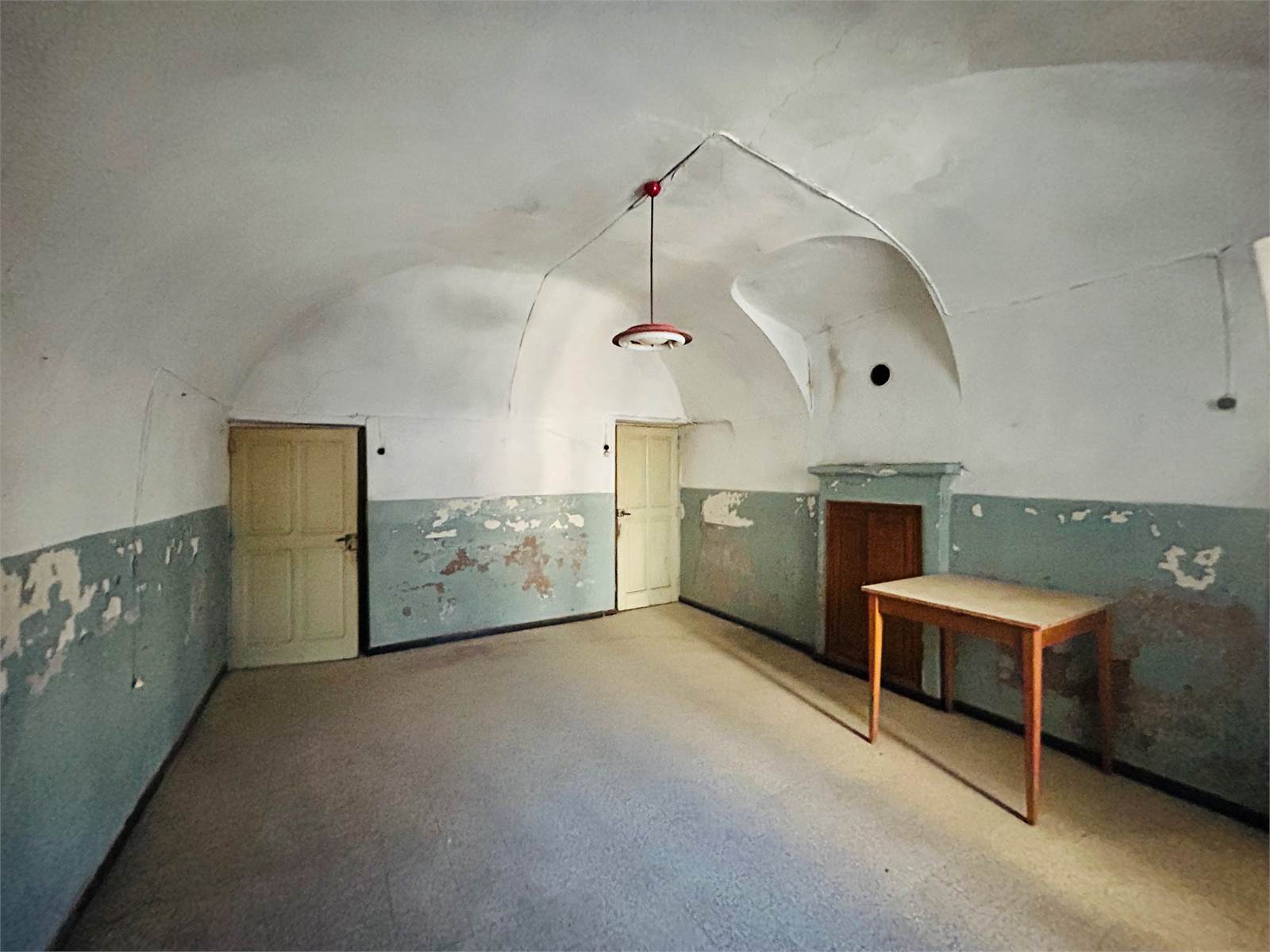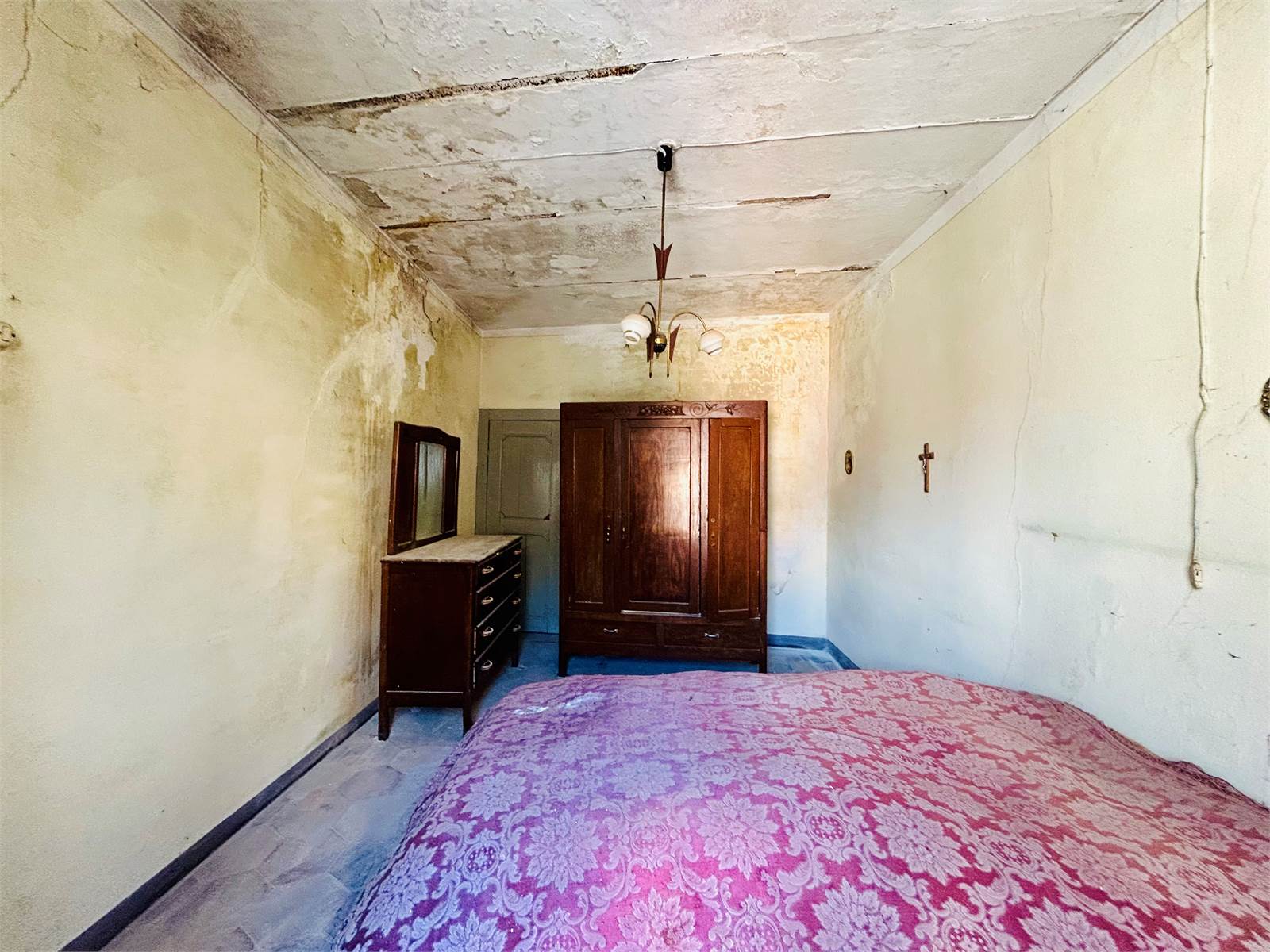 The large living room with fireplace leads: on one side to a double bedroom with French windows that allow you to exit onto the balcony overlooking the entrance courtyard, on the other to the upper floor where there is a second bedroom also double.