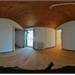 On the mezzanine floor of the house, the entrance hall divides the rooms and provides access to the upper floor. This floor includes a kitchen, a living room, a bedroom, and a bathroom with a window and a bathtub. These rooms are registered as a separate unit.