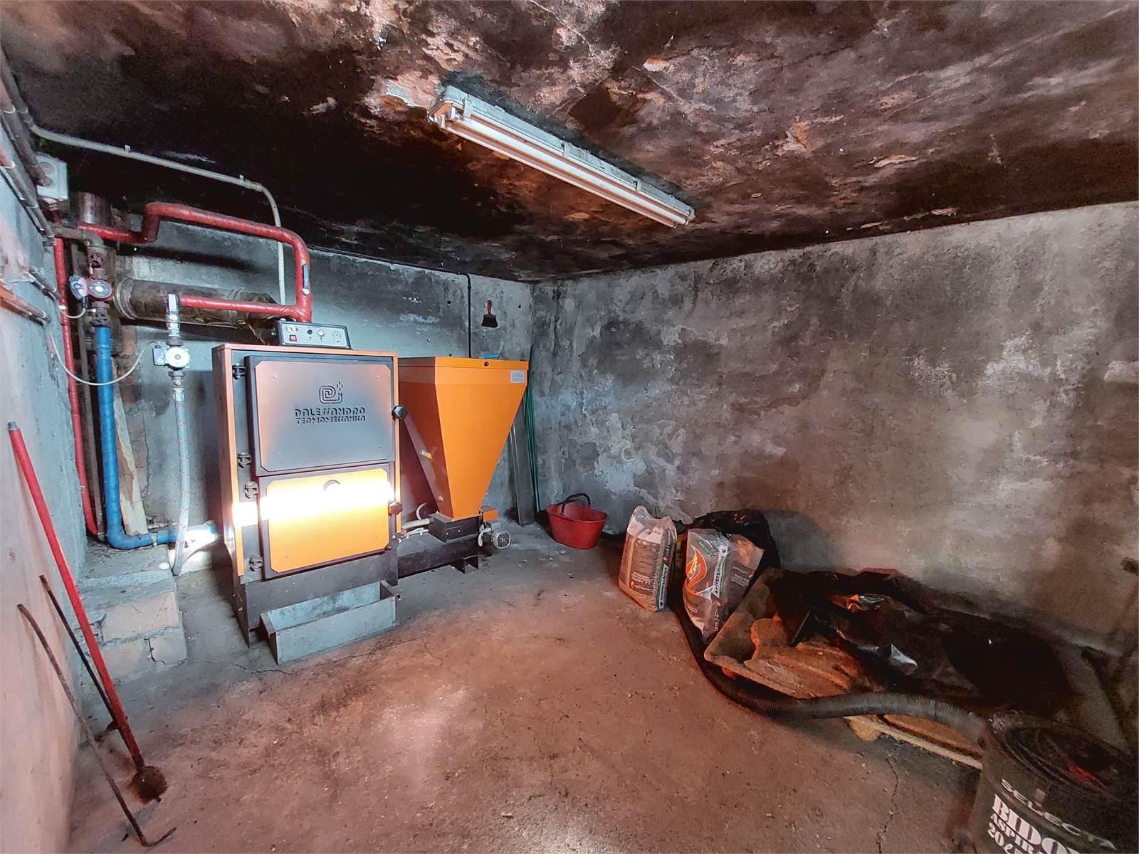 The house is heated by a pellet and wood boiler that heats the internal radiators. The heating systems for the two apartments are separate and can be controlled independently of each other.