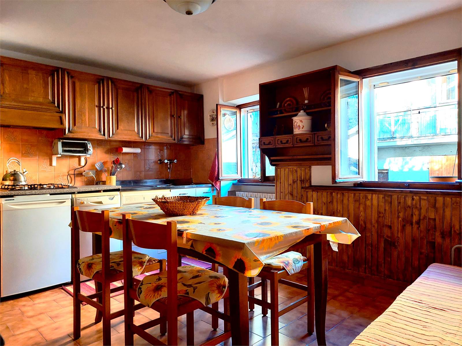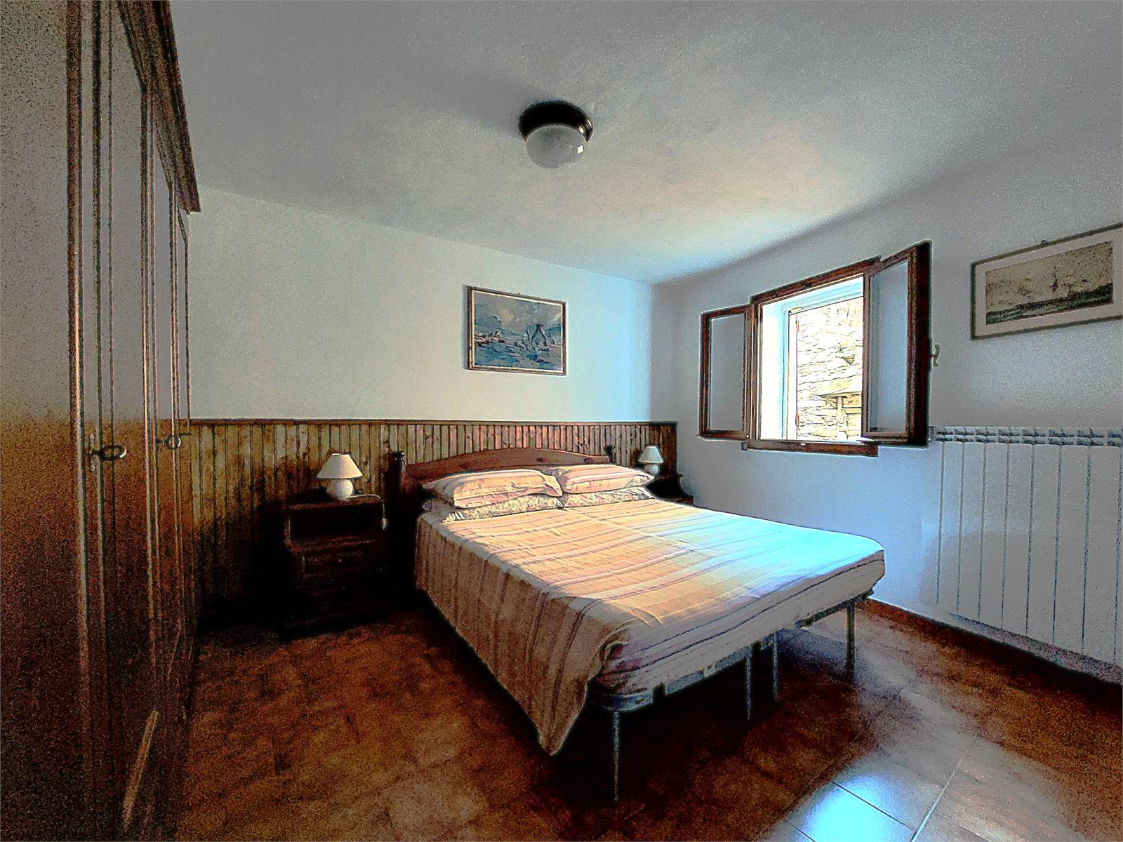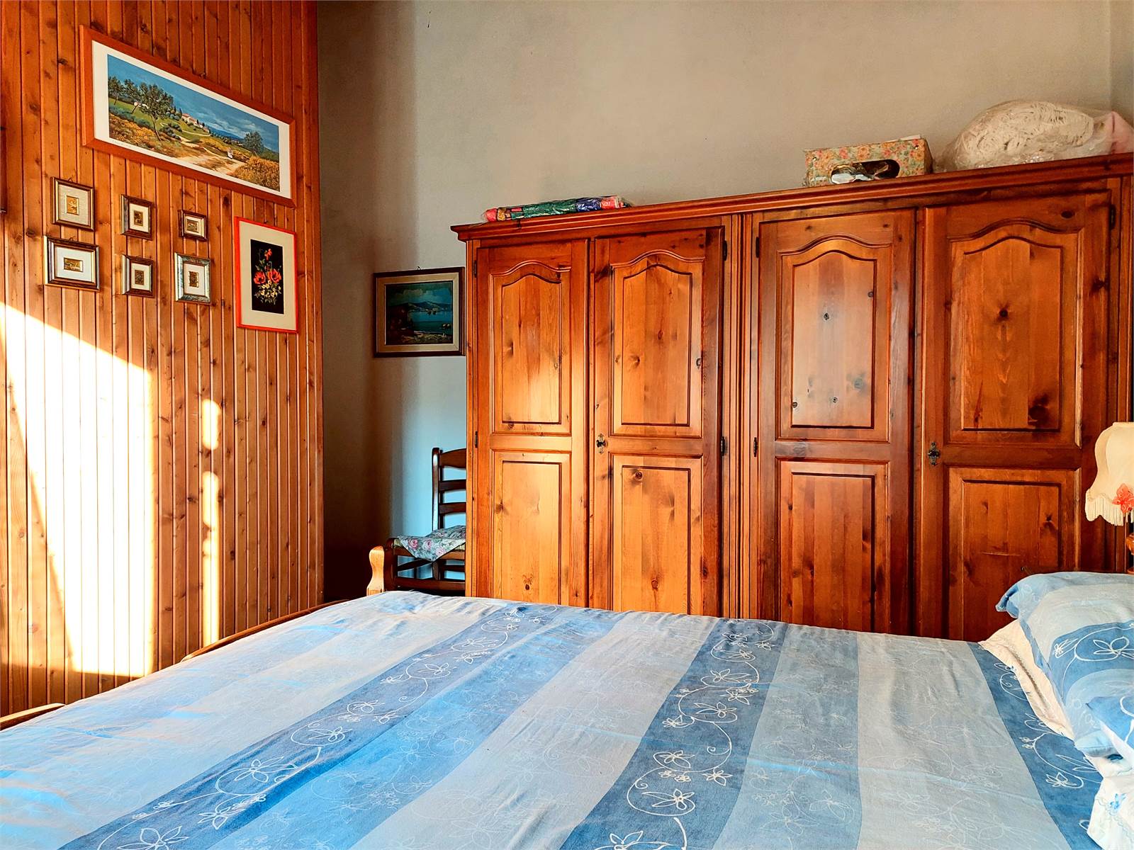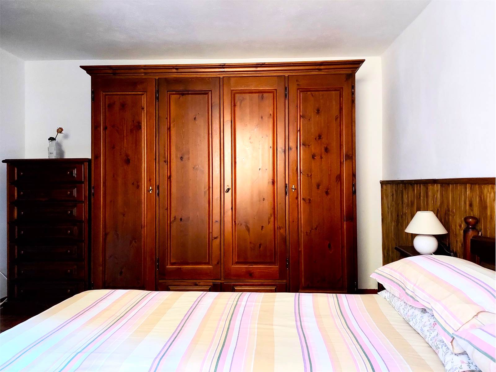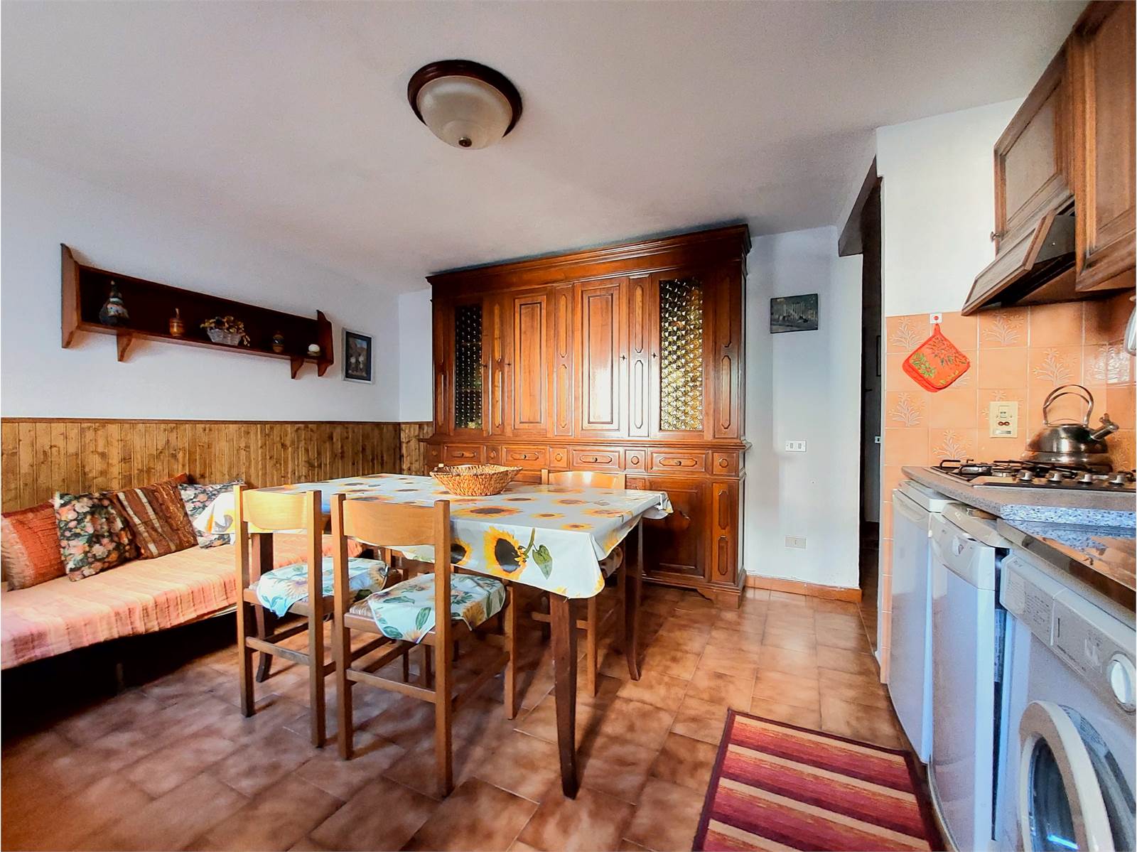 The internal stairwell leads from the first to the second floor where the second accommodation is located. The entrance divides the various rooms of the apartment. The living room and kitchen form a single space characterized by the exposed wooden roof. There are two bedrooms, one single and one double, also with wooden ceilings. The bathroom has a window and a shower. The accommodation has wooden windows with single glazing and is heated with a wood stove.