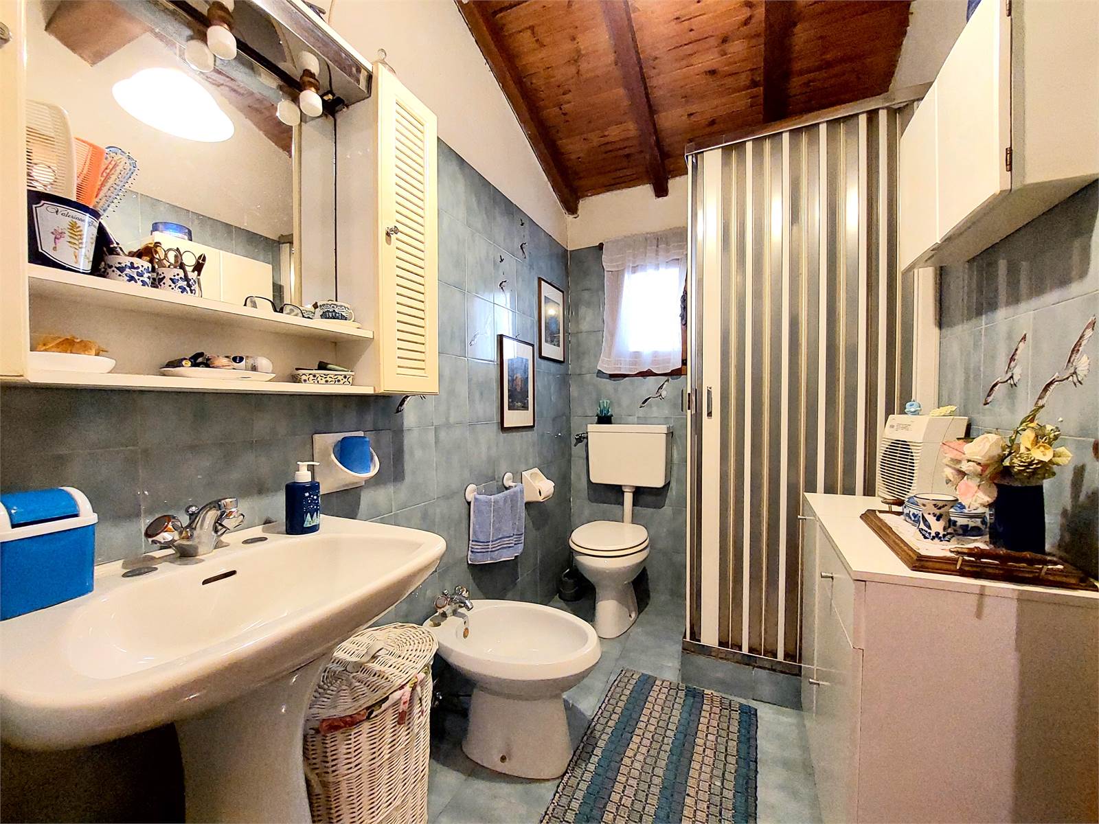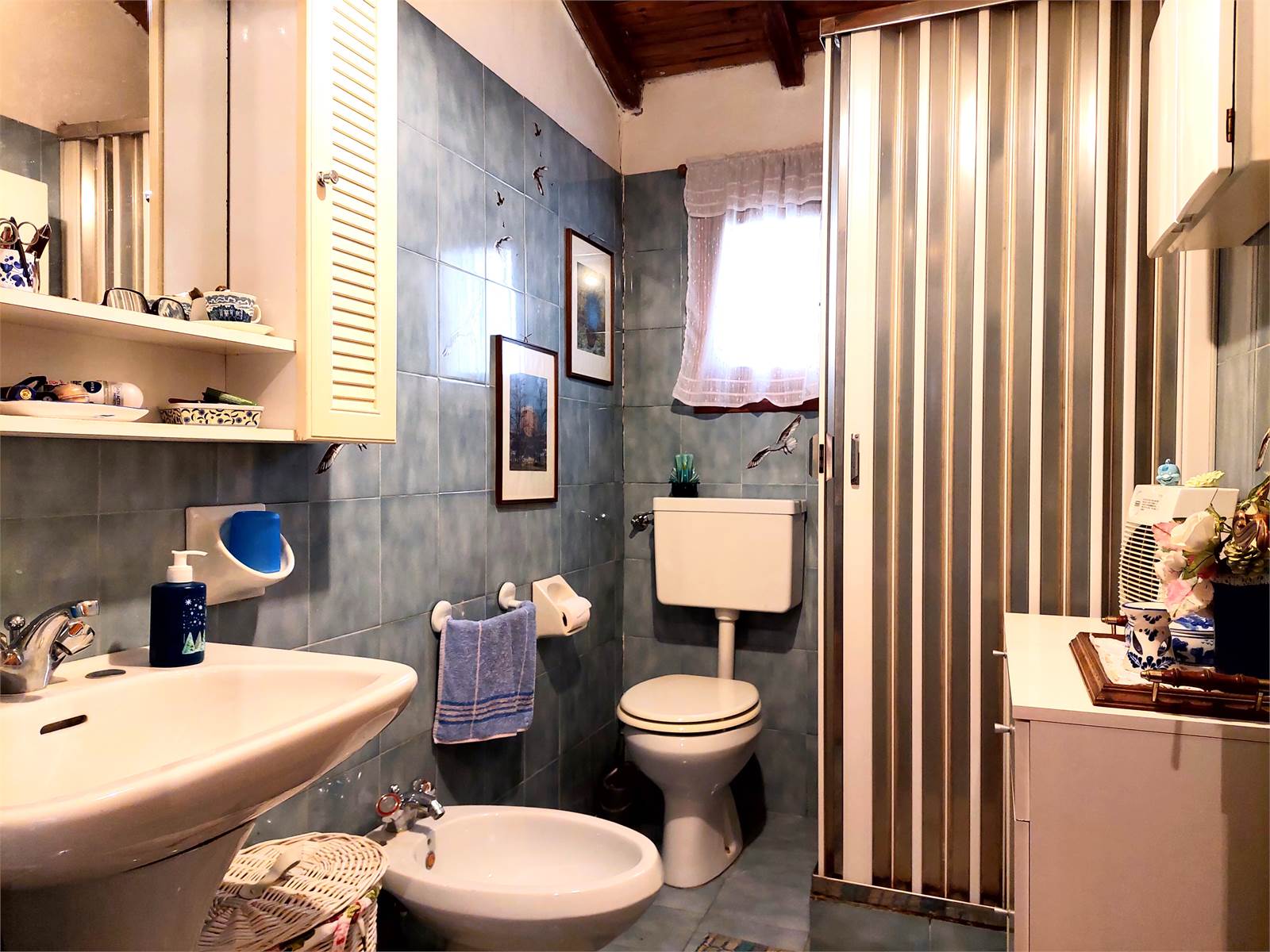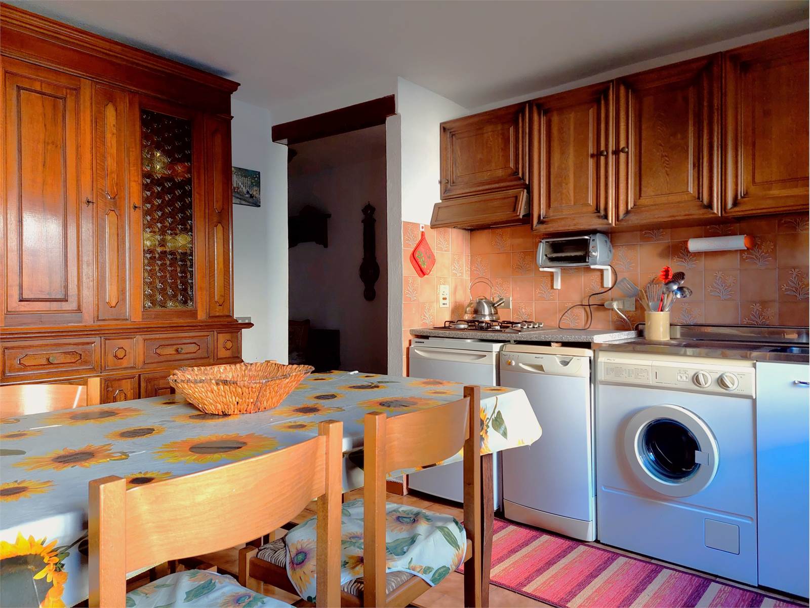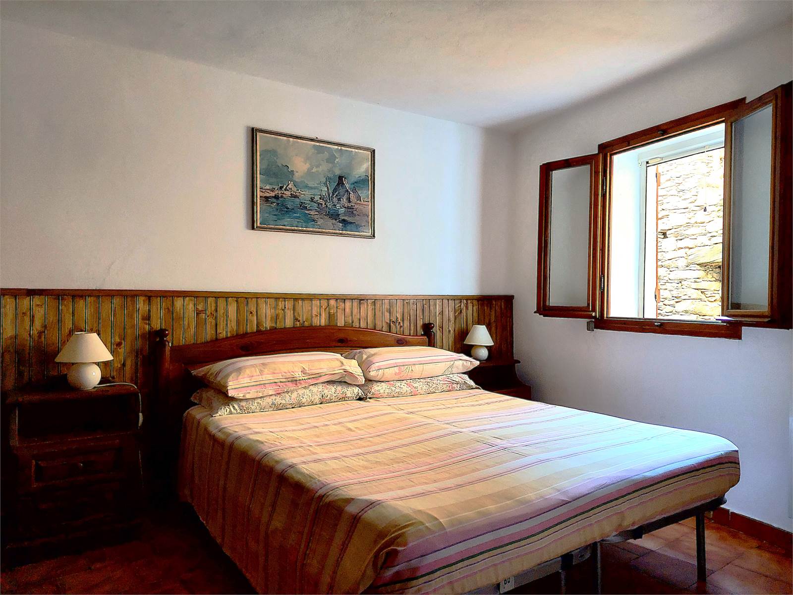 The accommodation on the first floor is divided into an entrance hall, living room with open kitchen, double bedroom and bathroom with window and shower, plus closet. This apartment has wooden windows with double glazing and a radiator heating system powered independently by the diesel boiler in the cellar.