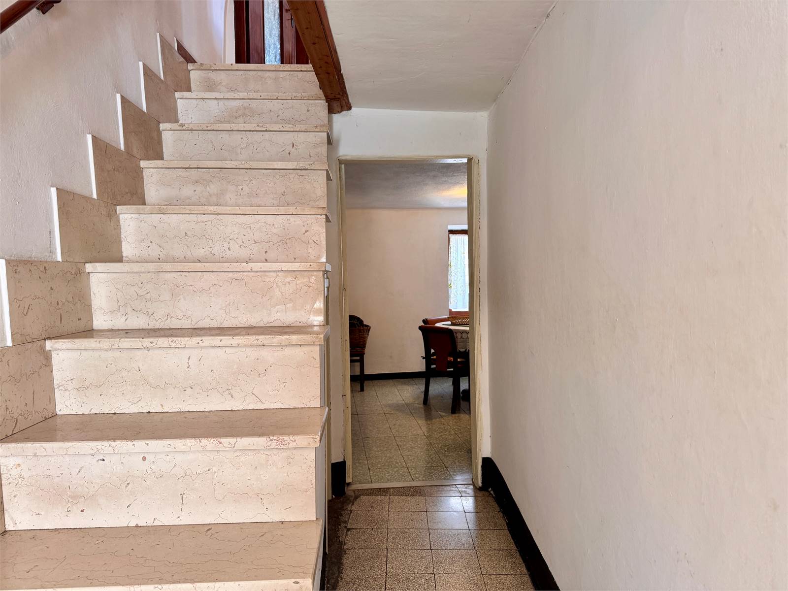 The property is free on three sides and arranged over two floors, with a private cellar and additional plots of land located throughout the municipality. Public parking is conveniently located just 100 meters from the house.