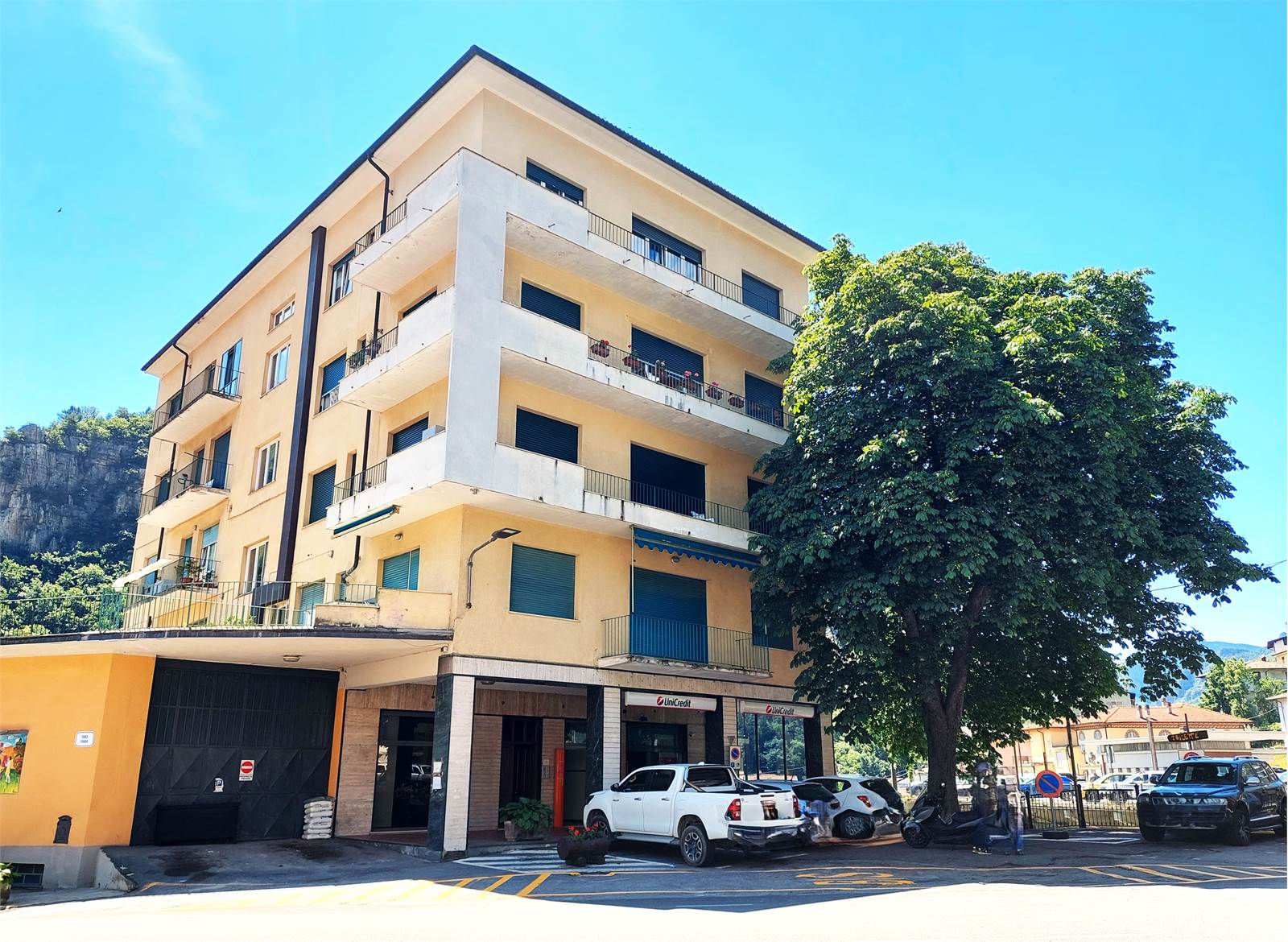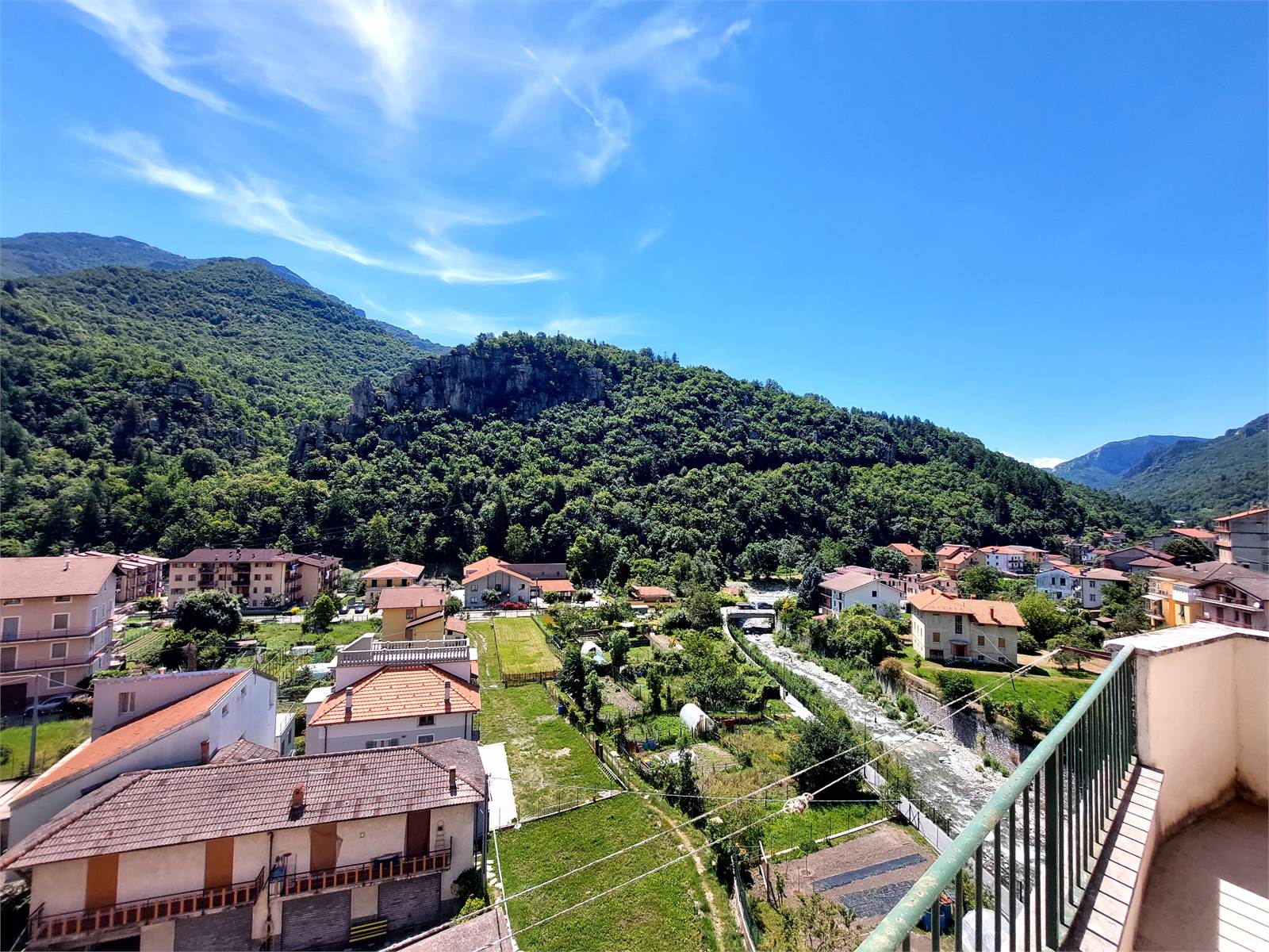 The kitchen contains a table for three people, has a marble sink and a large French door that allows access to a balcony measuring approximately 6 square meters. The view is open and ranges from the alpine peaks of Panne and Monte Antoroto to the roofs of the town centre.
