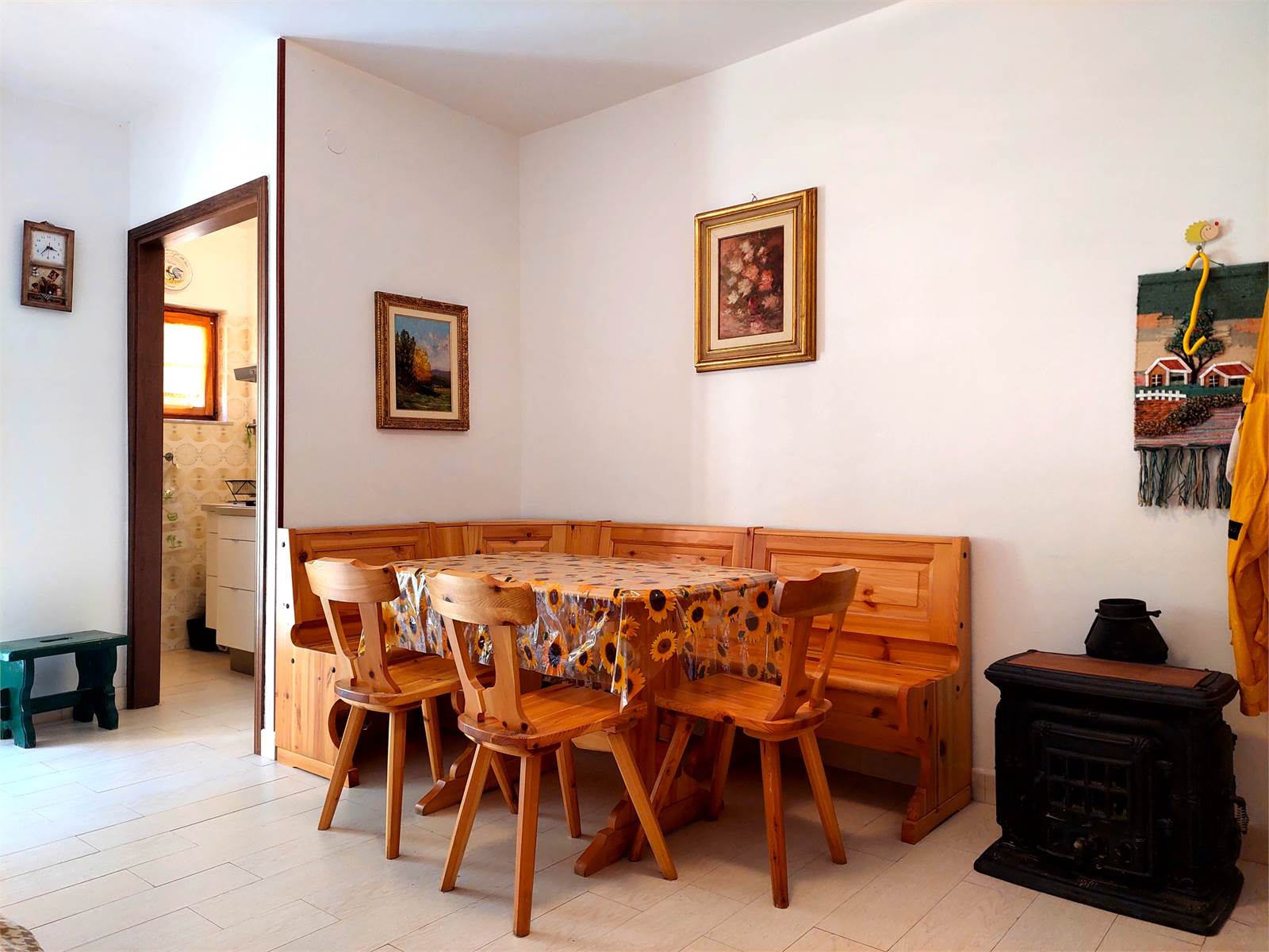 The apartment is equipped with a heating system with cast iron radiators, but there is currently no boiler. You can install a private gas boiler and use the shared LPG system, or install a thermo-stove or hydro-pellet stove for complete independence.