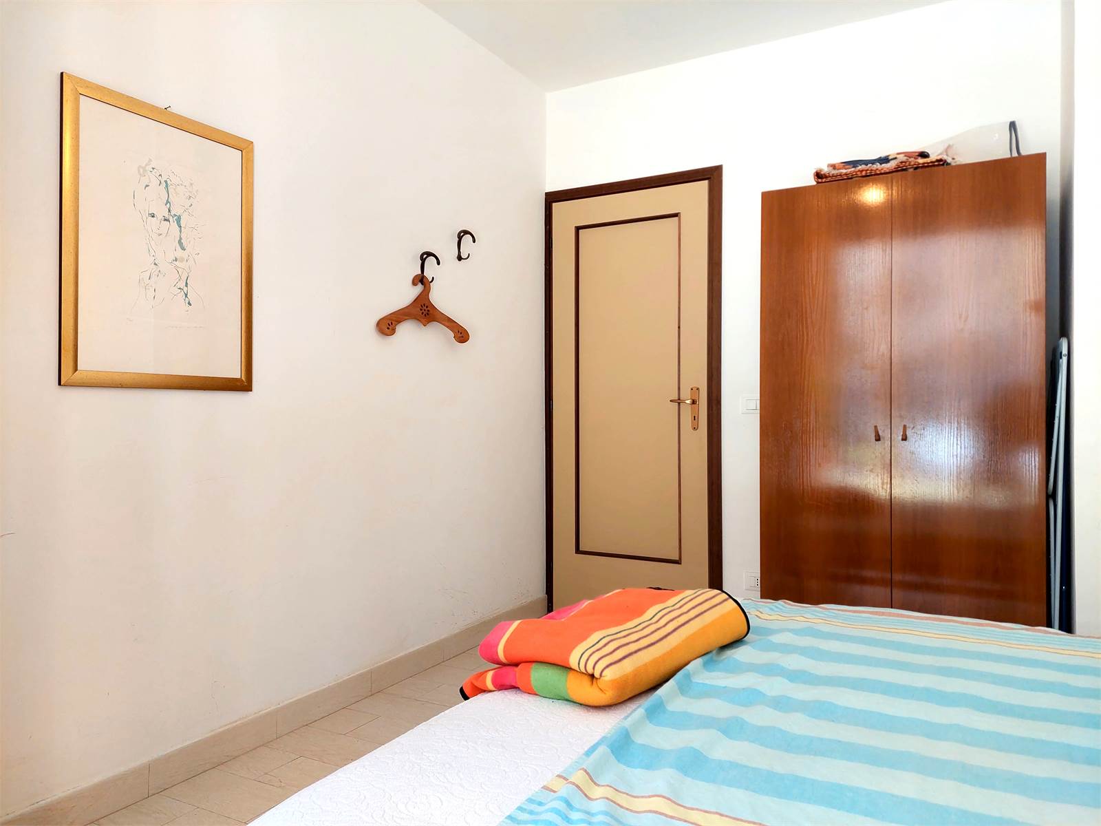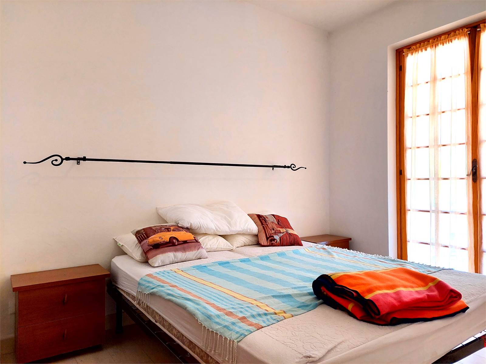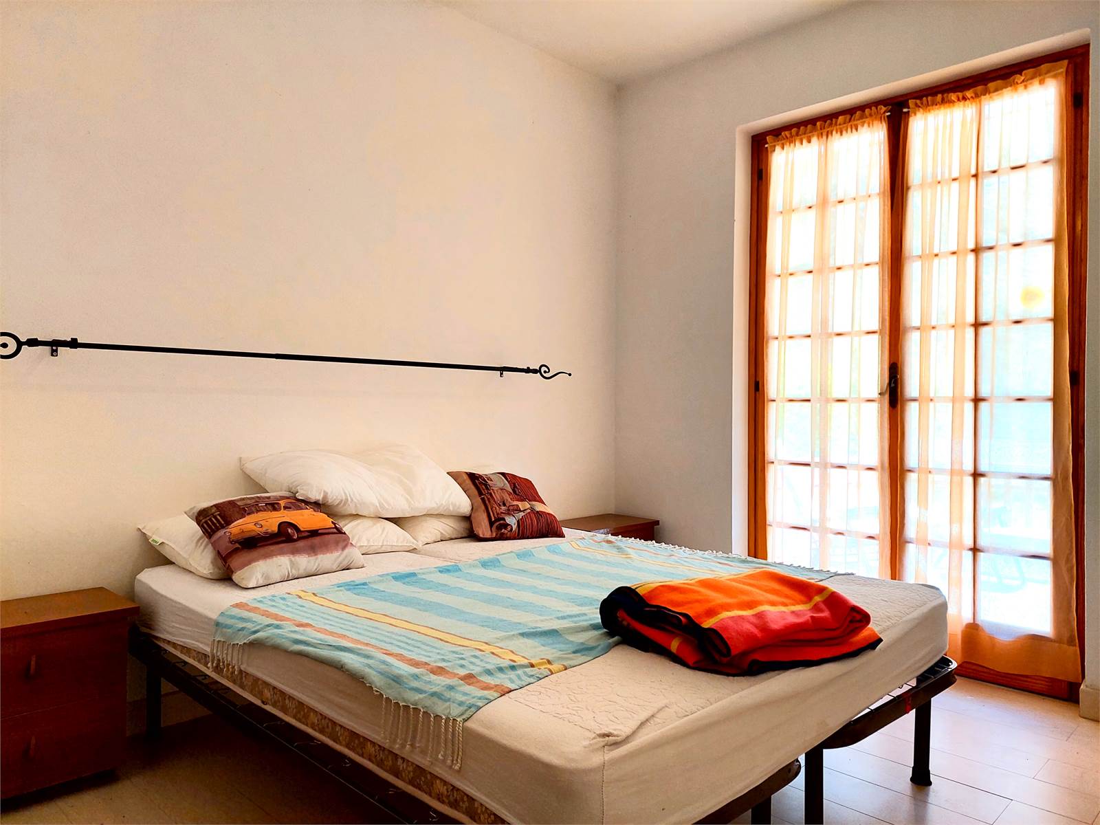 The apartment has a double bedroom with a French door that also opens onto the terrace.