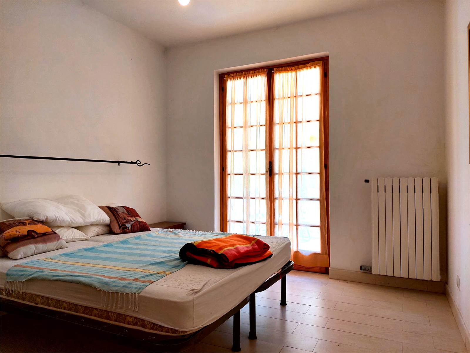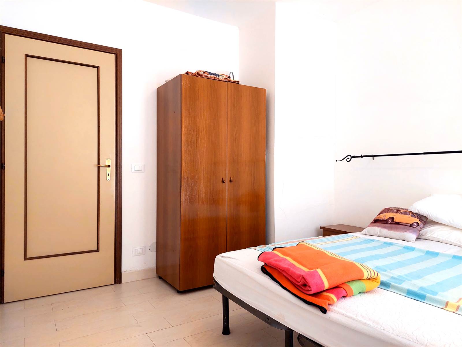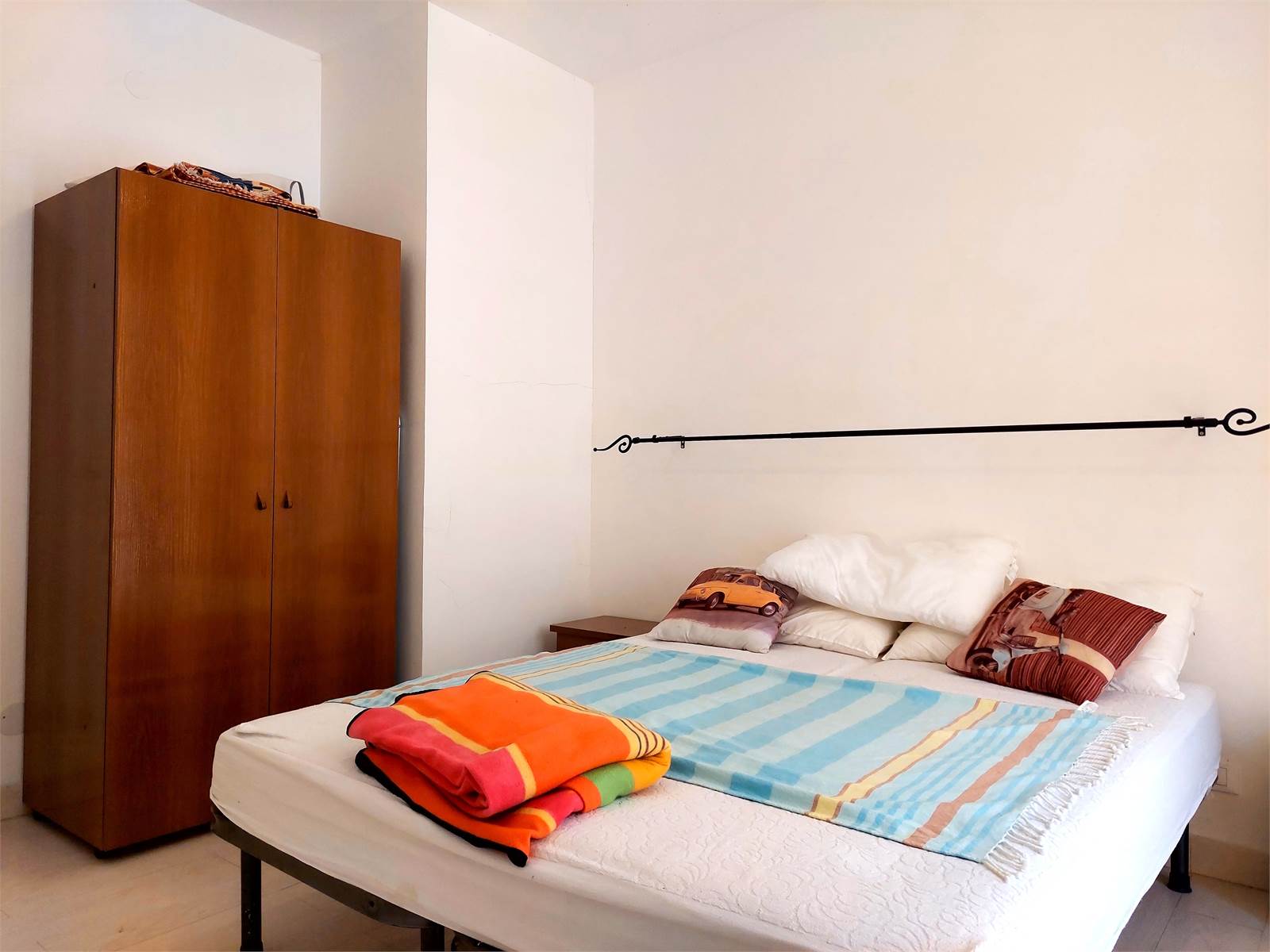 The apartment has a double bedroom with a French door that also opens onto the terrace.
