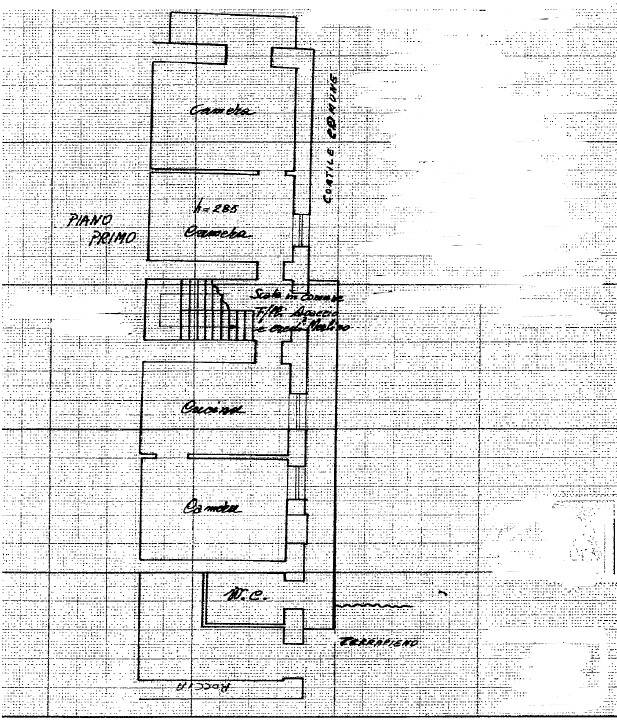From the shared courtyard, an internal staircase leads to the first floor, where the living area is located, separated by the stairwell.