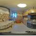 The eat-in kitchen is spacious enough to accommodate 4-6 people.