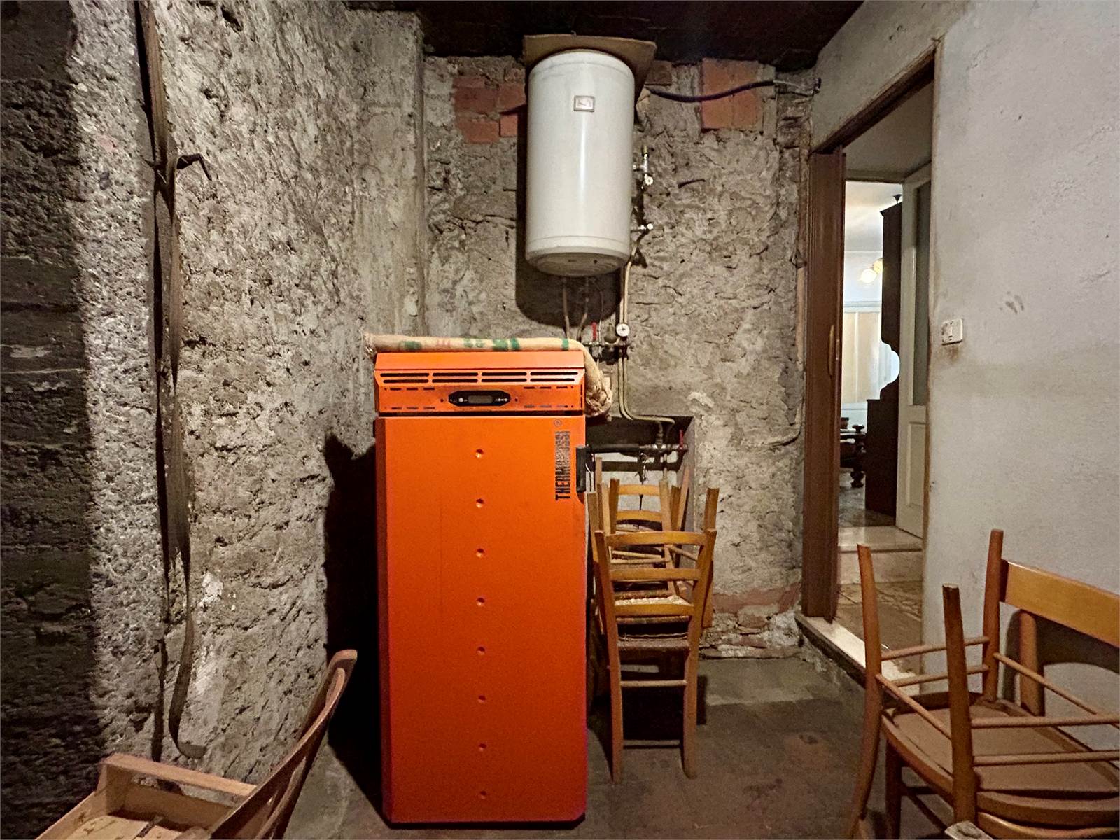 On the same level, there is a convenient storage room, currently unfinished, which houses the pellet boiler connected to the radiators throughout the house.
