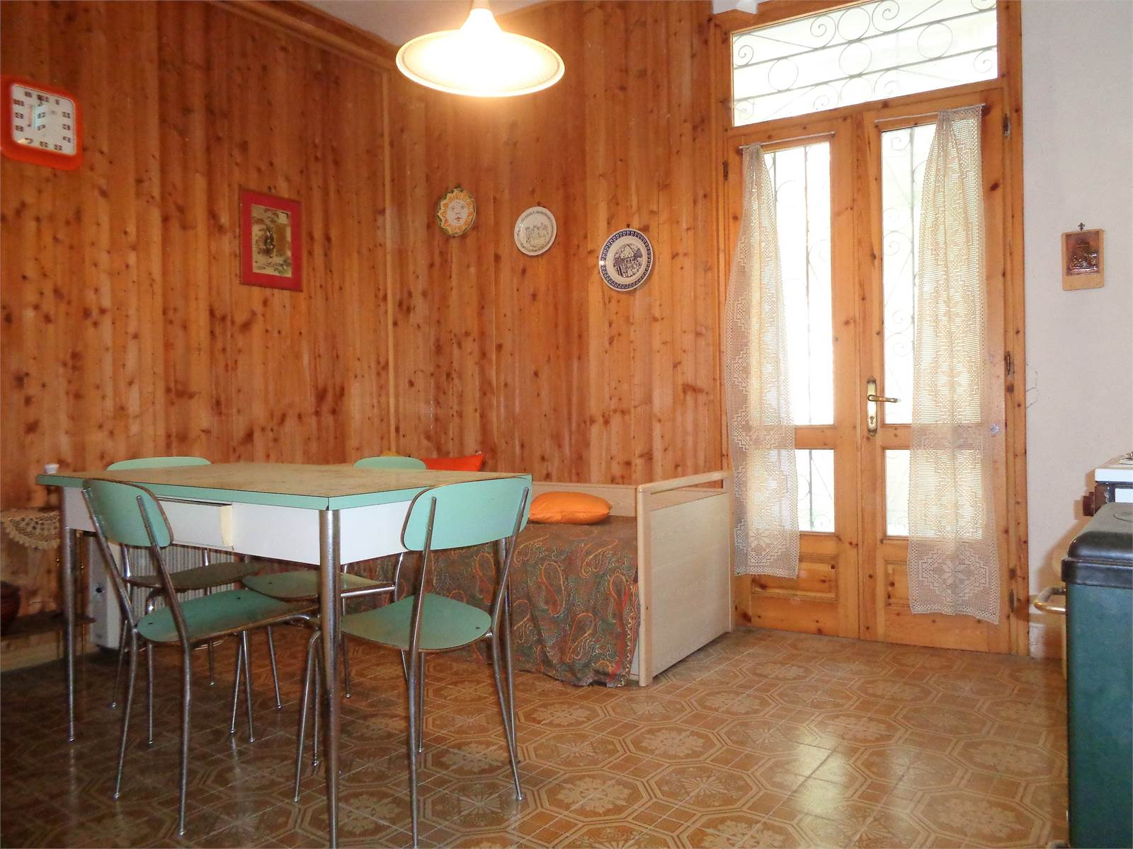 The property is adjacent to Piazza della Libertà in Ormea and schools, shops, and services can all be easily reached on foot. The property consists of an apartment located in a semi-detached house and its related outbuildings. The apartment has two separate entrances, one from the municipal road side and the main one through a ramp from the fenced courtyard within the building. The main entrance provides direct access to the apartment's kitchen, which is a spacious room that includes a fitted wall, a dining area, and a sitting corner. The kitchen connects to the internal hallway, which divides the living area, sleeping area, and bathroom, and from where you can access the cellars and the garage below through internal stairs. The bathroom is windowless and equipped with a shower. The bedroom is large and has a characteristic decorated ceramic floor. The internal stairs starting from the hallway lead to the lower floors where the annexes of the accommodation are located. On the first floor, there are two large storage rooms with a height of approximately one meter and twenty centimeters. On the second basement floor, also accessible from the internal staircase, there are two cellars and a garage measuring just under twenty square meters. The apartment is sold furnished and has finishes and systems dating back to the 1980s, and can be inhabited with minimal maintenance work. The property also includes a small masonry building used as a storage, which is located in front of the kitchen entrance door.