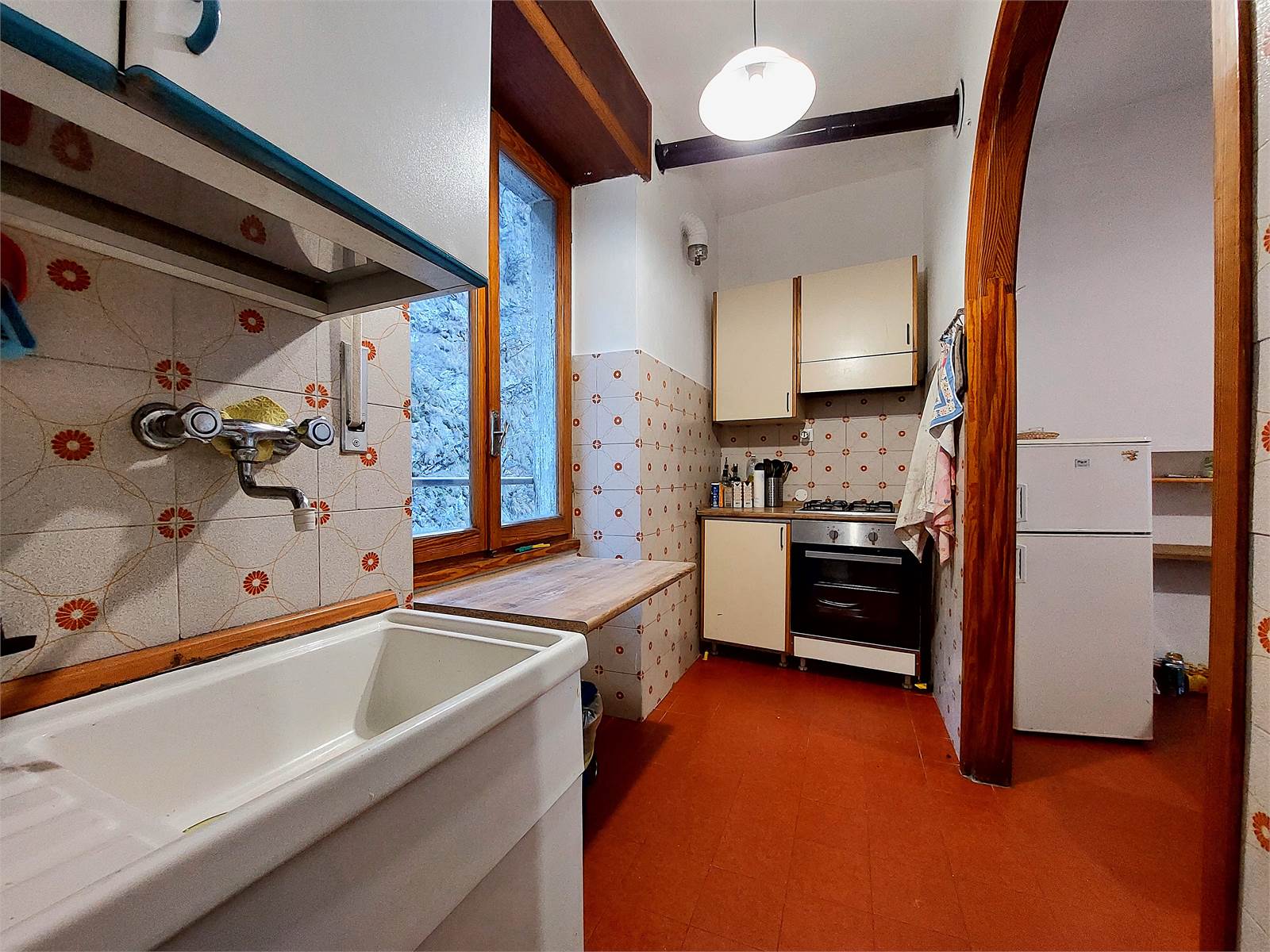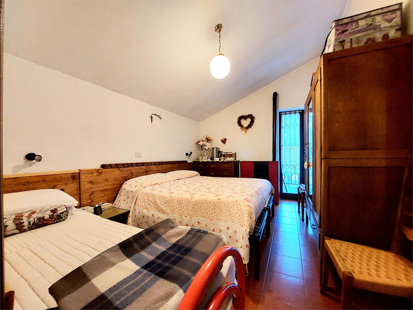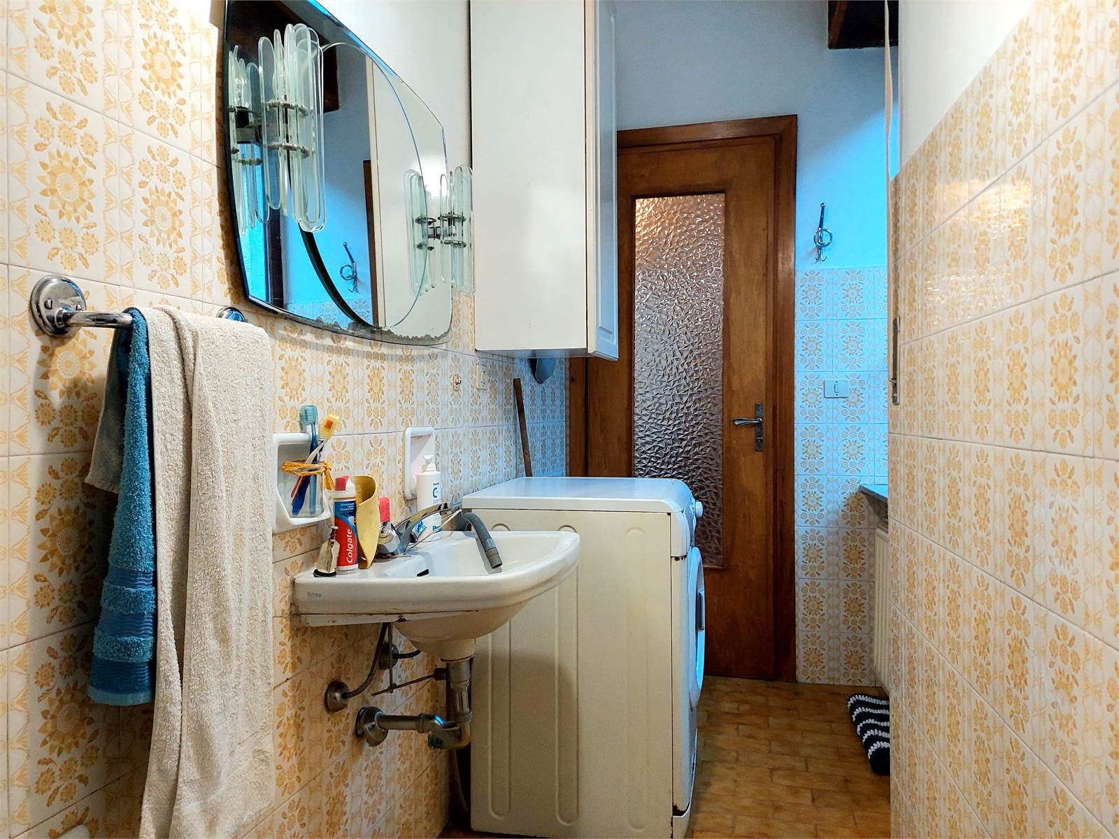 The entire house has finishes and systems dating back to the seventies and has two terraces, one is located in front of the entrance of the two apartments and the second is in a raised position, with access to the attic. The basement of the house consists of four cellars and a woodshed.