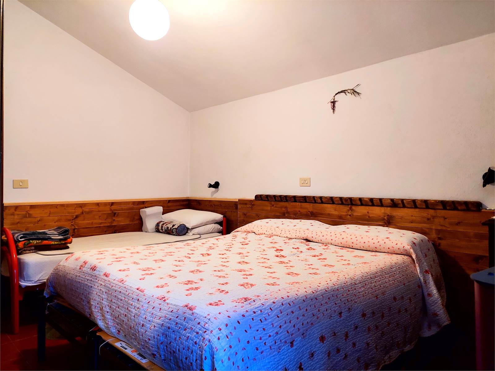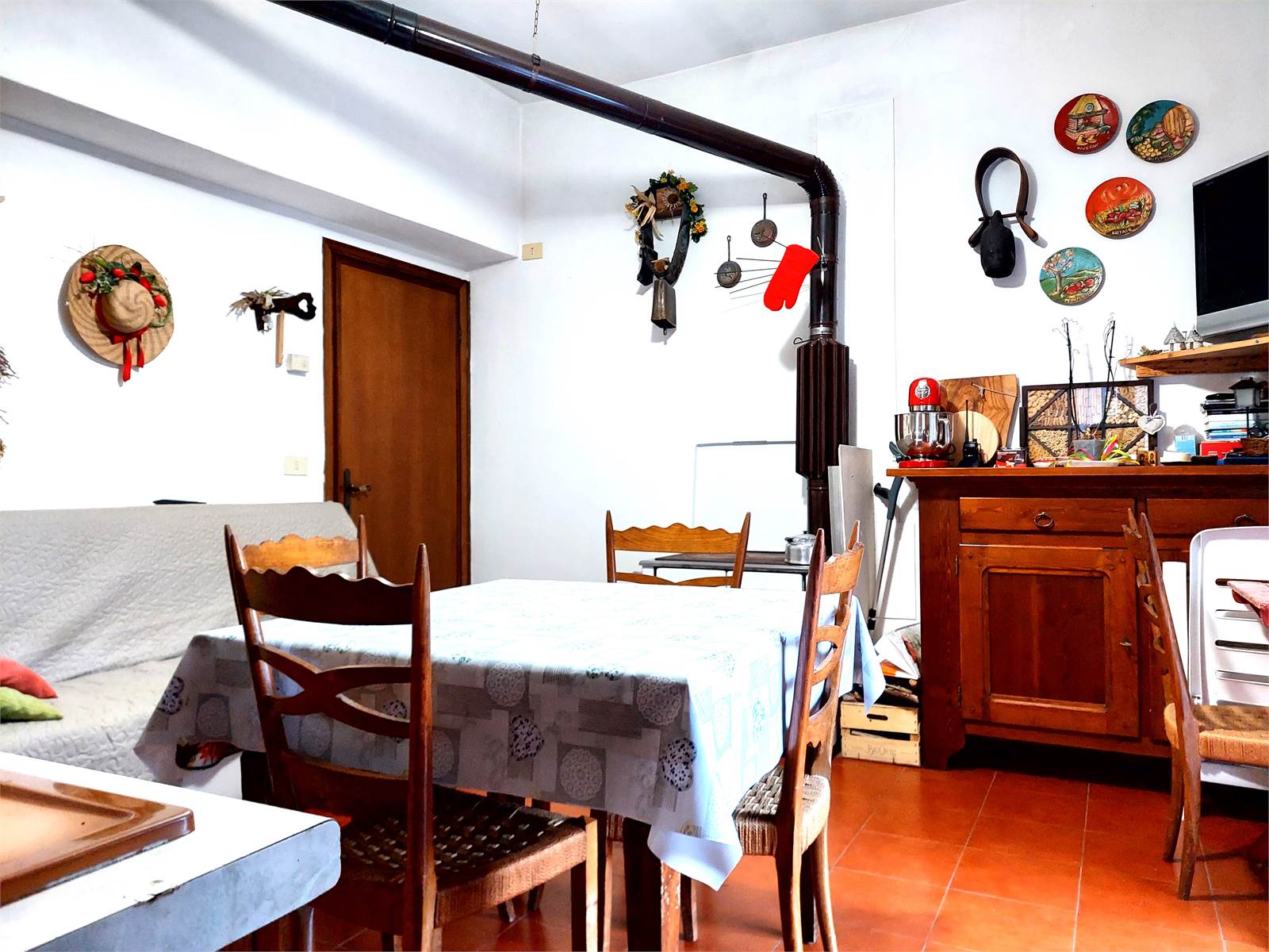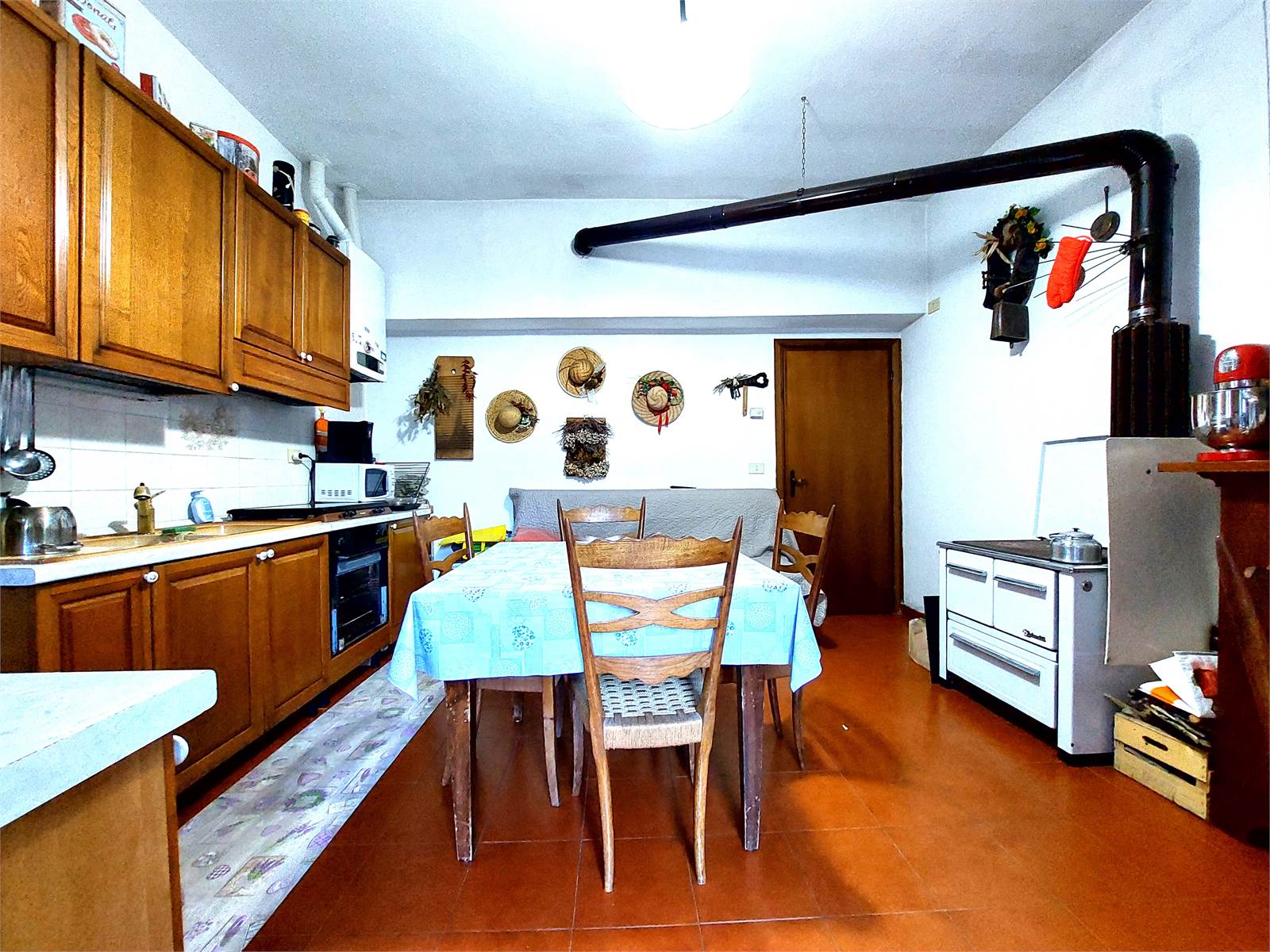 The entire house has finishes and systems dating back to the seventies and has two terraces, one is located in front of the entrance of the two apartments and the second is in a raised position, with access to the attic. The basement of the house consists of four cellars and a woodshed.