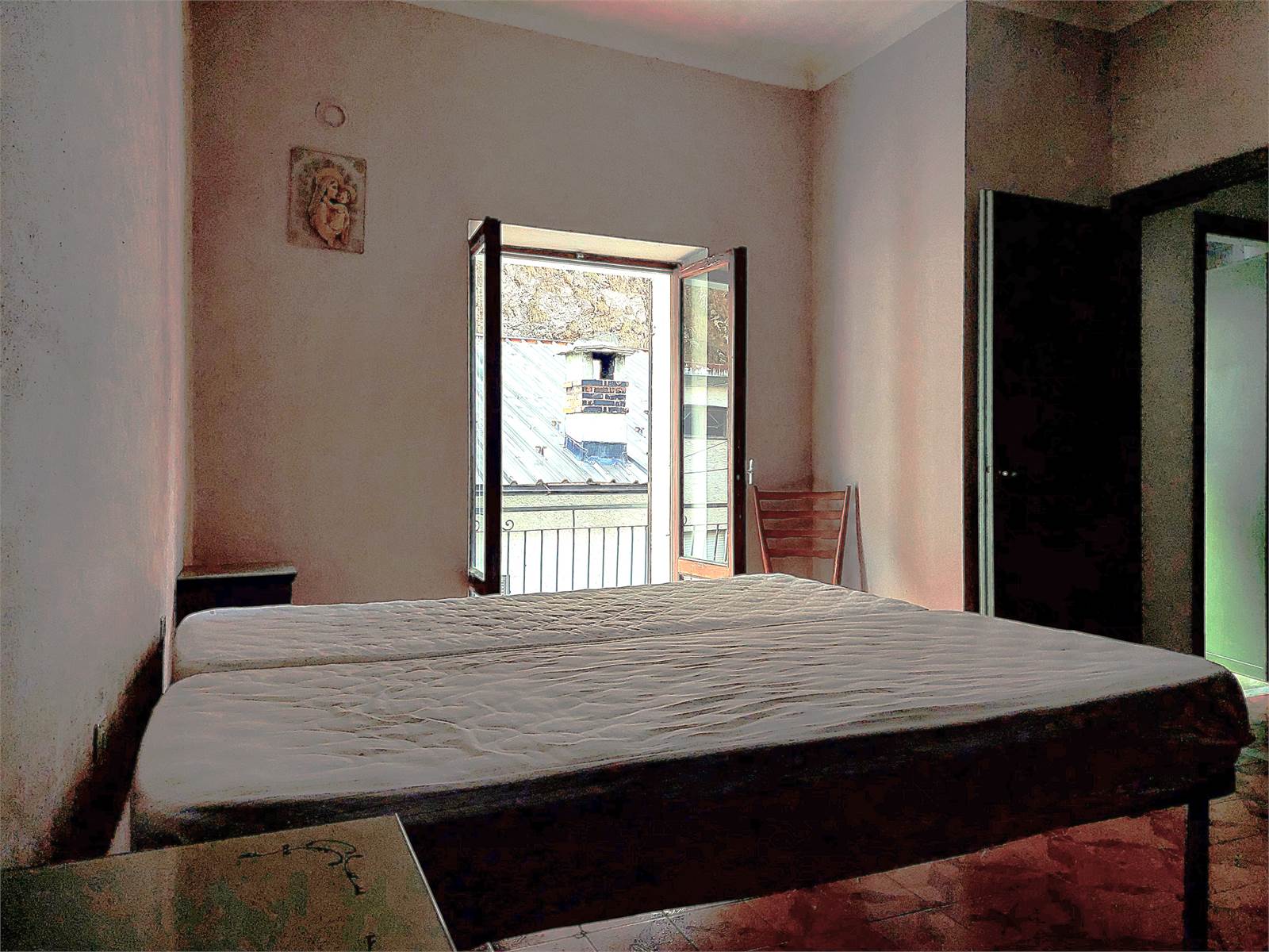 The other part of the building consists of a house structured in an entrance hallway, eat-in kitchen, three bedrooms and bathroom with window, balcony and bathtub. The apartment is equipped with an independent heating system with radiators.