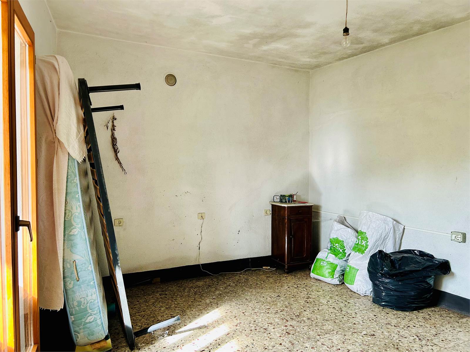 On the ground floor, the first room you encounter is the eat-in kitchen with a wood-burning stove, separated by the internal staircase from a room currently used as a storage room.