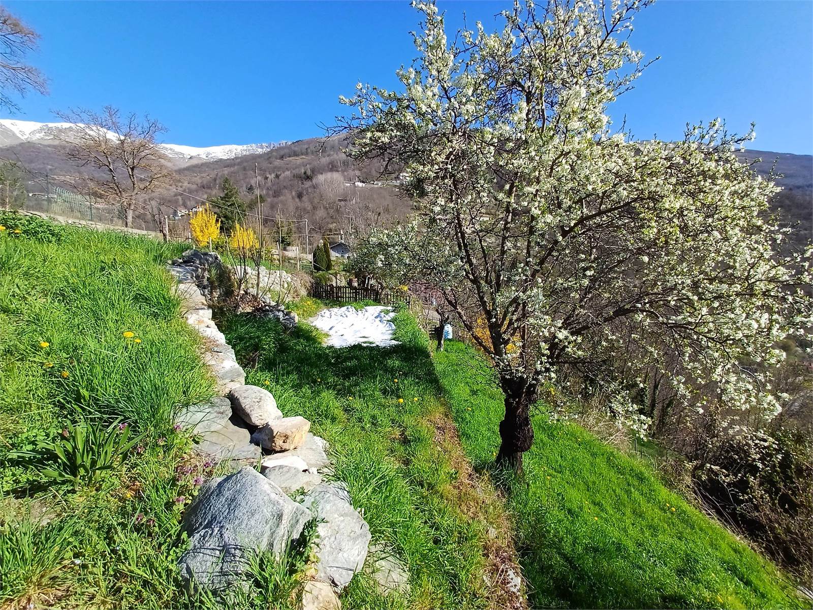 The elevated position makes the property sunny both in summer and winter and from it the view ranges 360 degrees, from the valley to the peaks of the surrounding mountains.