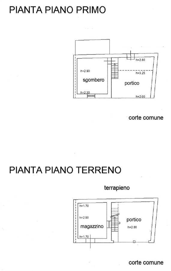 The porch is a portion of a rustic building, detached on three sides and accessible from the shared courtyard. The building has a ground floor and first floor, which consist of two storage rooms, one open and one closed, on the ground floor, and two other rooms with the same characteristics on the first floor.