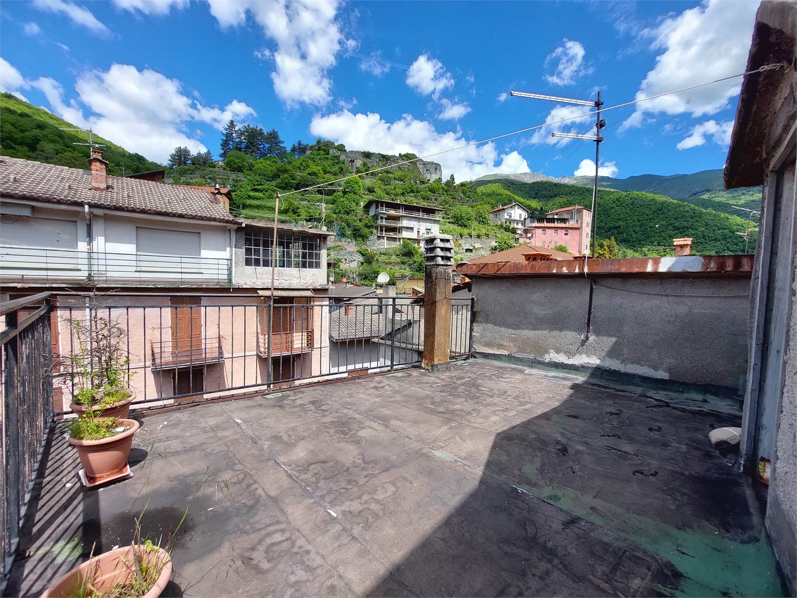 The staircase finally leads to the fourth floor of the house, where there is a private terrace, which measures about 19 square meters and from which the view ranges from the roofs of the historic center, to the ruins of the castle, up to the mountains that surround the town.