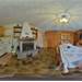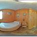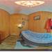 A small hallway with a wood-burning stove divides the four bedrooms that make up the sleeping area. It is entirely lined with wooden paneling, creating a warm and welcoming atmosphere.