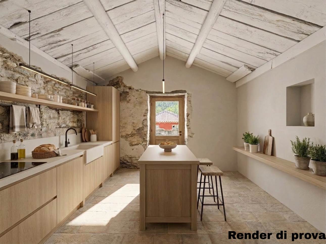 The property also benefits from a terrace with an open view over the greenery and the village, an element that brings in light and adds great potential to the living spaces.