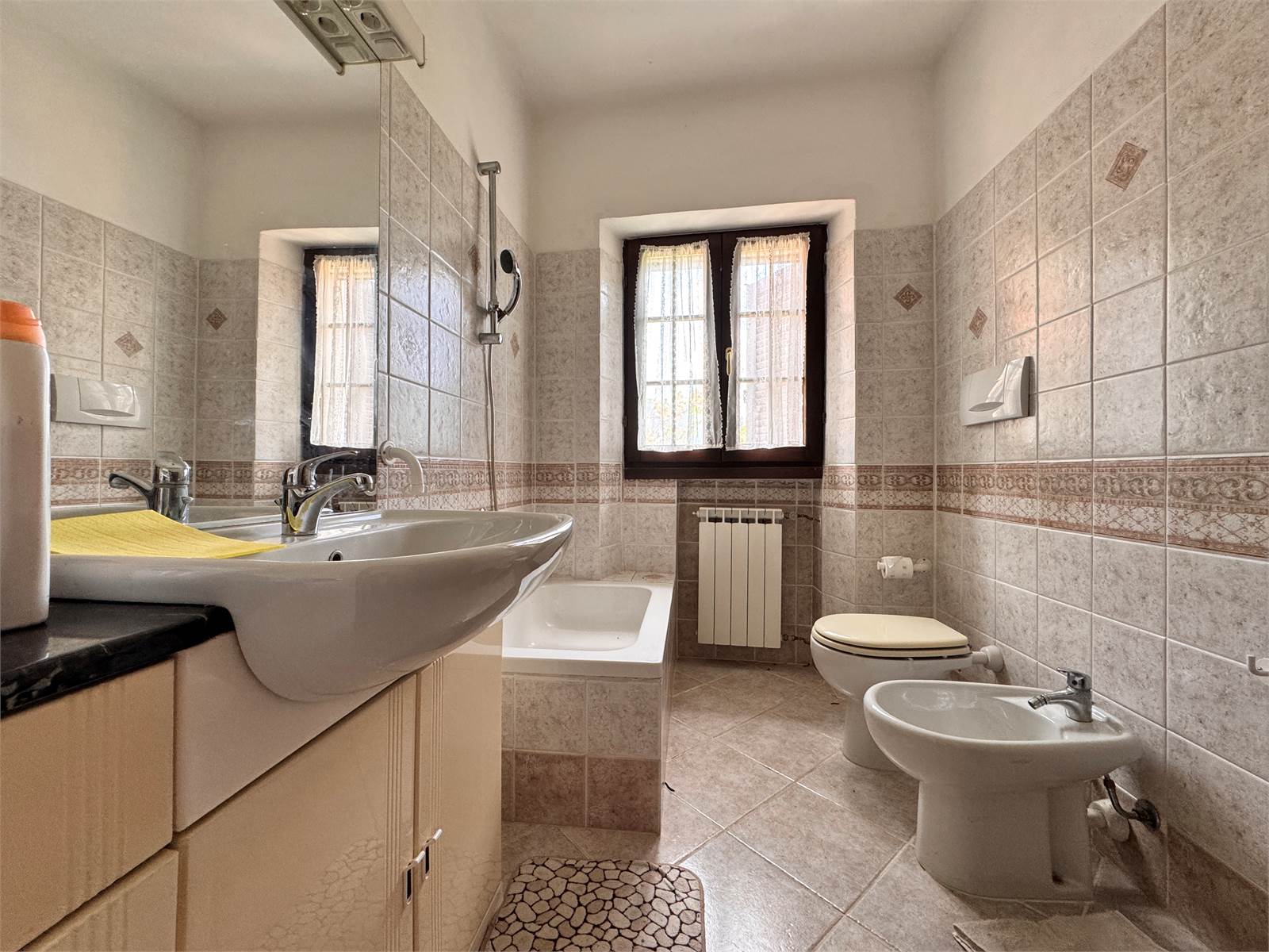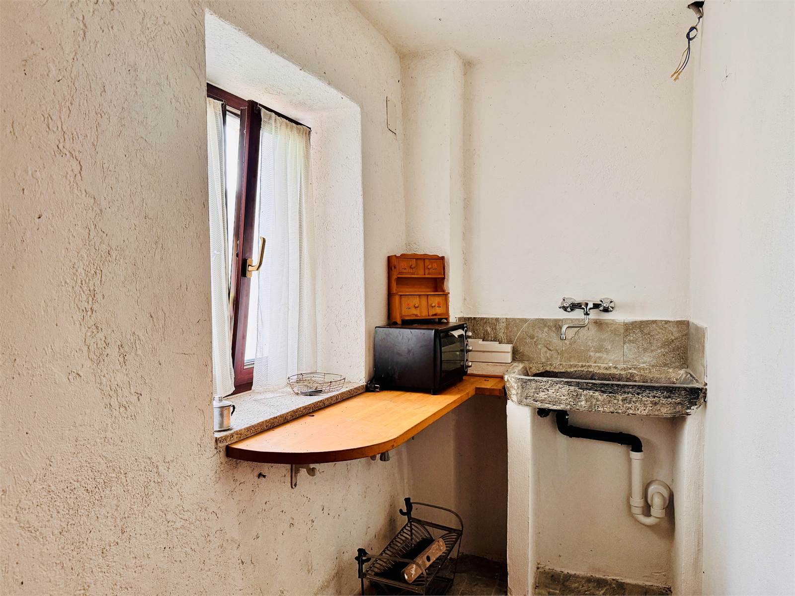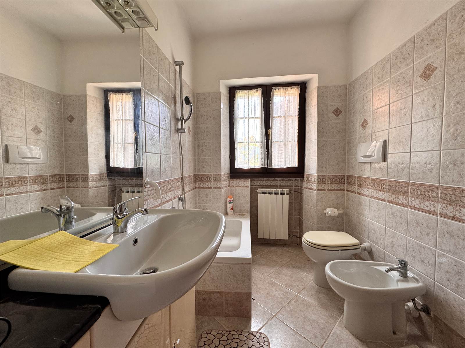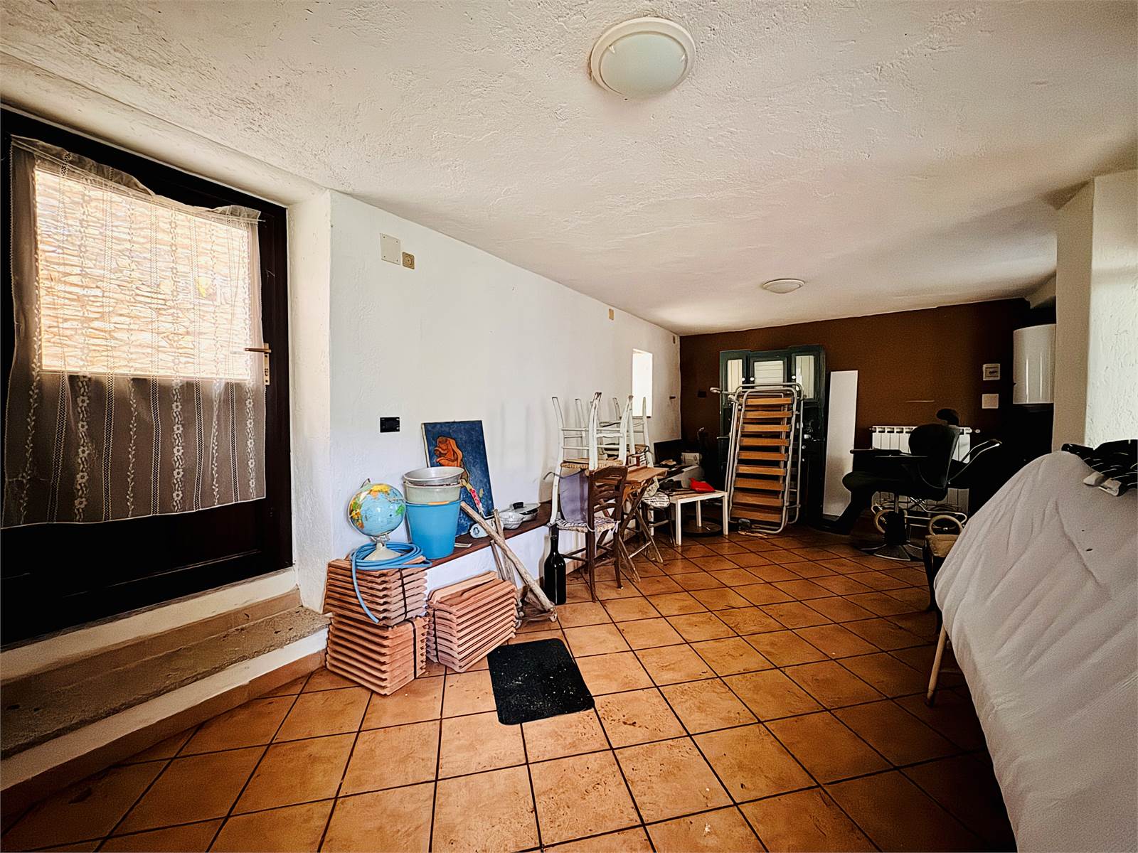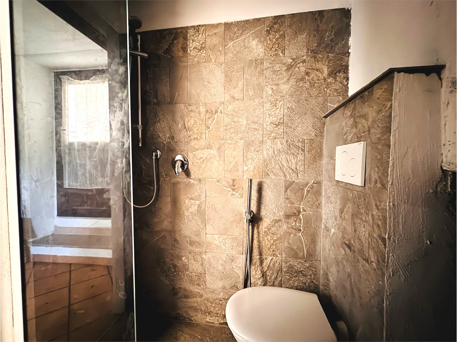 The basement level houses the tavern, which can be accessed from the right side of the property through a right of way. This area is spacious and ideal for hosting guests. A recently renovated bathroom with a shower enclosure and sanitary fixtures has been added here, along with a sink and countertop that allow for the creation of a kitchenette.