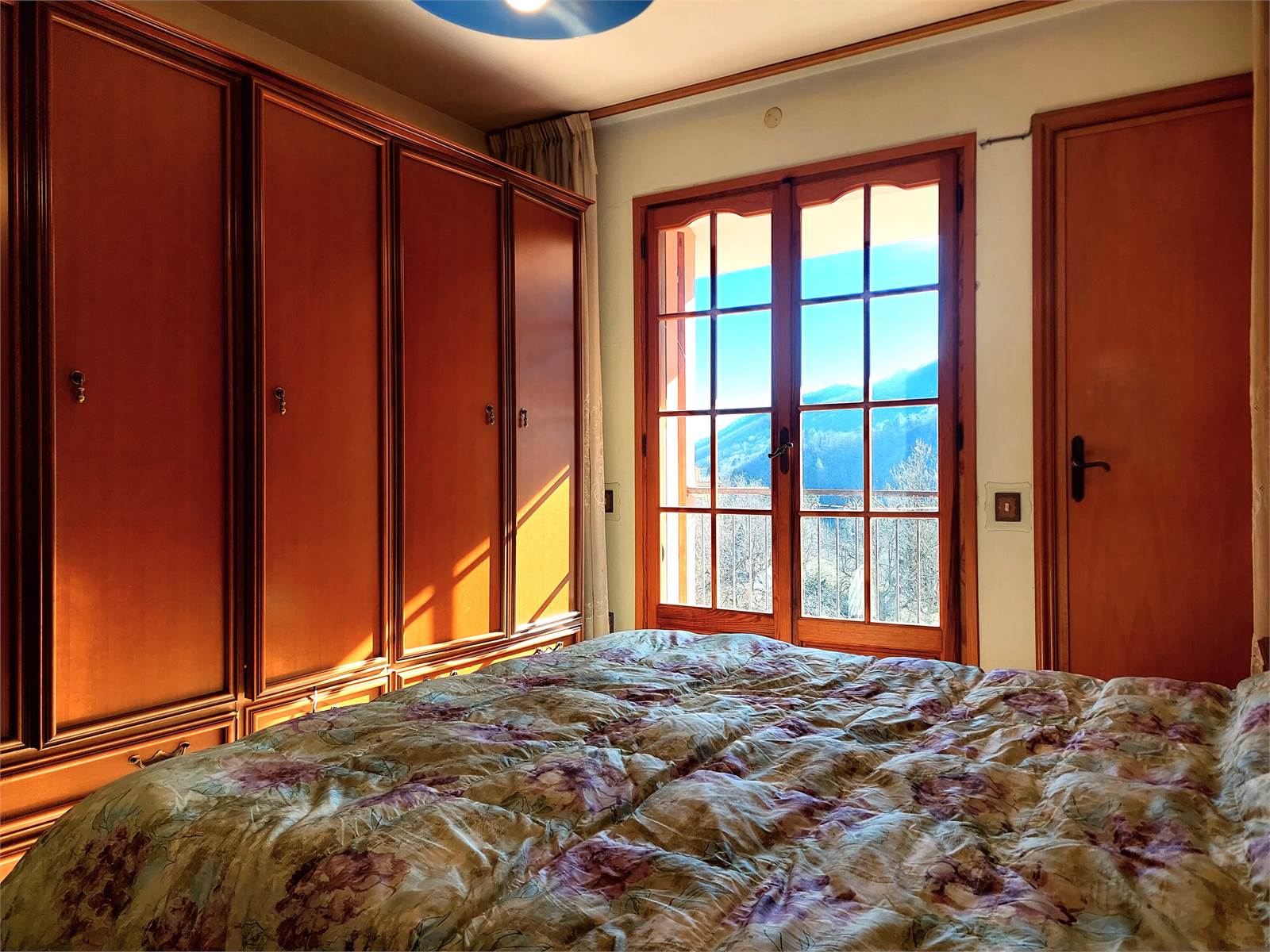 The internal staircase leads to the first floor where the sleeping area is located. There are three bedrooms, the largest of which has a closet with a predisposition to create a service bathroom and a balcony with a panoramic view of the mountains.