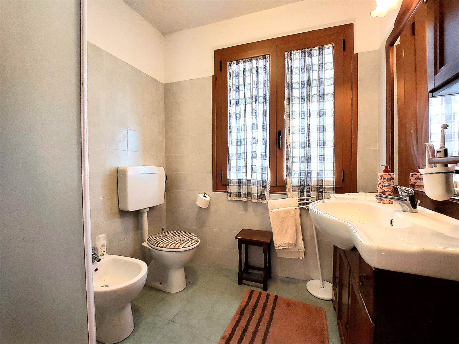 The building is detached on two sides and it has an independent entrance. On the ground floor of the building there is the private garage, which is directly accessible from the square on which the house overlooks and in front of which it is possible to park a second car using the driveway.