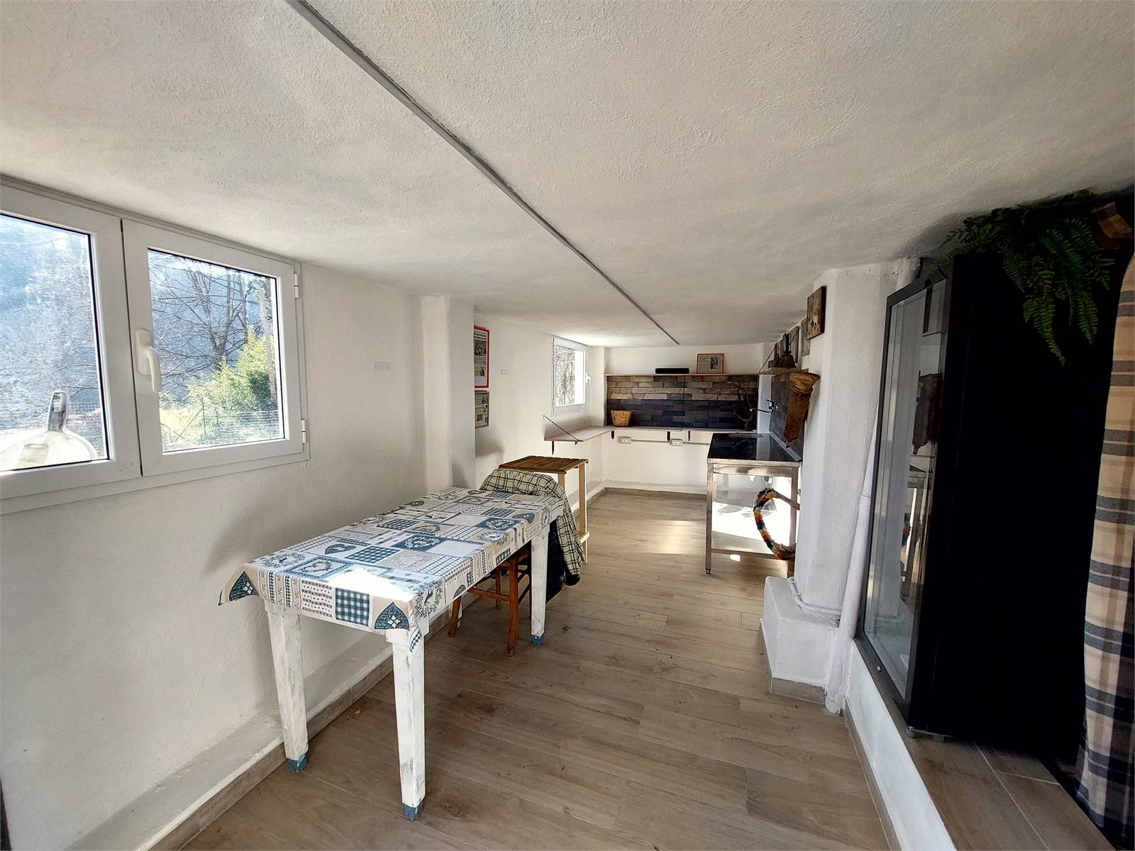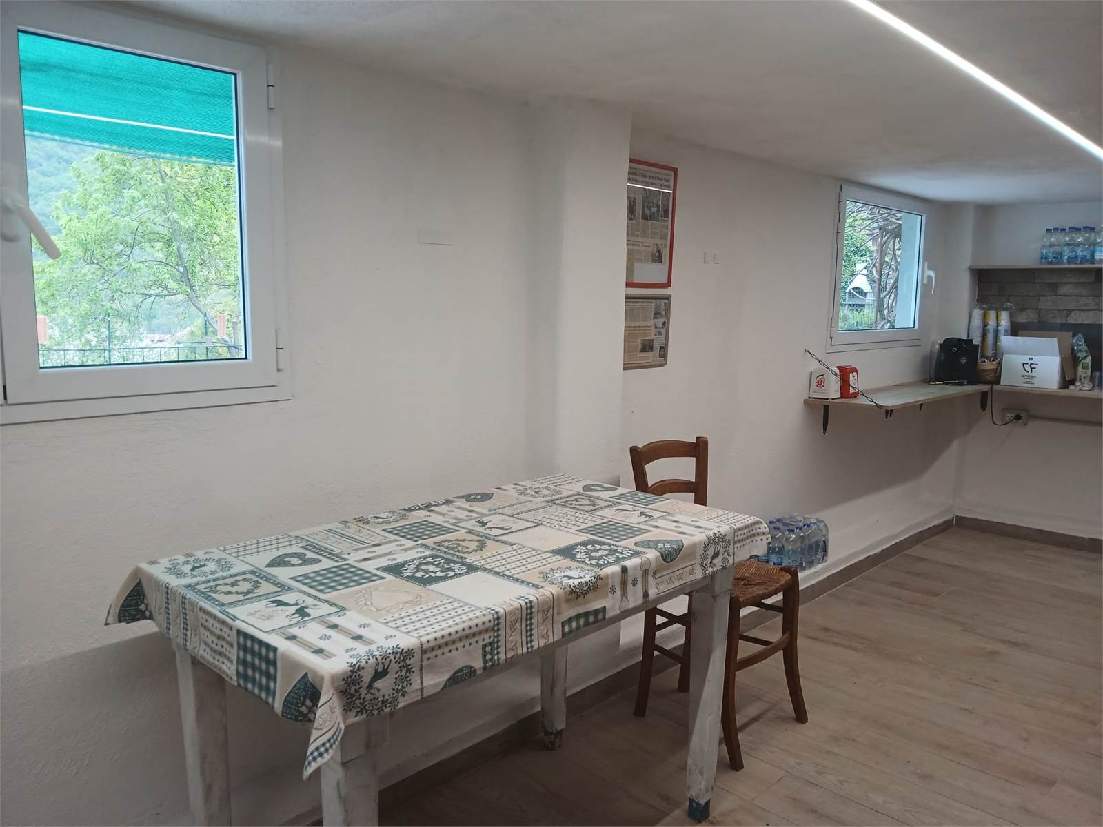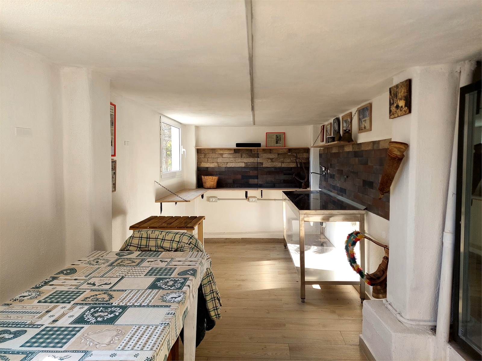 The living area is on the ground floor and consists of a tavern-use space with open kitchen used both as a living room and as a dining room. The living area has direct access to the terrace, which measures approximately 15 square meters and has a panoramic view of the mountains.