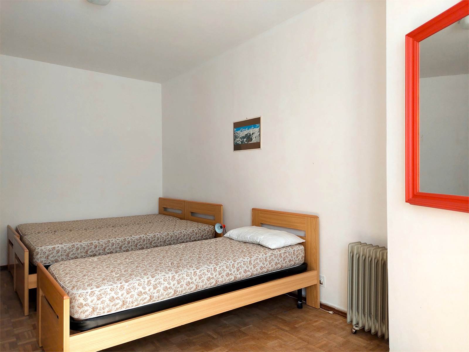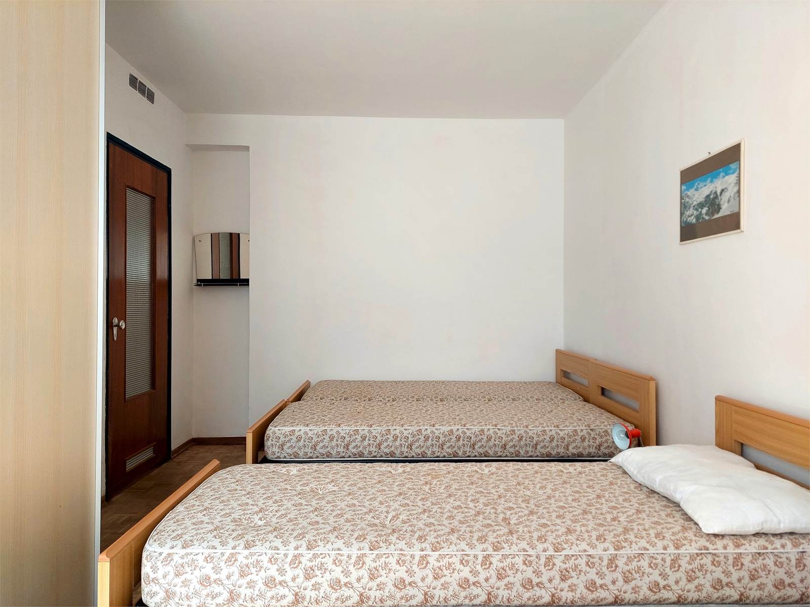 There is a bedroom currently furnished with a single bed and a double bed, as well as a wardrobe.