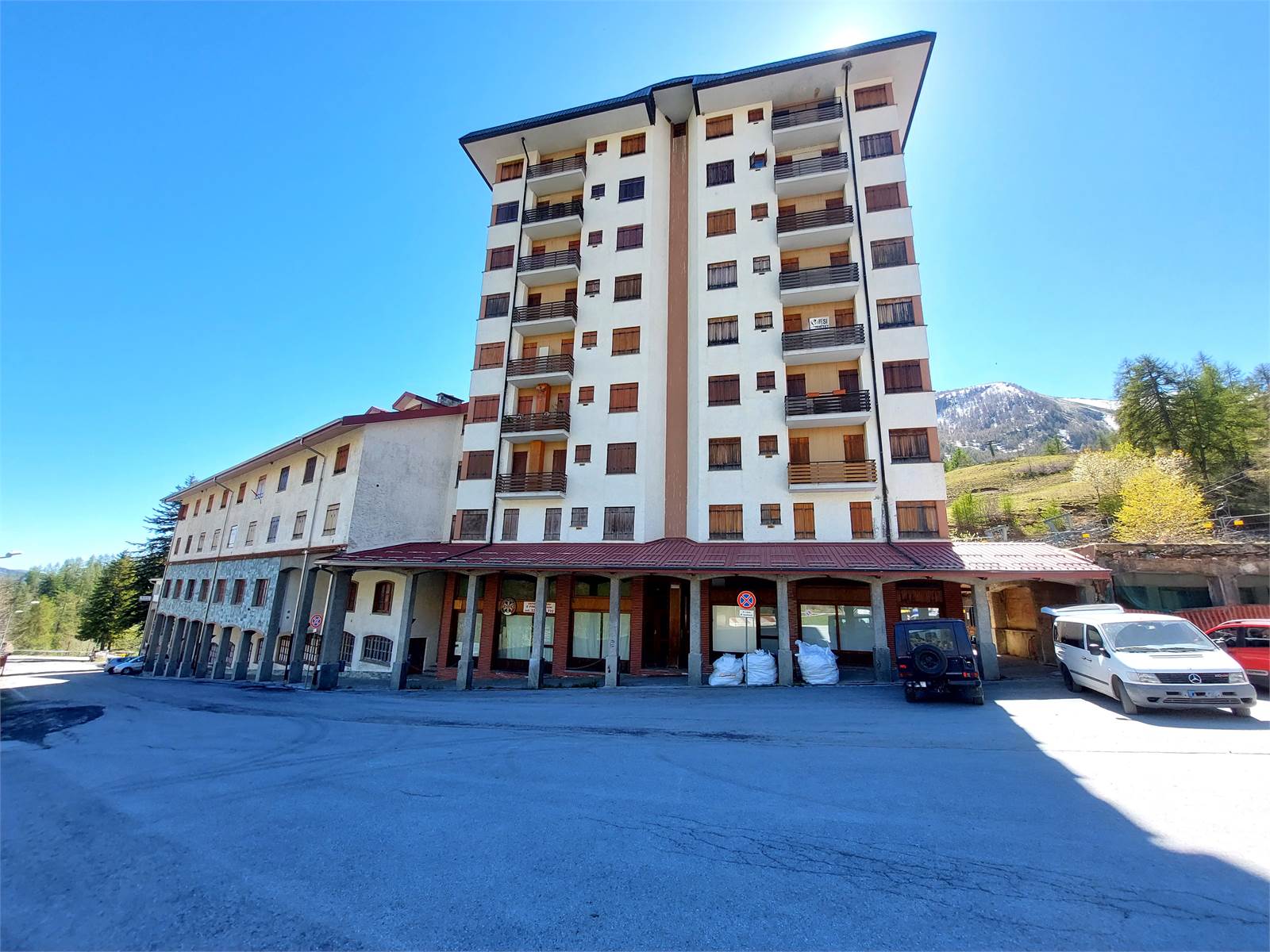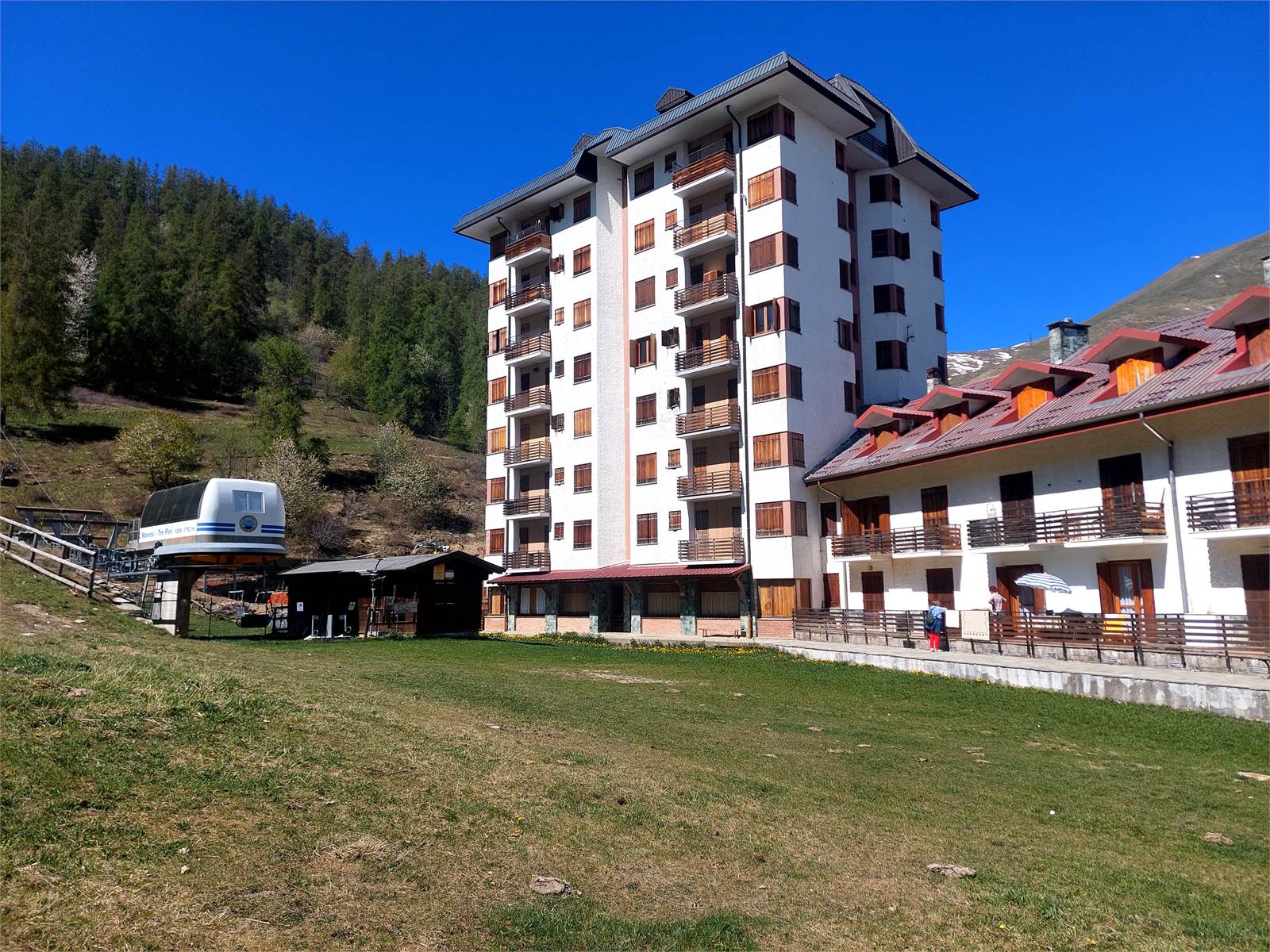 The apartment is located in the Stella Alpina condominium in the Alpine village of Monesi di Triora, a historic Ligurian ski resort, where the ski lifts are currently not in operation. The Liguria Region plans to redevelop the area as a hub for outdoor sports, and initial work will begin in summer 2026.