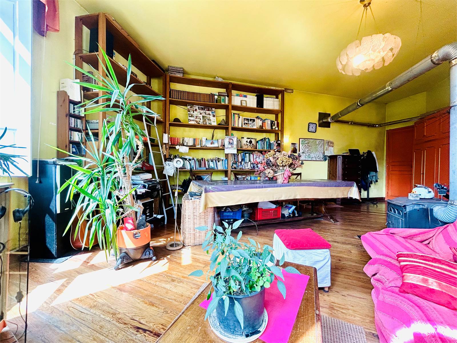Sul medesimo piano c'è un'ampia sala ottimamente esposta e dotata di stufa a legna attualmente utilizzata come abitazione.
