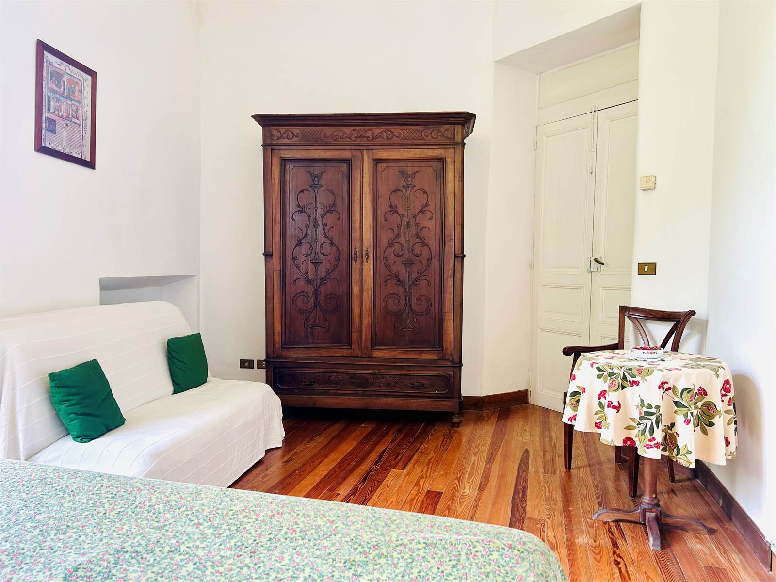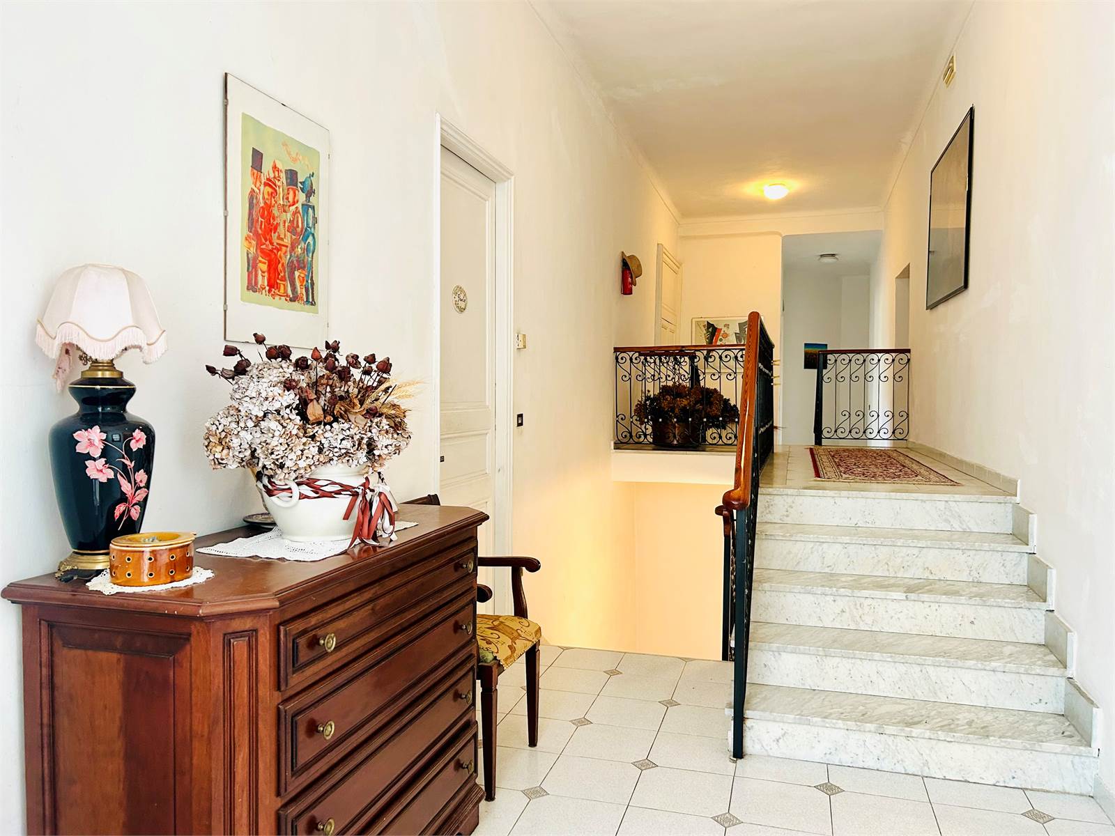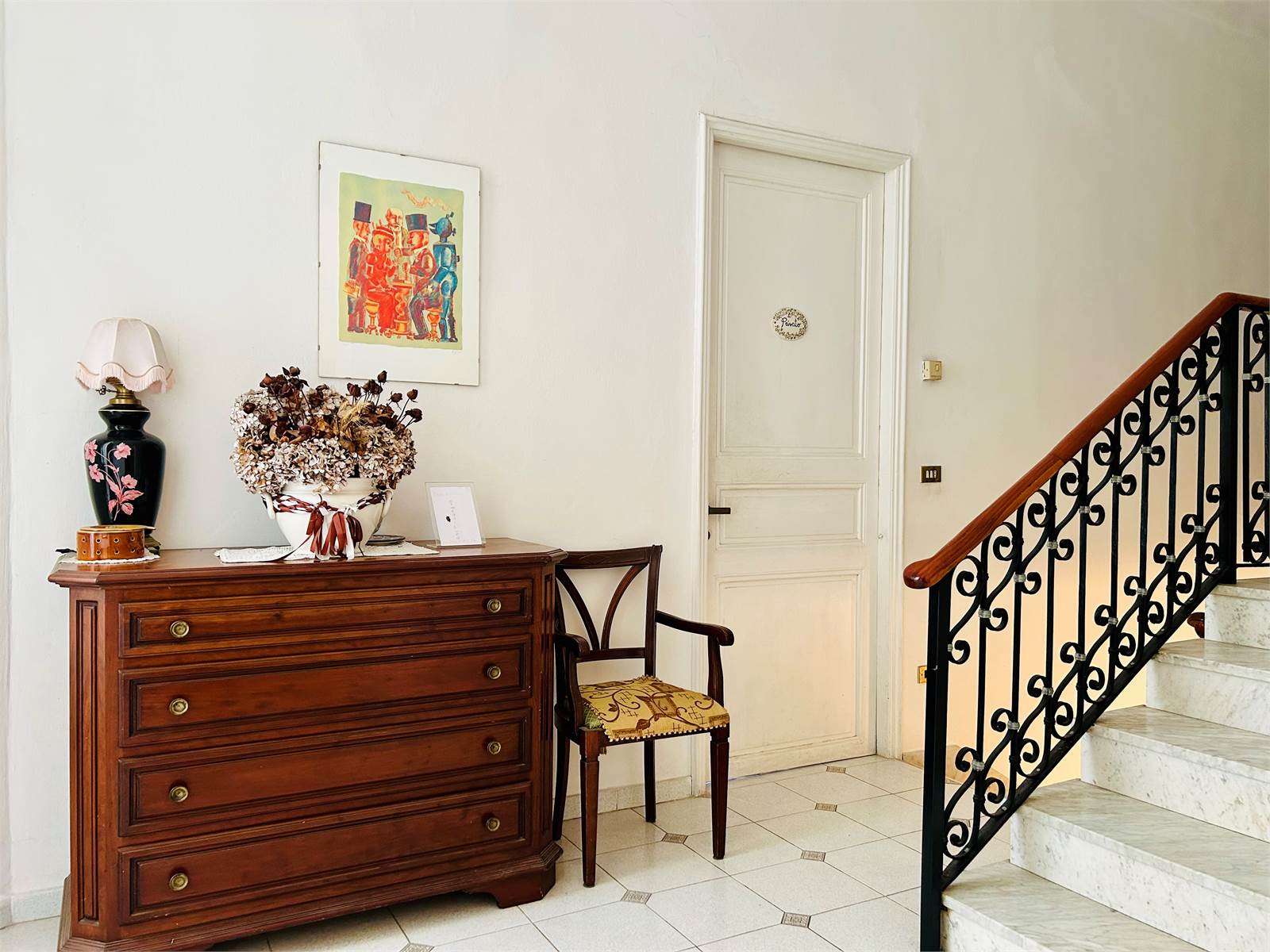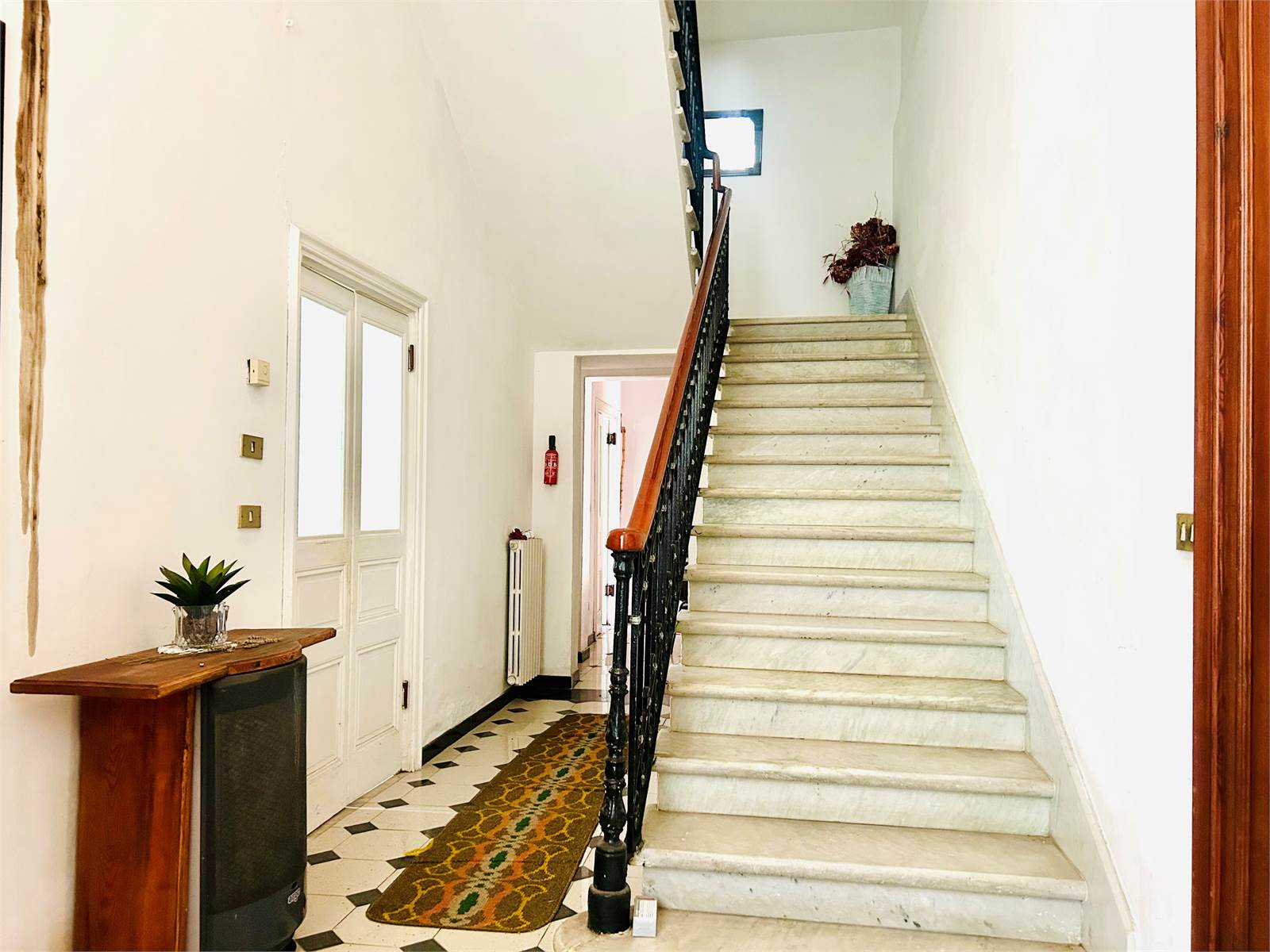 Salendo l'antica scala in marmo bianco si arriva al primo livello adibito principalmente a zona notte.