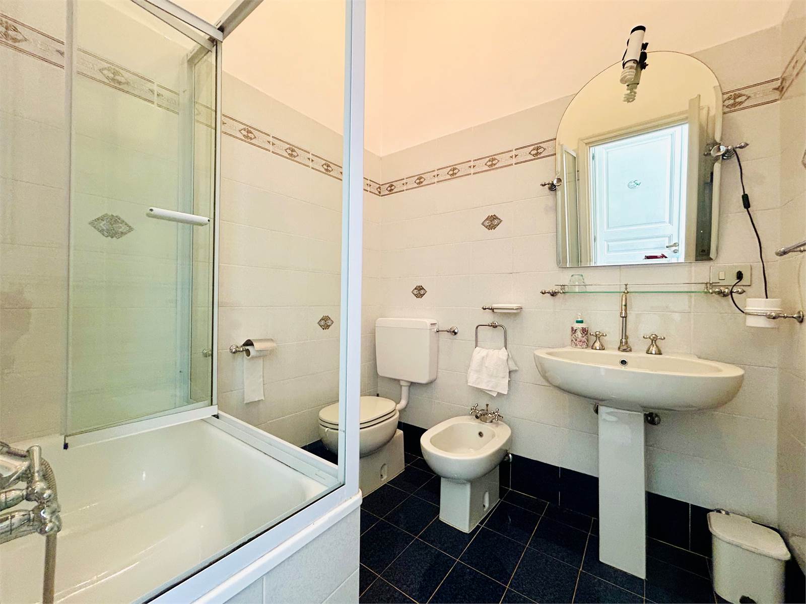 Sullo stesso livello si trova un bagno di servizio e il disimpegno che separa le due sale dalla zona cucina.