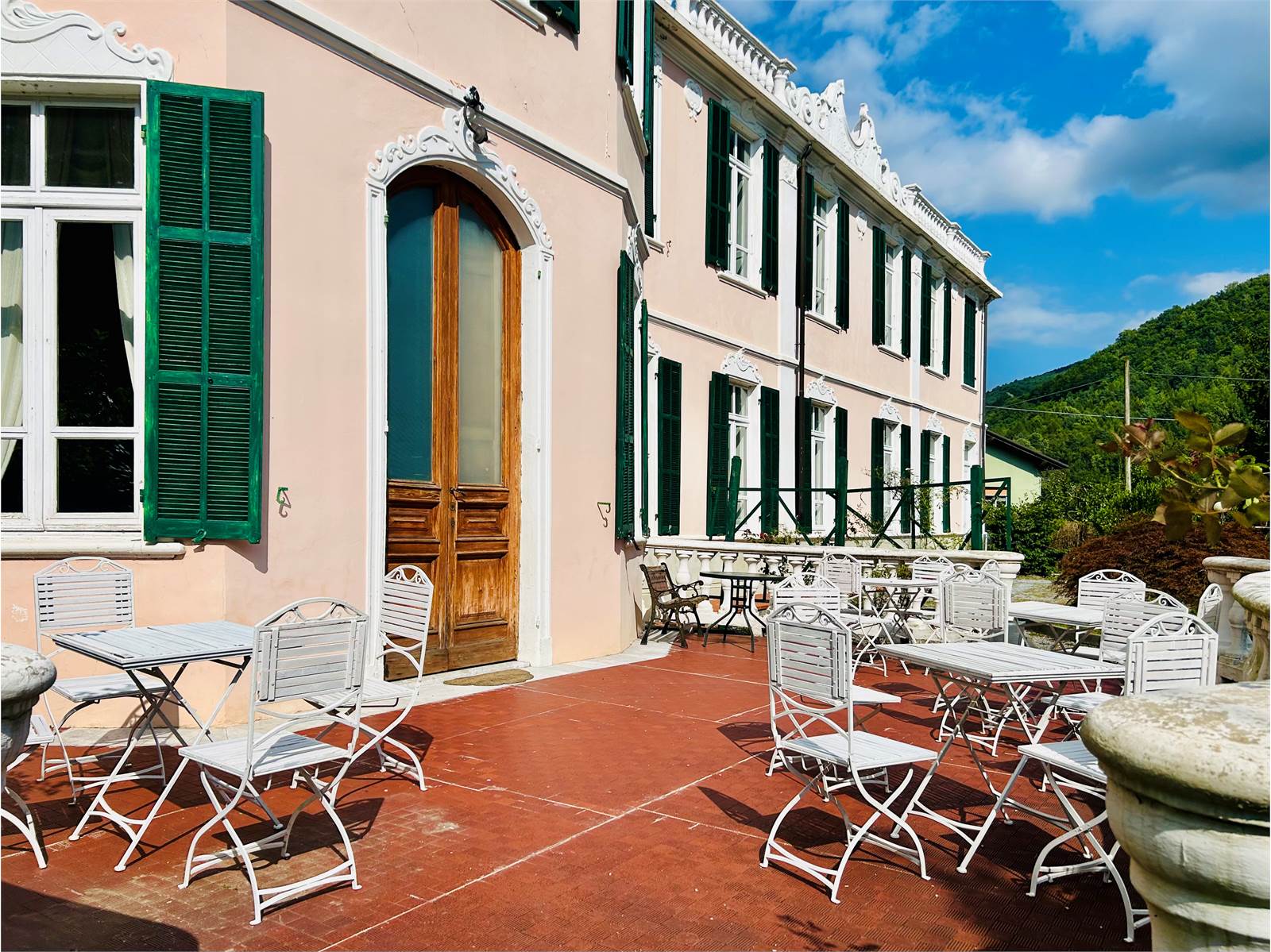 L'ingresso alla struttura è preceduto da un ampia terrazza da cui si può notare lo Stile Liberty che caratterizza ogni angolo della Villa.