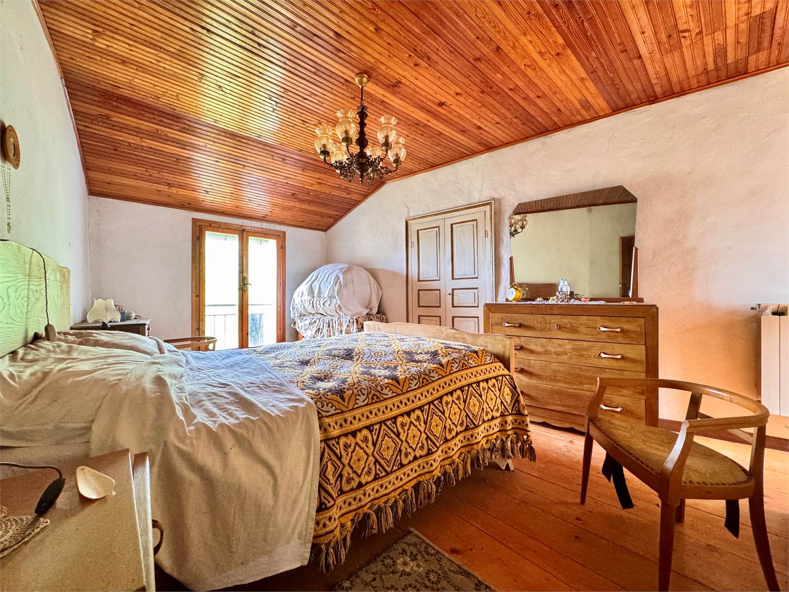 Al primo piano la zona notte è composta da una camera da letto spaziosa e luminosa grazie alla presenza di un'ampia finestra esposta a sud e da un terrazzo che affaccia sulla via del paese e altre due stanze con un balcone che affaccia sulla valle e con una ottima esposizione. Queste ultime due stanze sono ancora allo stato grezzo e necessitano di una nuova pavimentazione.