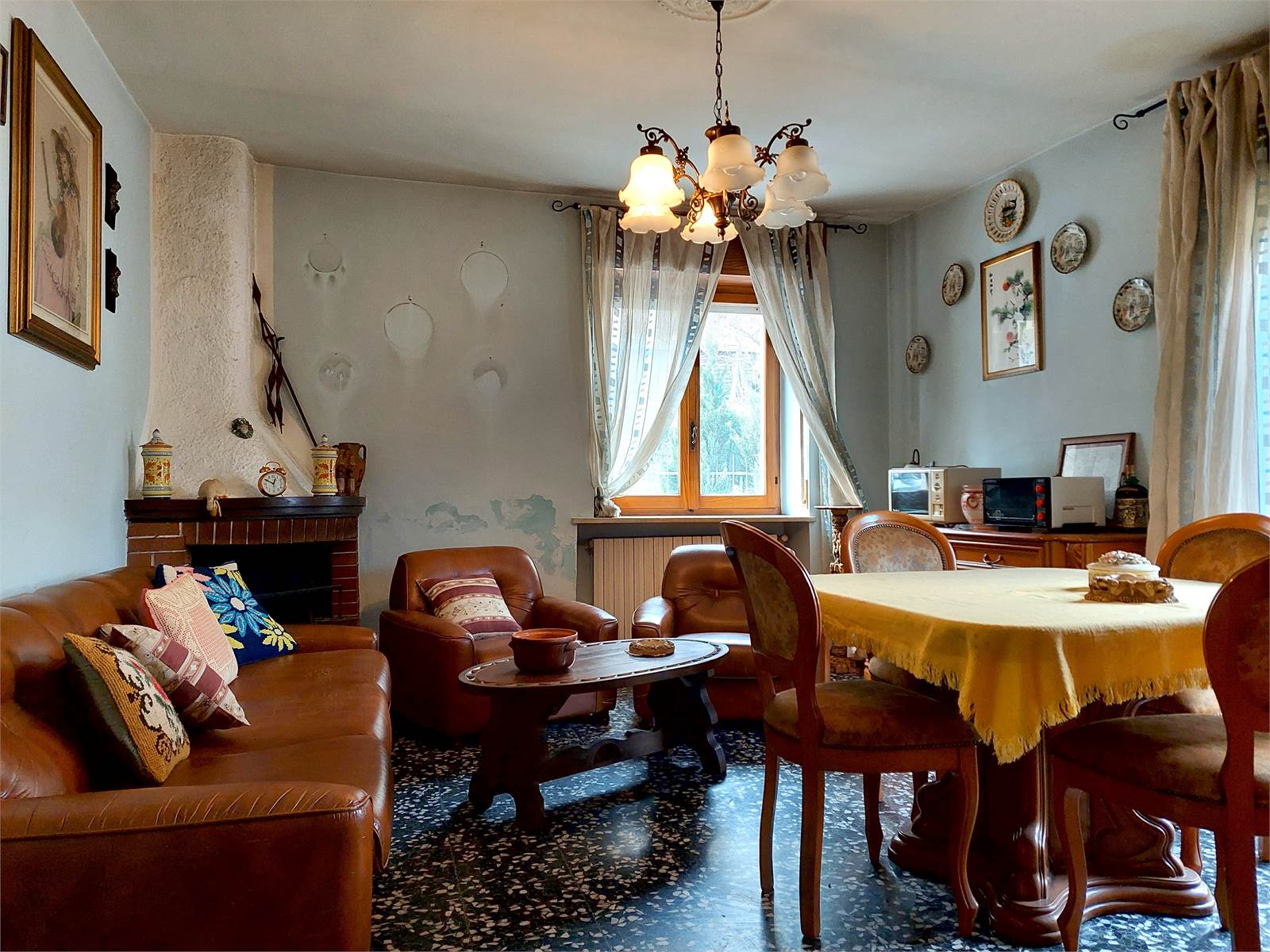 Il soggiorno si trova di fianco alla cucina ed è caratterizzato dal caminetto a legna presente al suo interno. Il vano ha anche un balcone, dal quale c'è un secondo ingresso indipendente posto sul retro della casa.