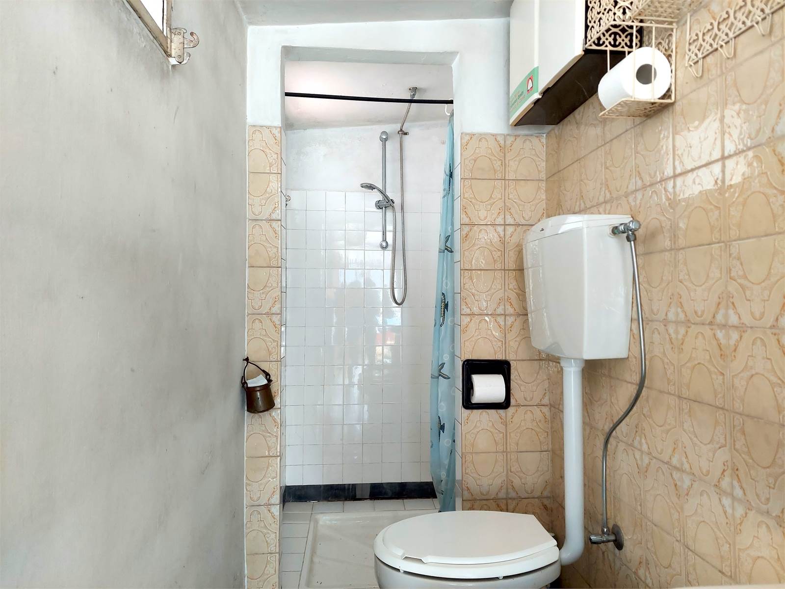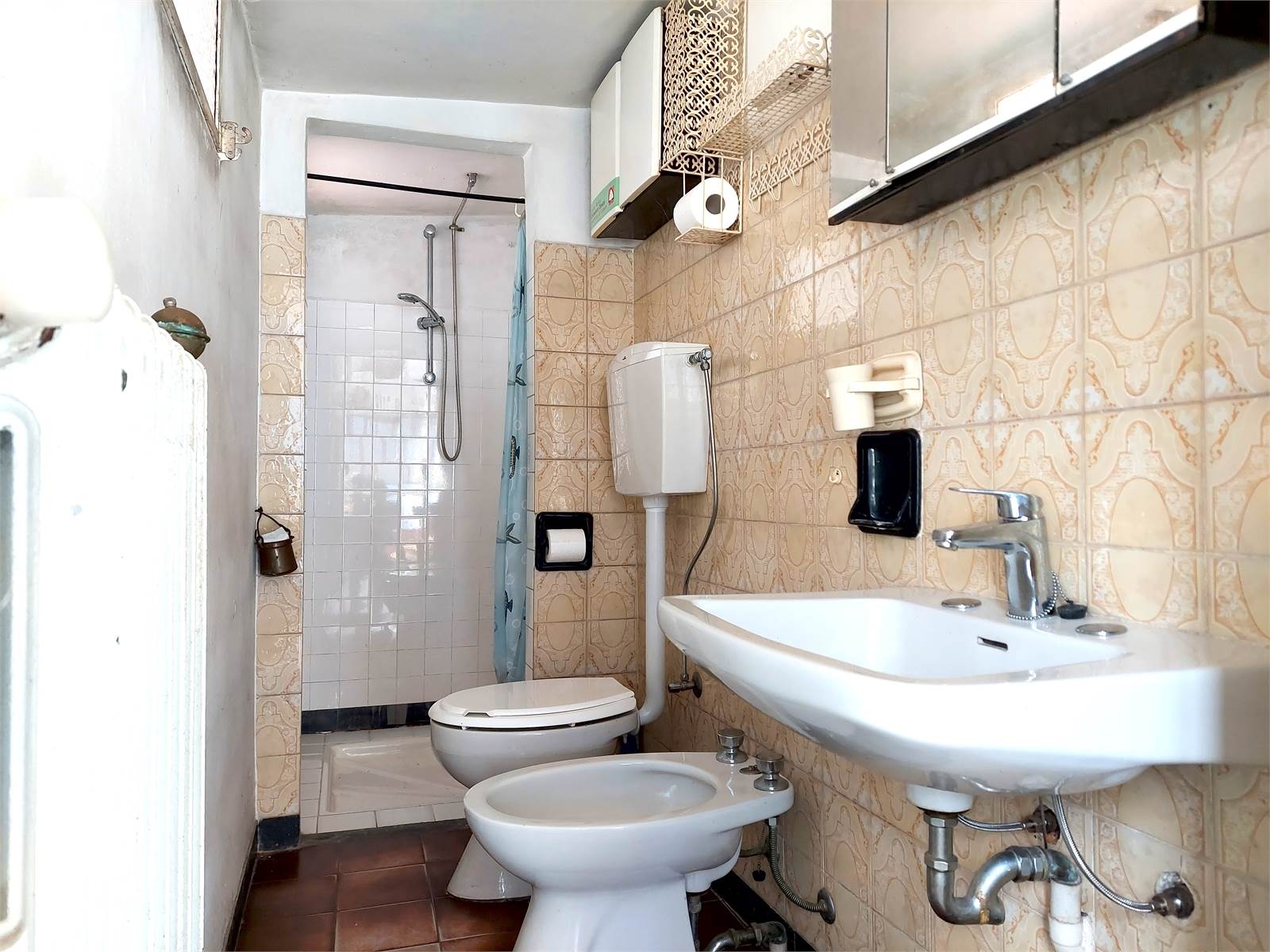 Il bagno ha la finestra e la doccia ed è accessibile dalla veranda della cucina.