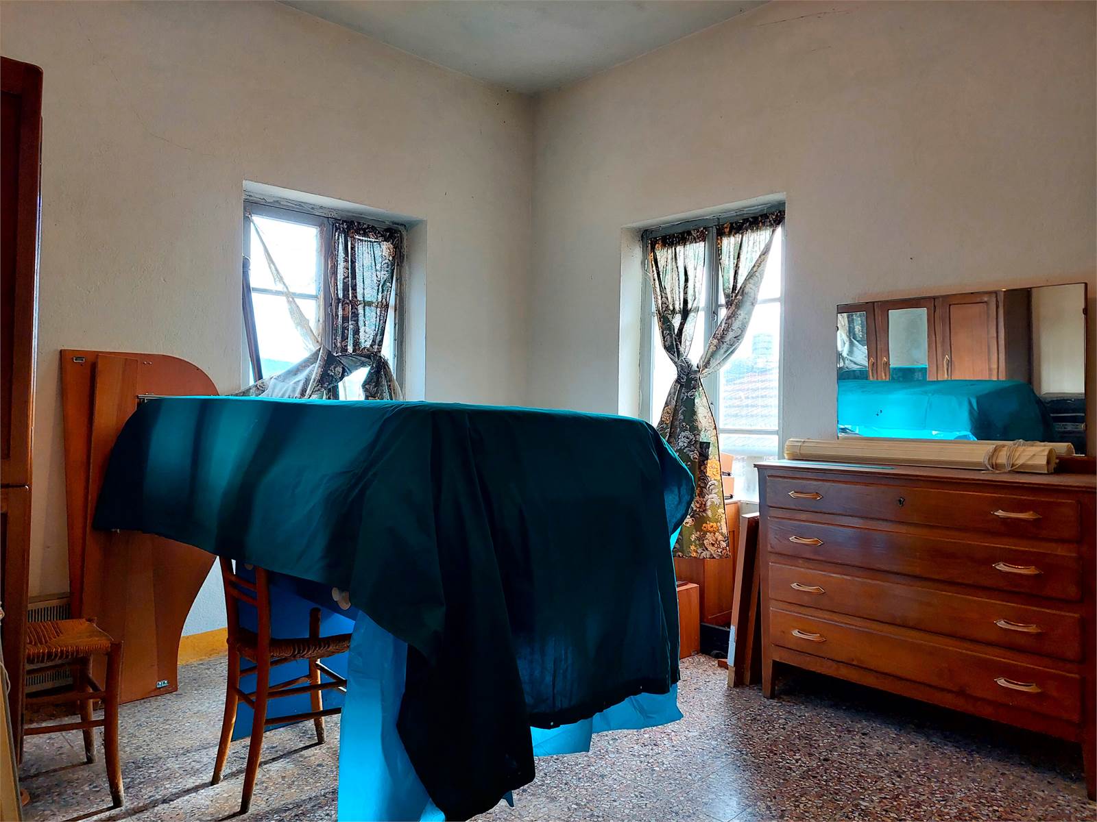 Il secondo piano del fabbricato è costituito da tre stanze grezze ed una cucina e due camere rimaste come negli anni Cinquanta del secolo scorso.