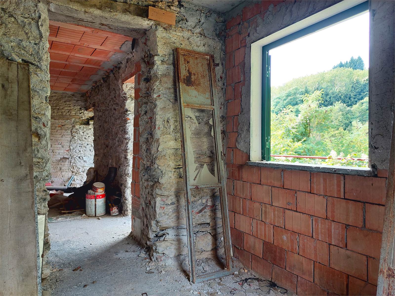 Il fabbricato di cui fa parte l'alloggio è stato completamente ristrutturata nel 2017 e conseguentemente il tetto, le solette e le facciate sono di recente costruzione. Invece l'alloggio oggetto di vendita è venduto in stato completamente grezzo e dev'essere ultimato internamente in tutte le sue parti; sono solamente presenti l'allacciamento all'acquedotto e alla fognatura pubblici.