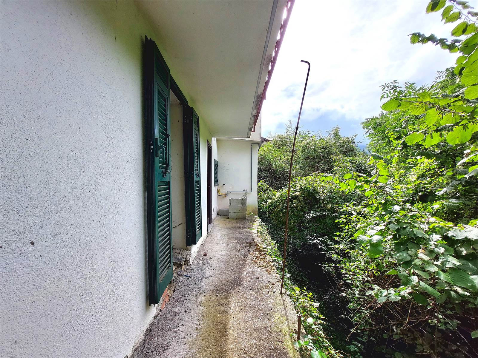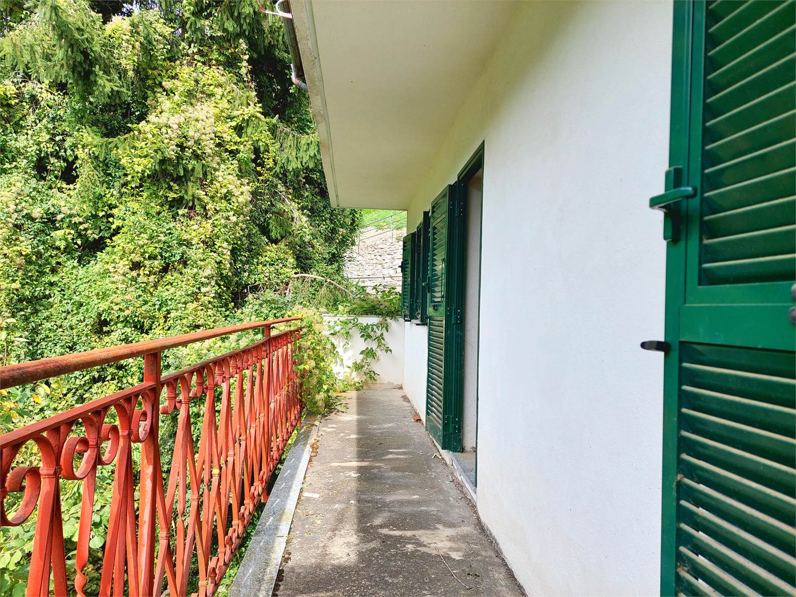L'alloggio ha due ingressi separati, il principale è indipendente dalla strada comunale, mentre il secondo ingresso è al piano seminterrato della casa ed è su un balcone in comune con l'altro appartamento che compone il fabbricato.