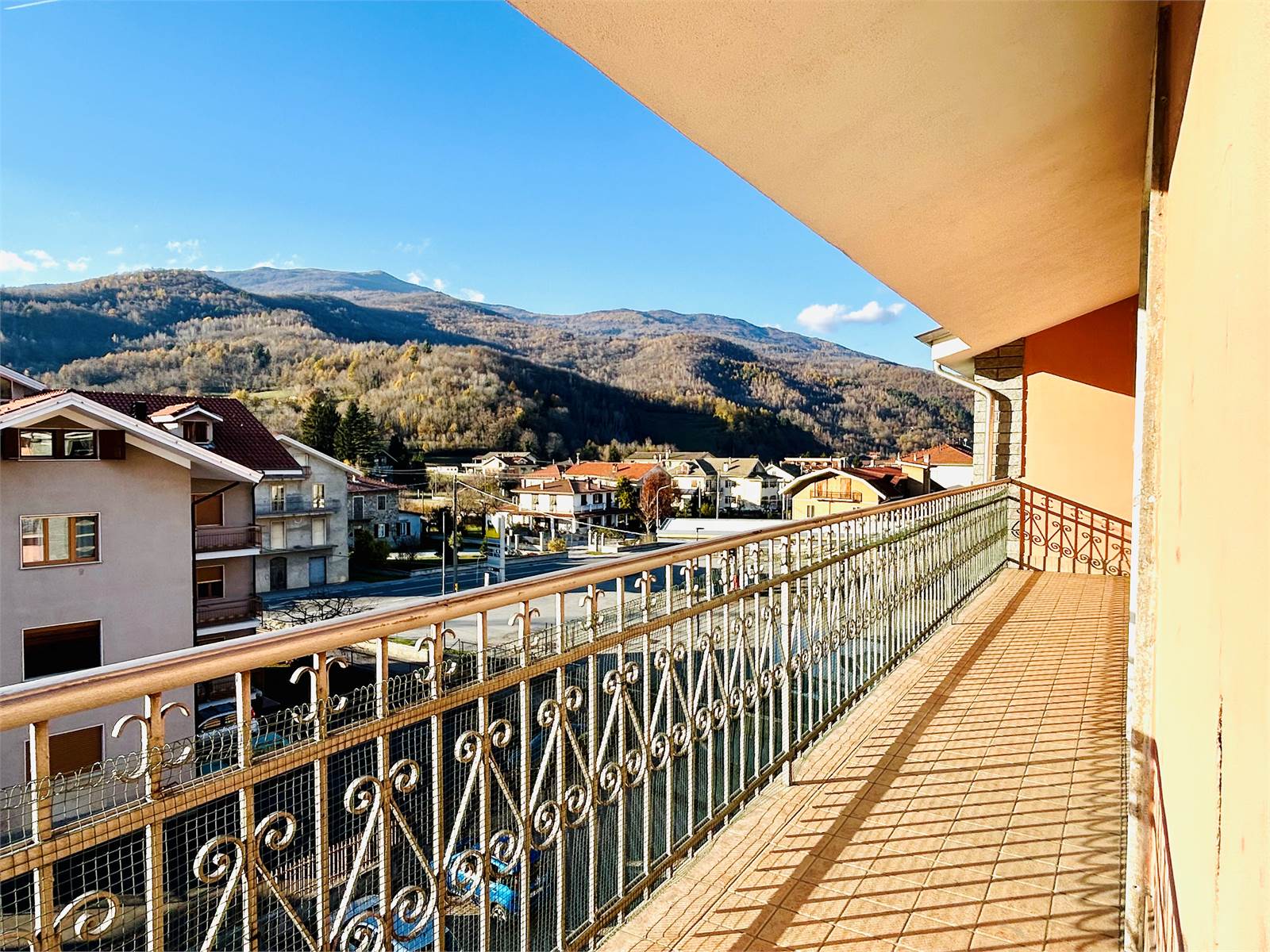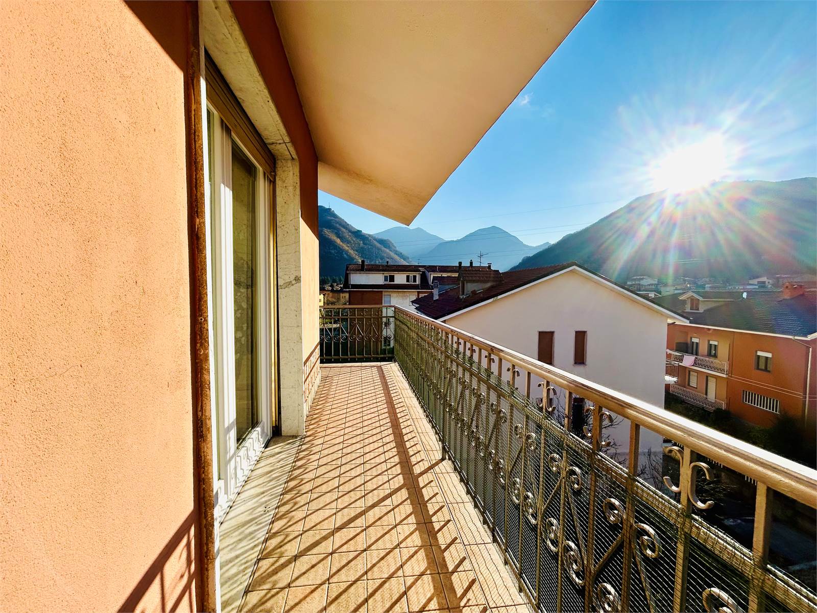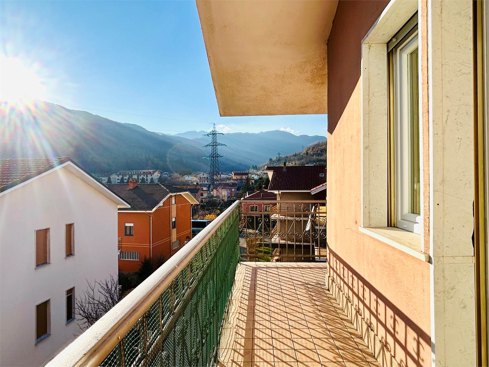 La cucina e la sala sono adiacenti ed hanno la portafinestra per uscire sul balcone abitabile che si sviluppa ad angolo. La vista è aperta e padroneggia sulle montagne circostanti.
