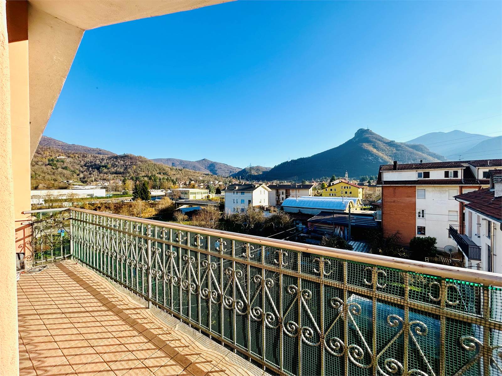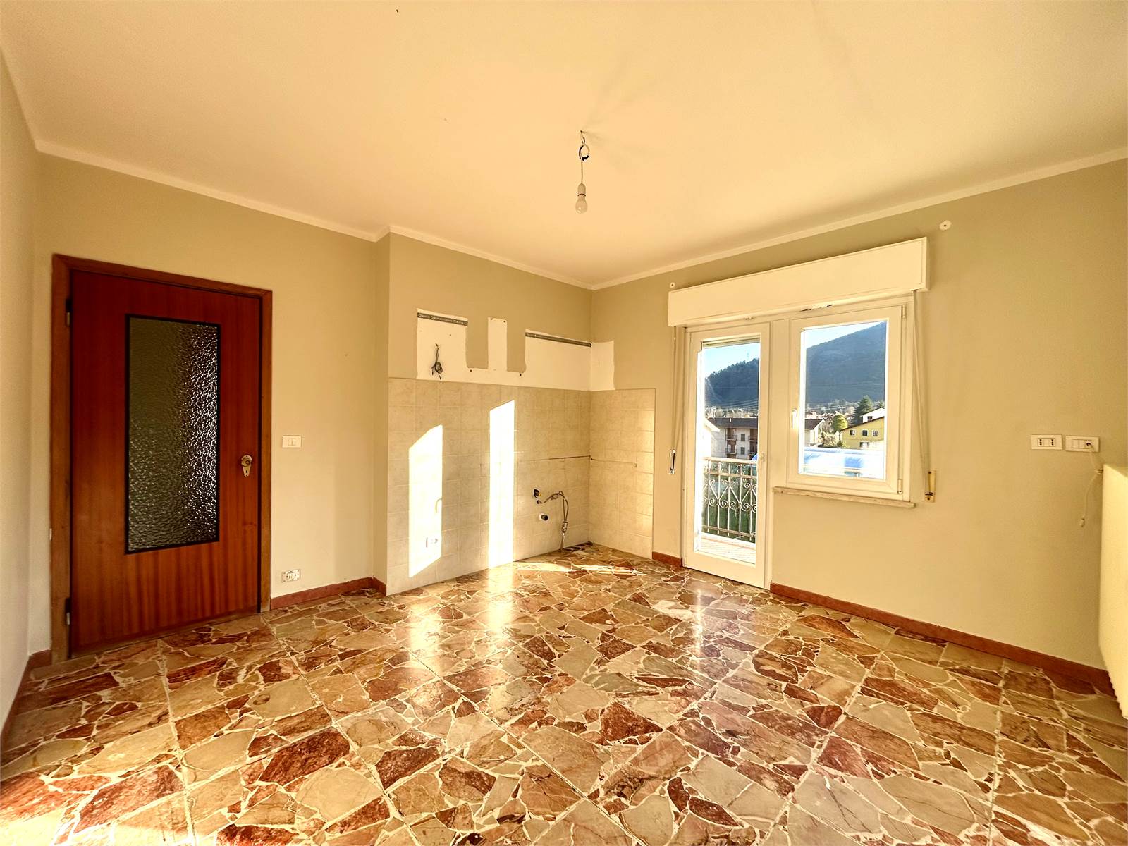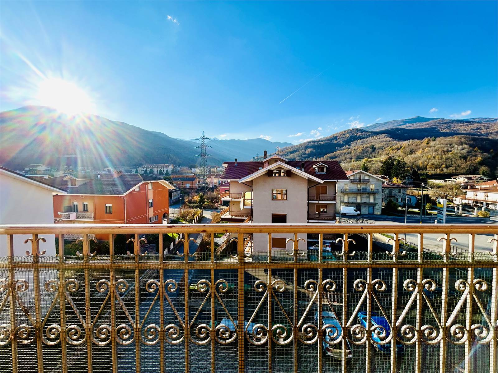 La cucina e la sala sono adiacenti ed hanno la portafinestra per uscire sul balcone abitabile che si sviluppa ad angolo. La vista è aperta e padroneggia sulle montagne circostanti.