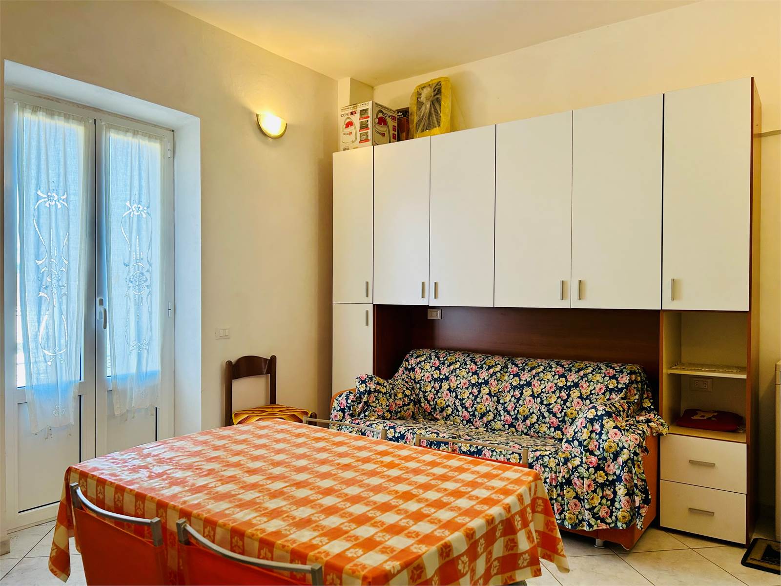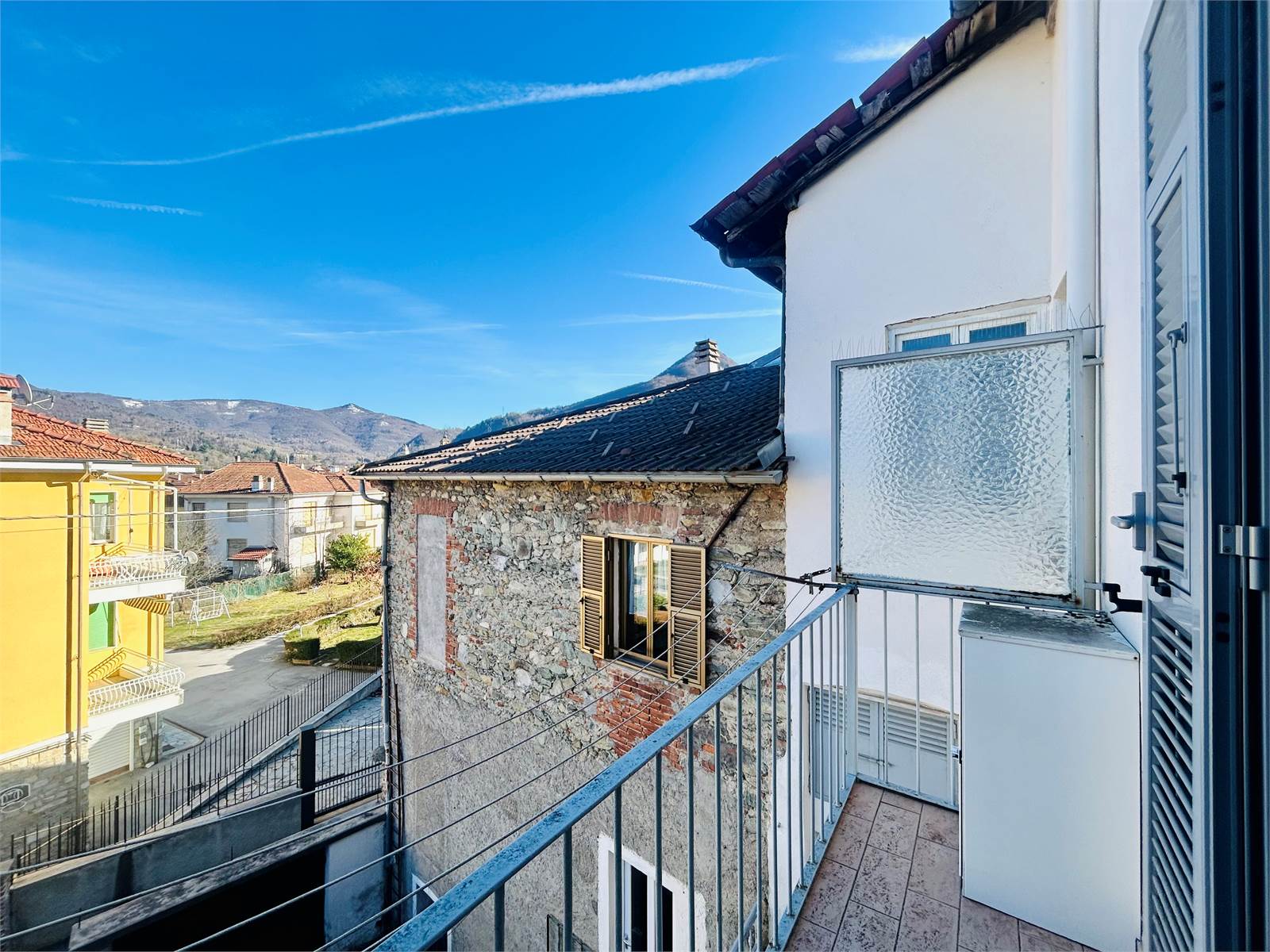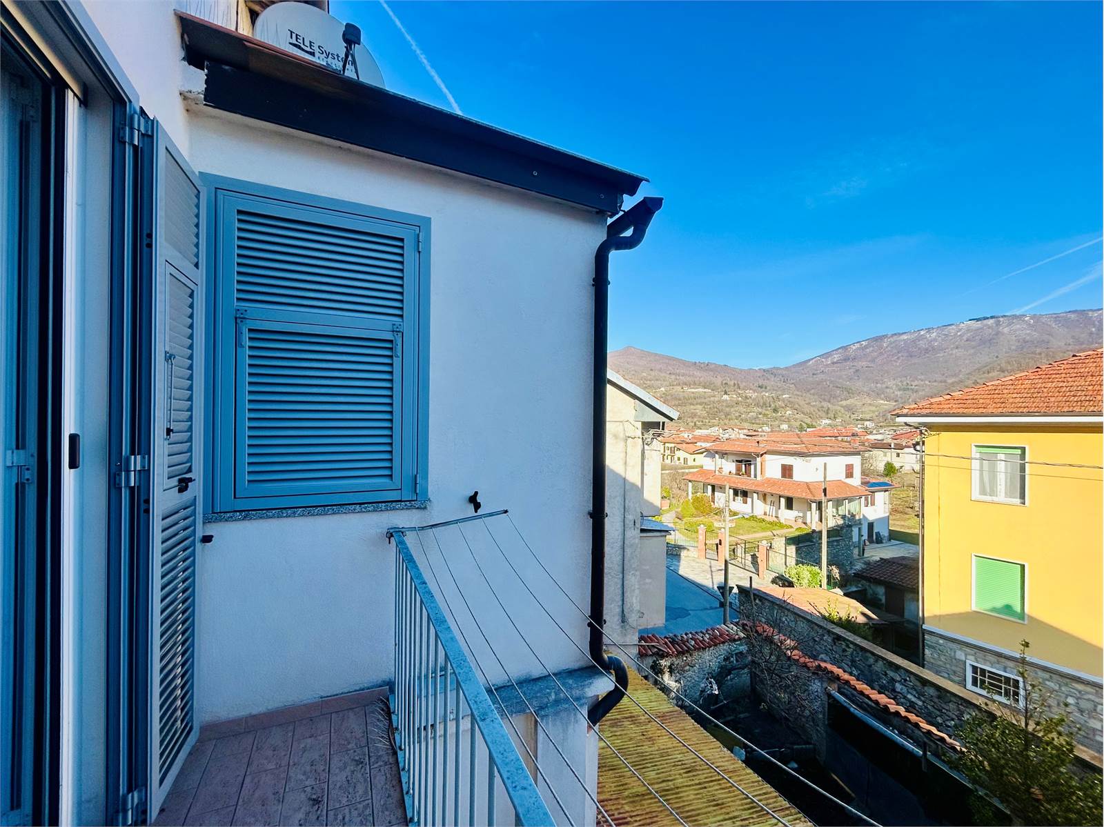 Dalla portafinestra si esce sul balcone con vista aperta.
